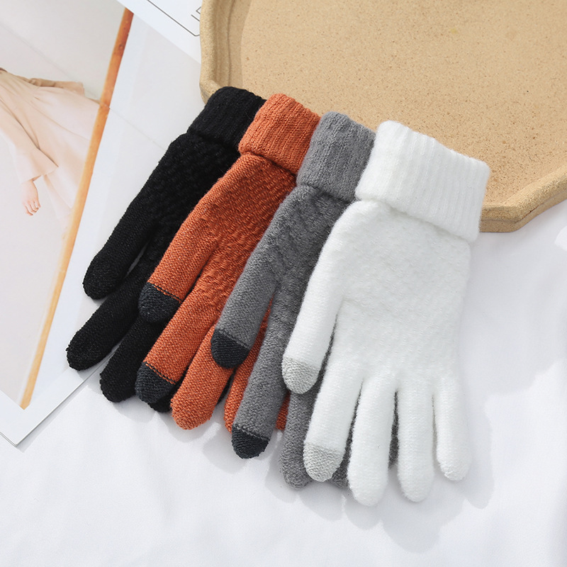 남녀공용 겨울용 터치스크린 장갑, 사이클링용, 보온, 방풍, 방한, 터치스크린 가능, 두꺼운 니트 파인애플 패턴 분리형 장갑
