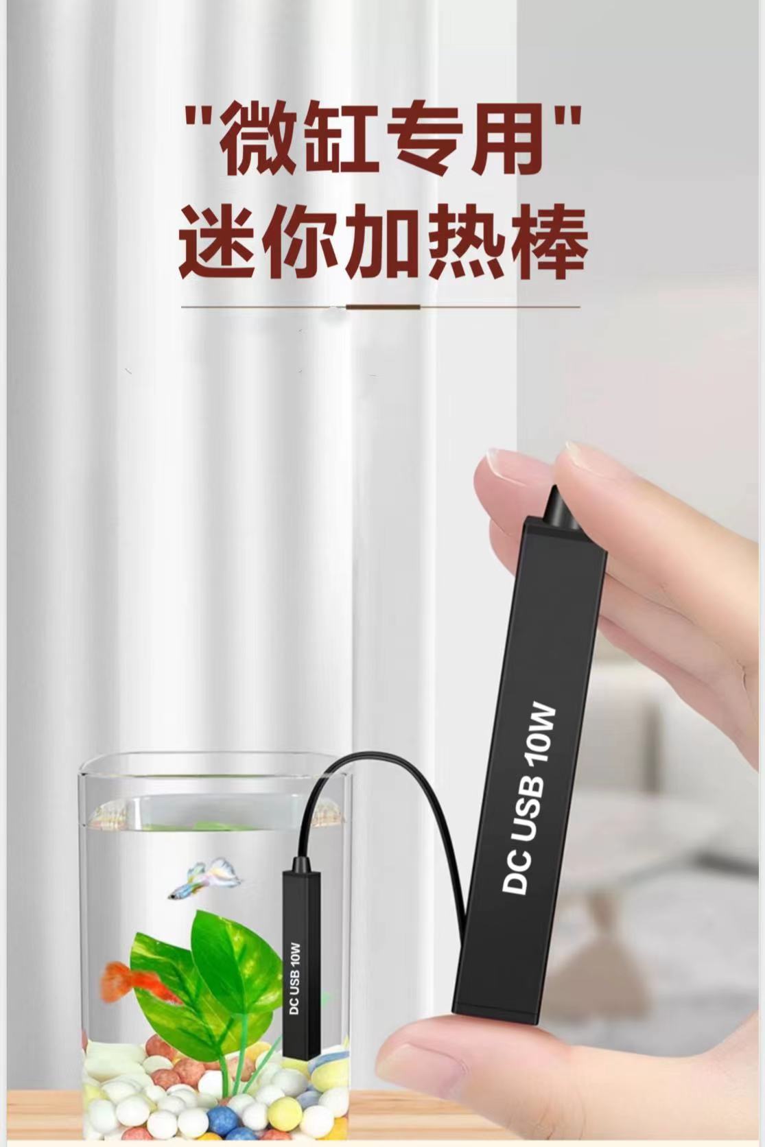QL 미니 스테인레스 스틸 가열로드 데스크탑 실린더 일정한 온도 가열로드 작은 USB 생선 탱크 히터 석영 유리