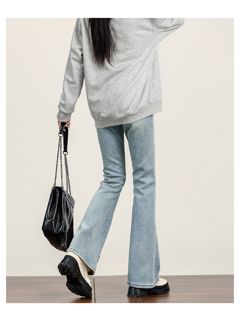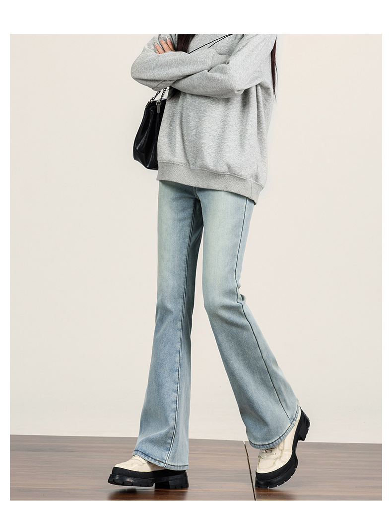 여성용 벨벳 두꺼운 마이크로 플레어 청바지 2025 가을 겨울 신상 하이웨이스트 신축성 있는 따뜻한 플레어 핏 바지스토어 가기