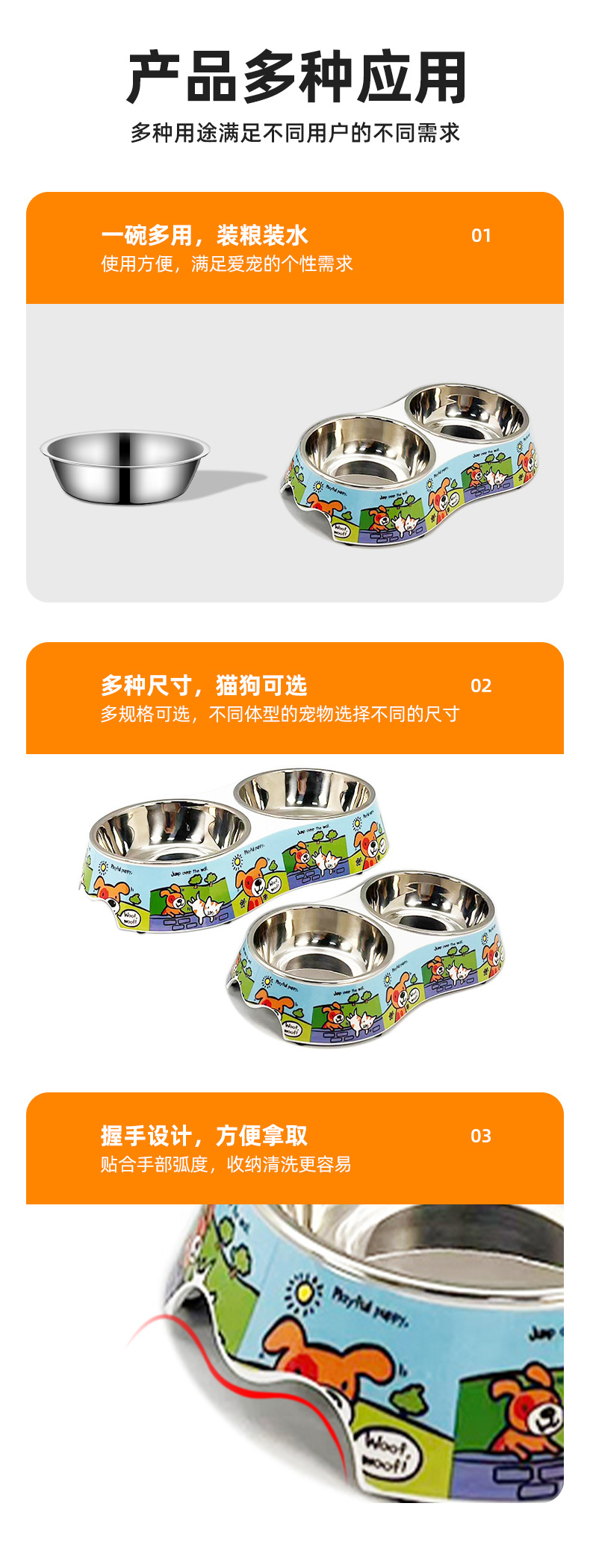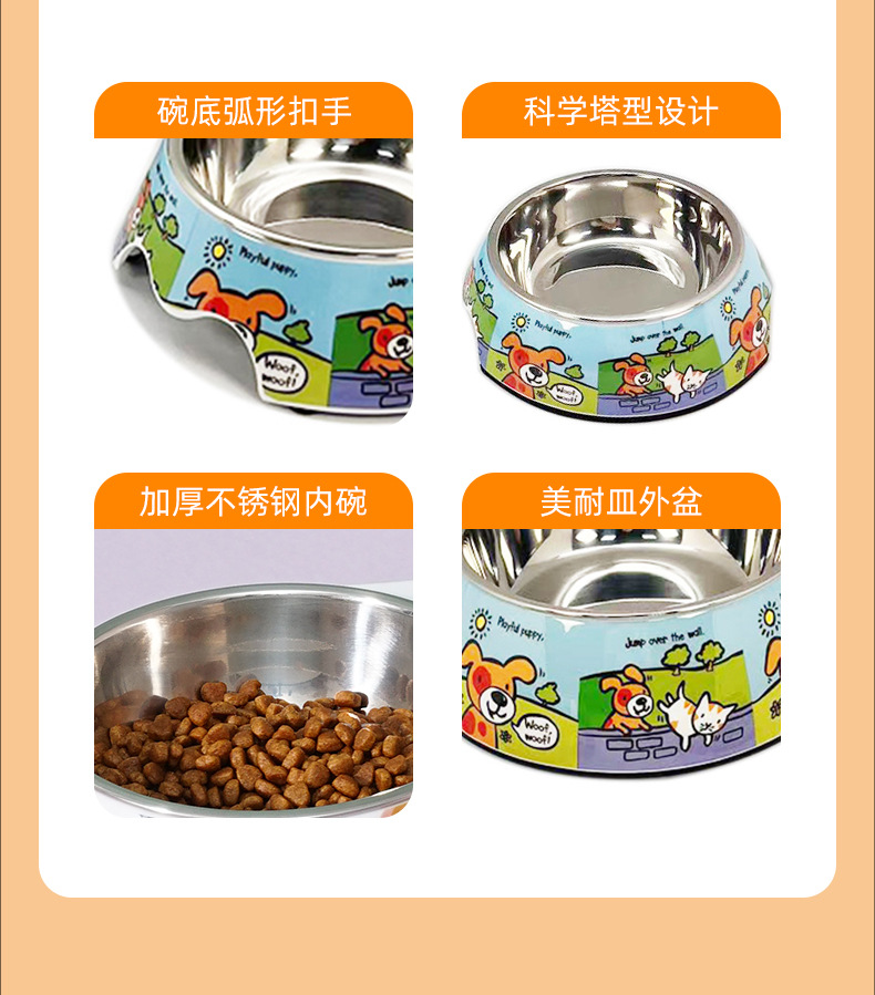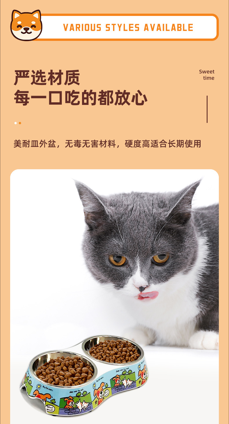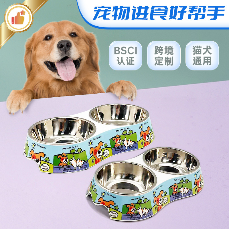 국경 간 2 대 1 인쇄 애완 동물 그릇 멜라민 개 그릇 고양이 음식 그릇 스테인레스 스틸 더블 레이어 개 식품 그릇 애완 동물 식기