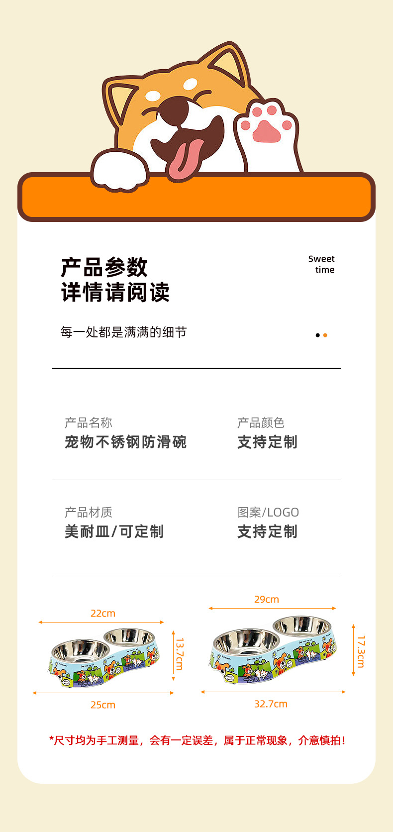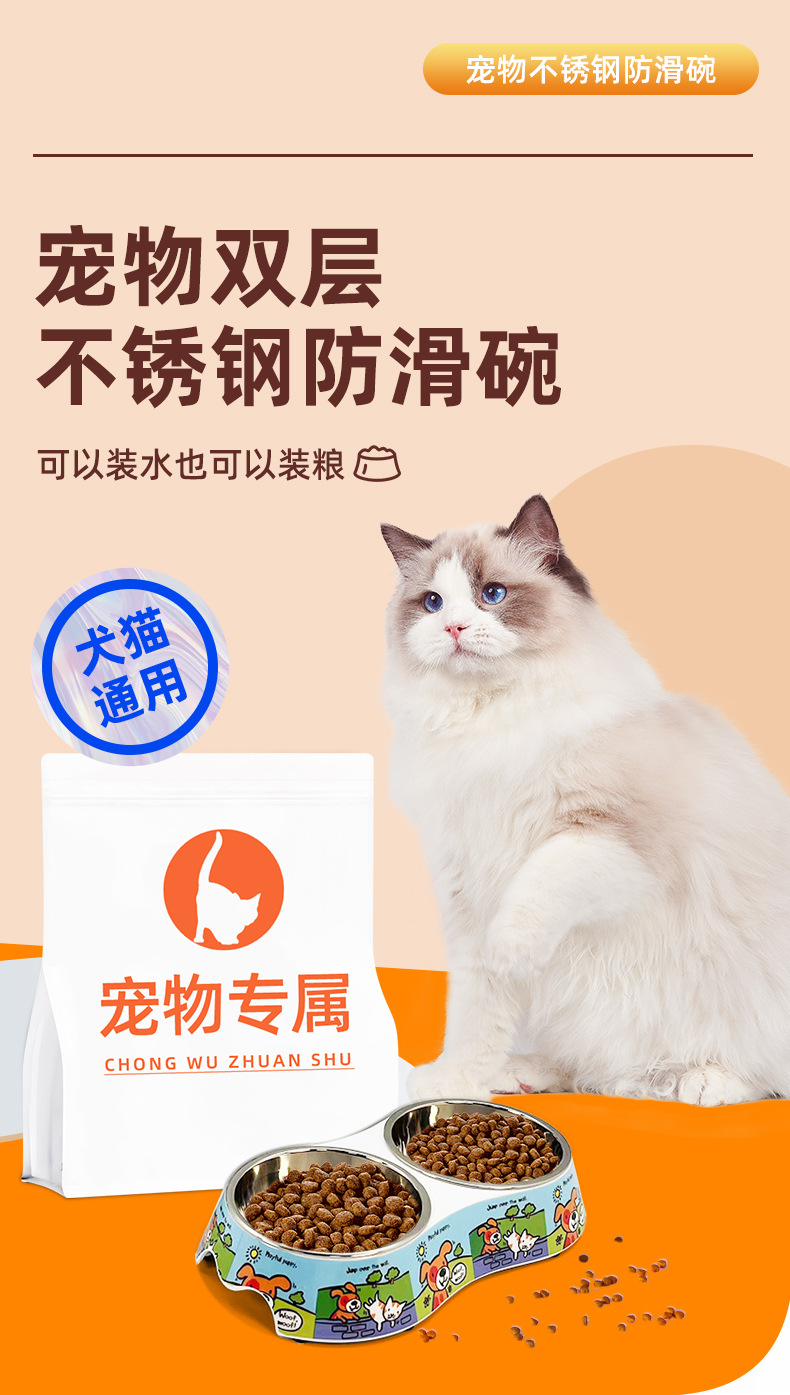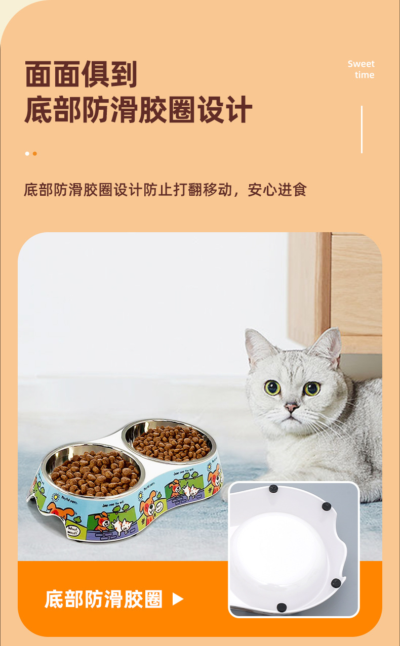 국경 간 2 대 1 인쇄 애완 동물 그릇 멜라민 개 그릇 고양이 음식 그릇 스테인레스 스틸 더블 레이어 개 식품 그릇 애완 동물 식기