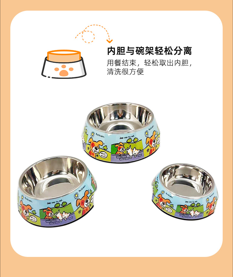국경 간 2 대 1 인쇄 애완 동물 그릇 멜라민 개 그릇 고양이 음식 그릇 스테인레스 스틸 더블 레이어 개 식품 그릇 애완 동물 식기스토어 가기
