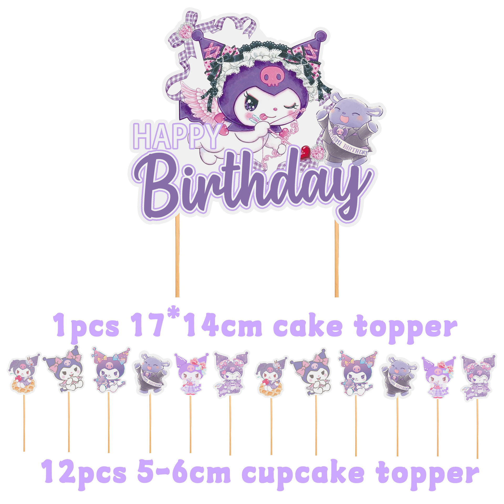 산리오 Culomi 풍선 깃발 케이크 삽입 조합 만화 생일 파티 장식 배너 파티 용품스토어 가기