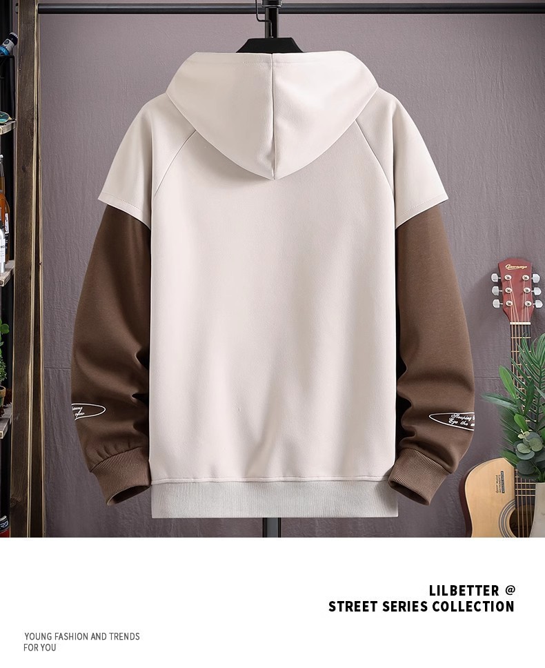 2024 새로운 패션 후드 스웨트 셔츠 남자의 봄과 가을 패션 브랜드 가짜 투피스 스티칭 재킷 느슨한 캐주얼 탑
