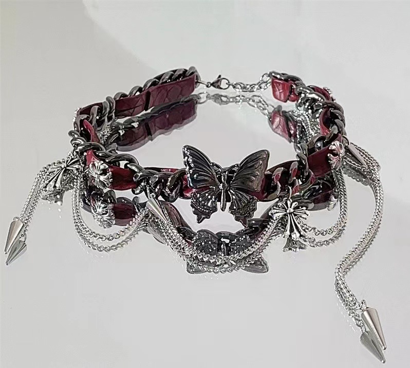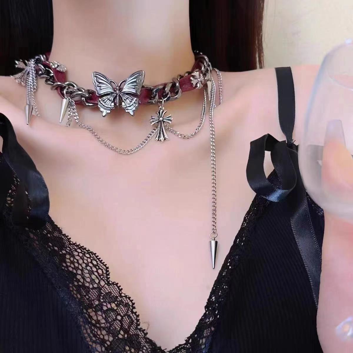중공업 가죽 펑크 나비 칼라 여성용 초커 넥 액세서리 달콤한 쿨 야비 목걸이 액세서리스토어 가기