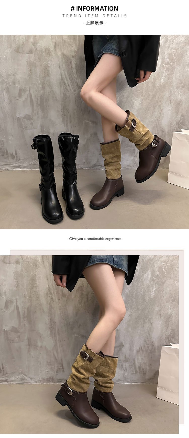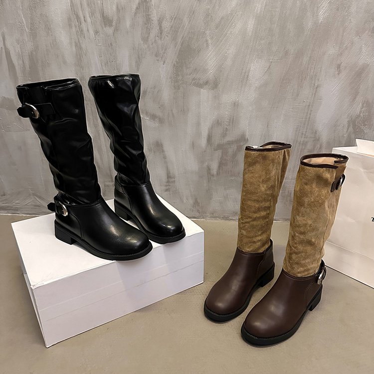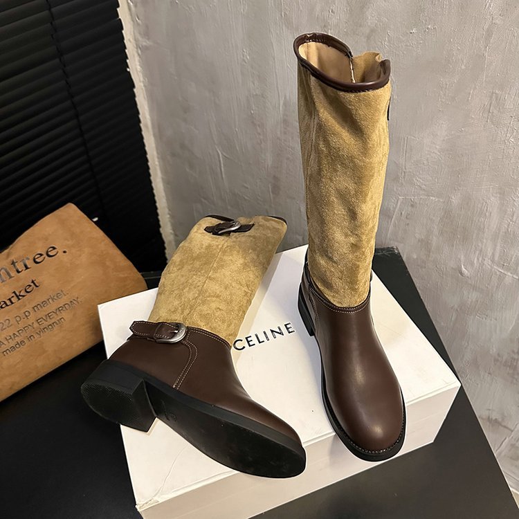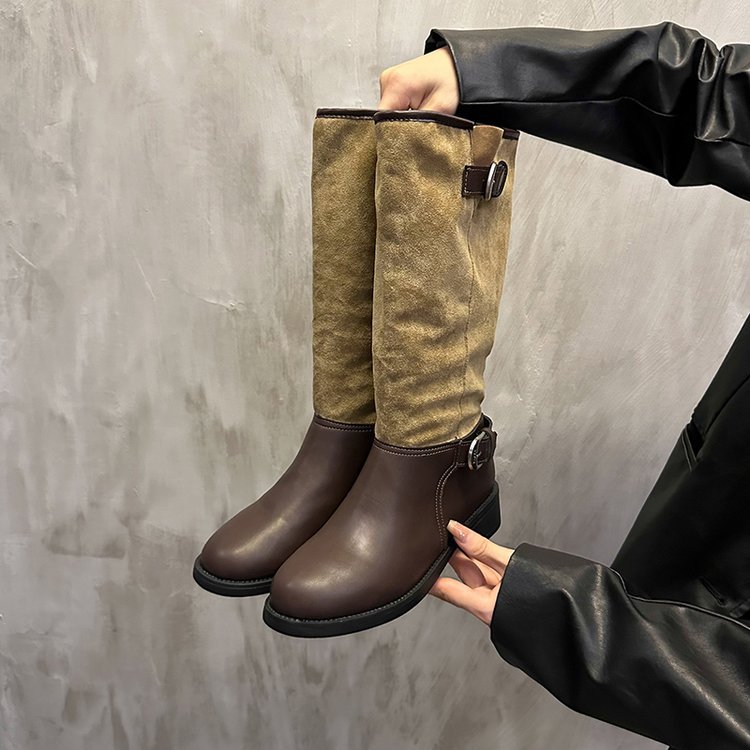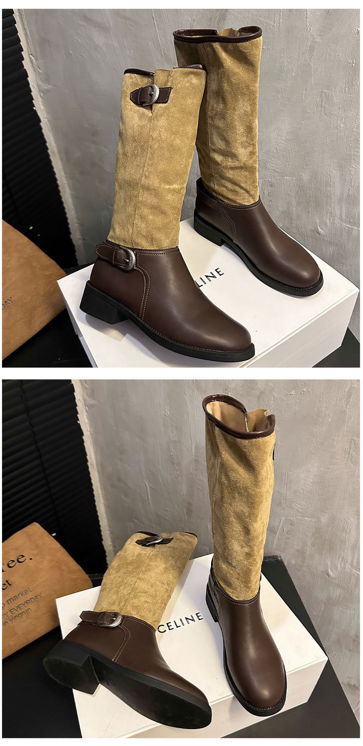 프렌치 레트로 웨스턴 부츠 여성용 2024 뉴 스웨이드 하이 부츠 벨트 버클 컬러 매칭 힙 부츠 여성용 부츠스토어 가기