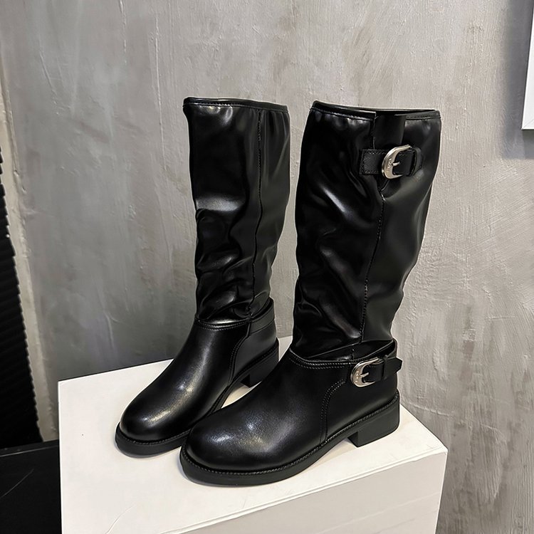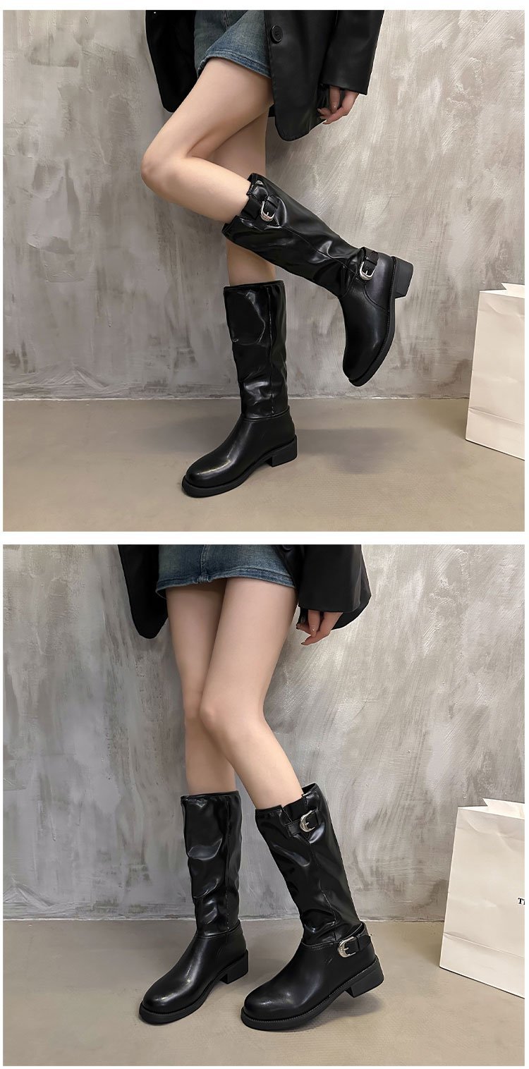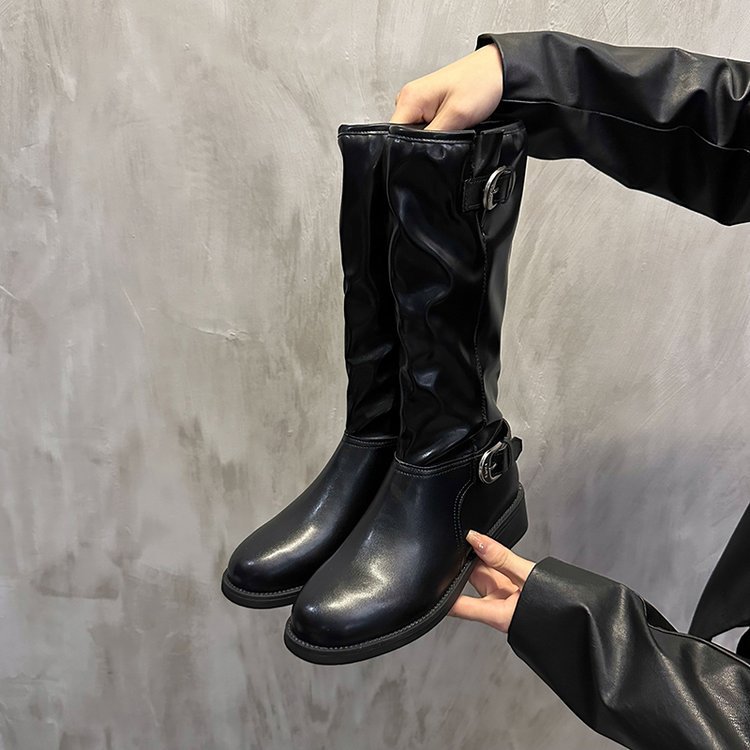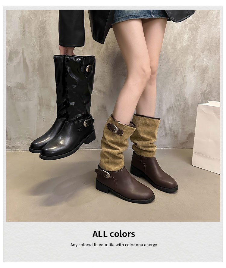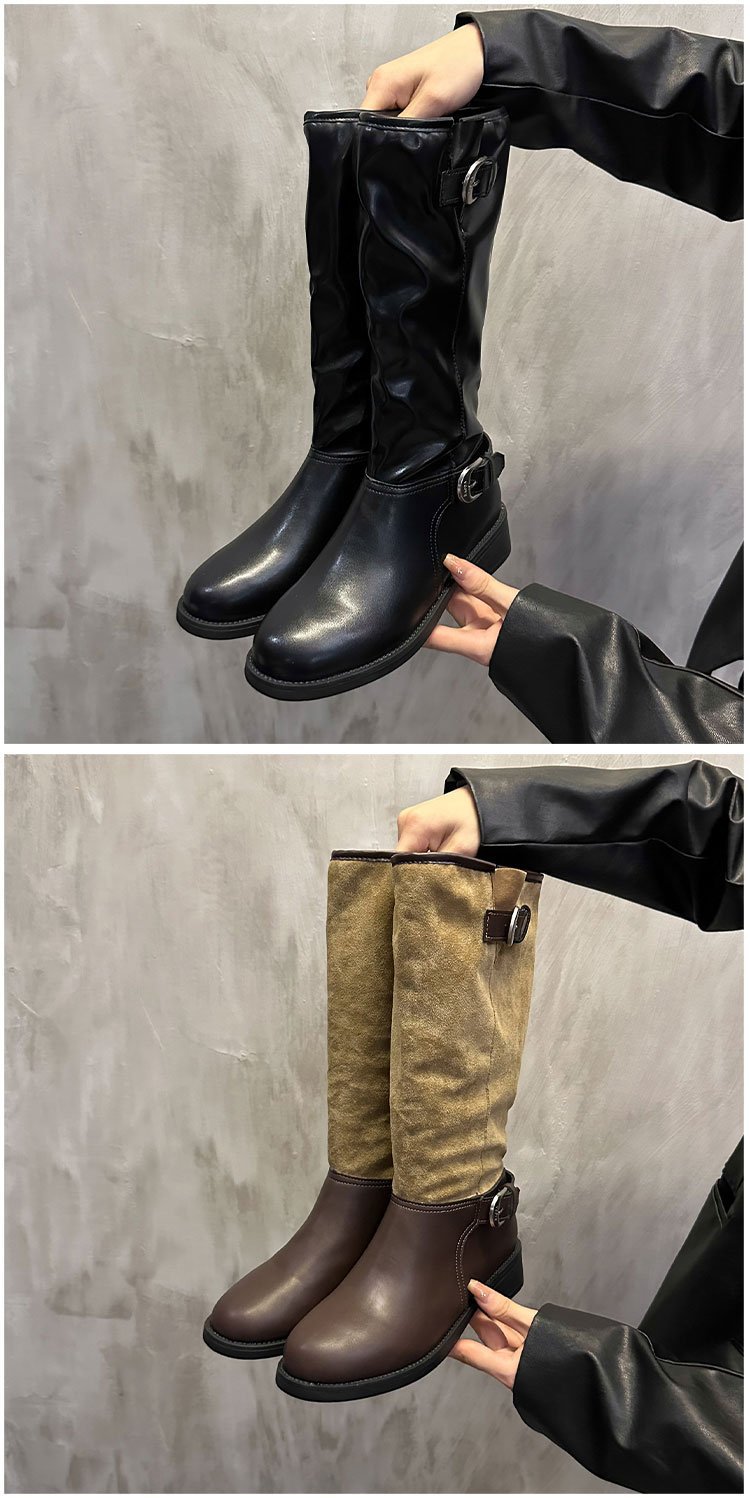 프렌치 레트로 웨스턴 부츠 여성용 2024 뉴 스웨이드 하이 부츠 벨트 버클 컬러 매칭 힙 부츠 여성용 부츠스토어 가기