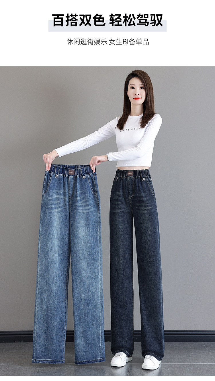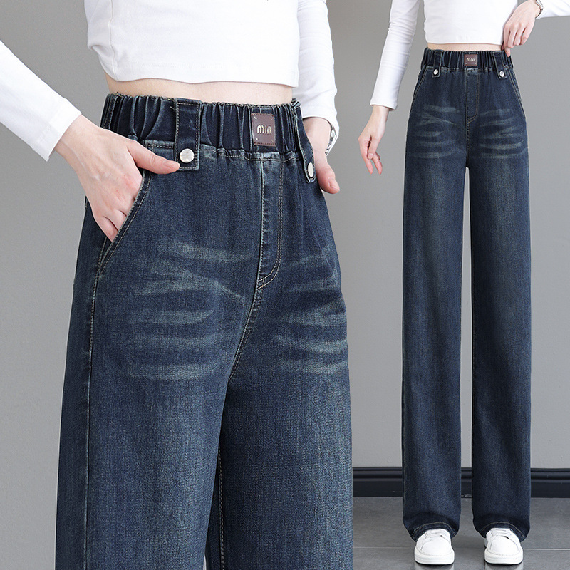 여성용 신축성 있는 허리 스트레이트 청바지 2025 가을 겨울 신상품 좁은 버전 바닥 길이 하이 웨이스트 대형 드레이프 와이드 팬츠스토어 가기