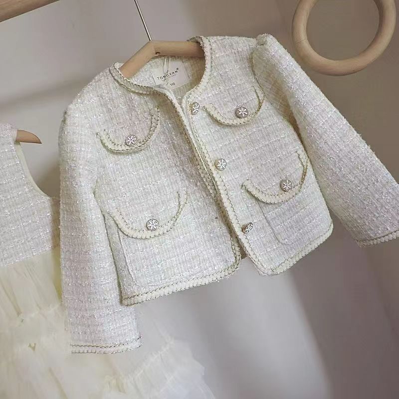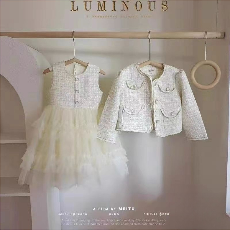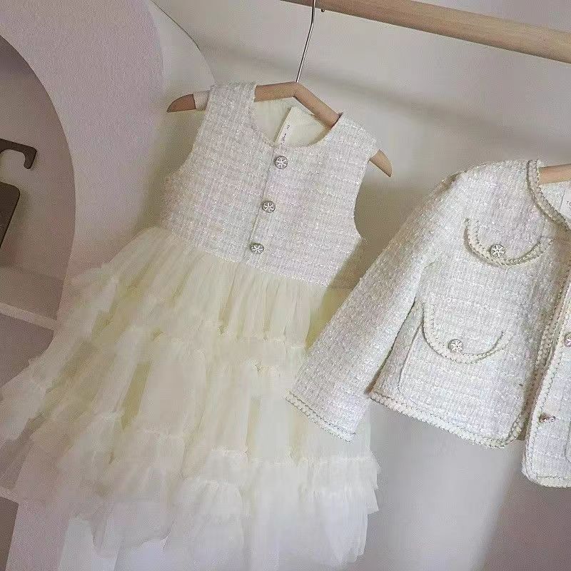 여자 샤넬 스타일 코트 한국 스타일 원피스 2023 새로운 아동복 소녀 유행 공주 원피스 작은 원피스스토어 가기