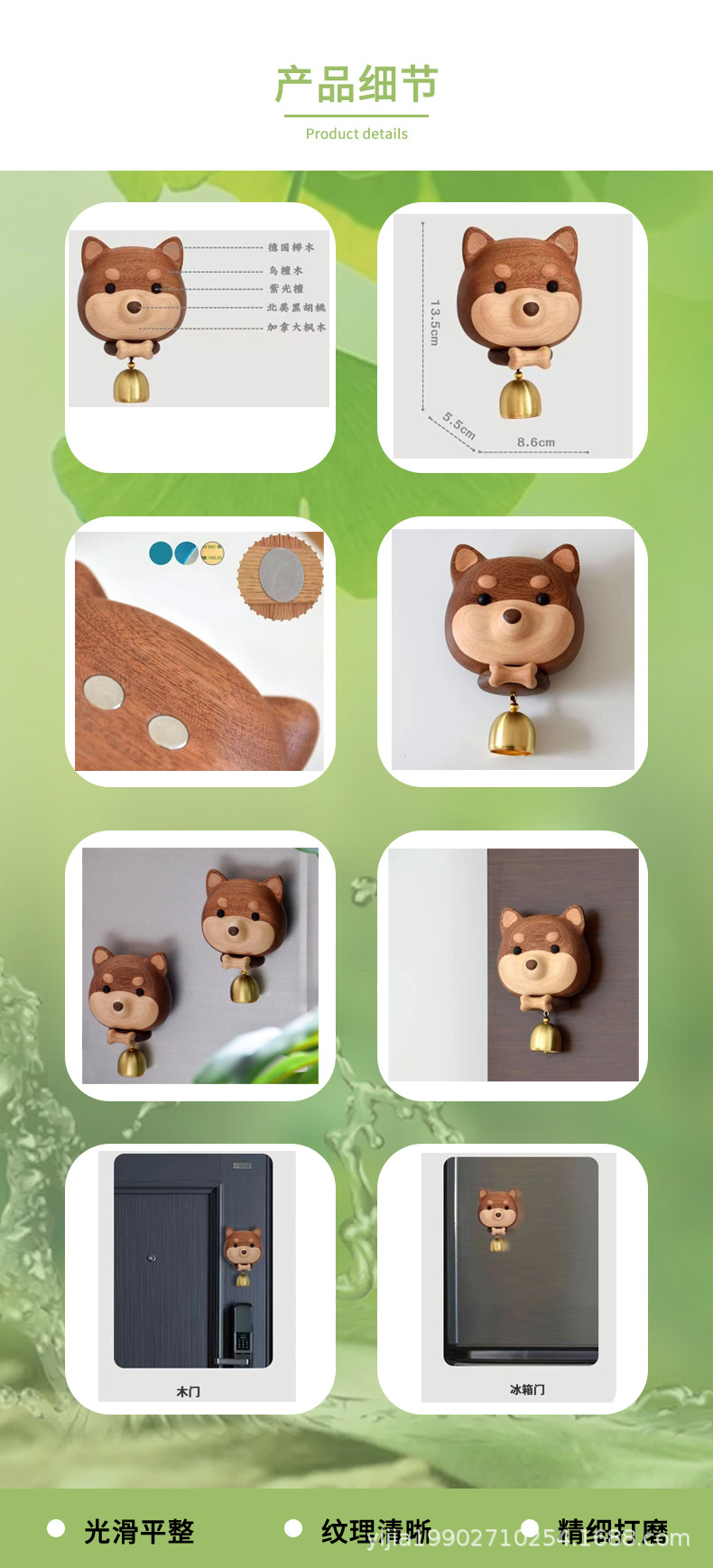 시바견 초인종 원목 강아지 행운의 풍경종 냉장고 자석 입주 알림 종 이사 선물 공장 목공예