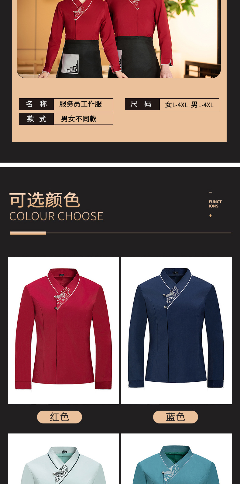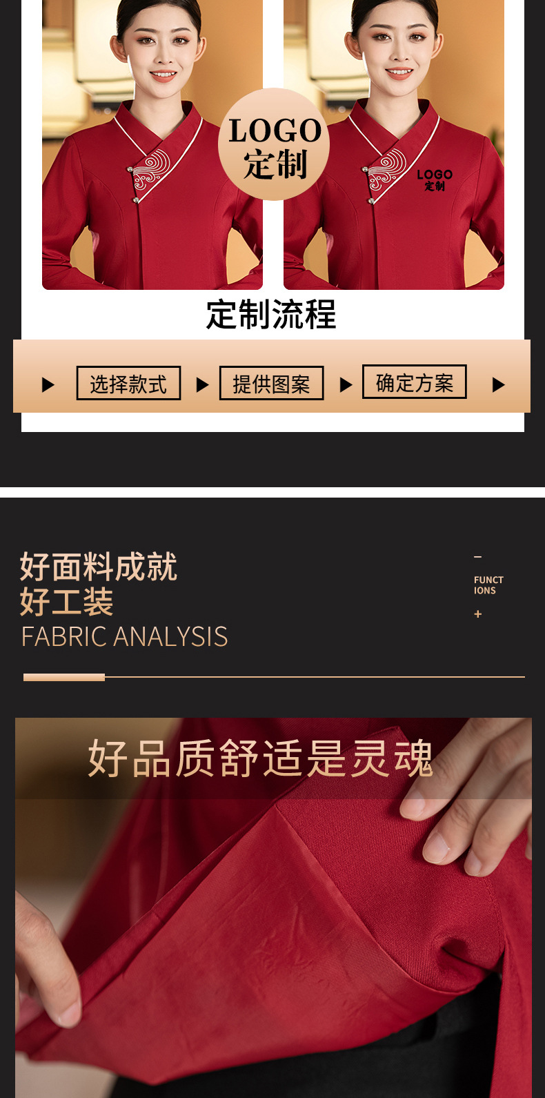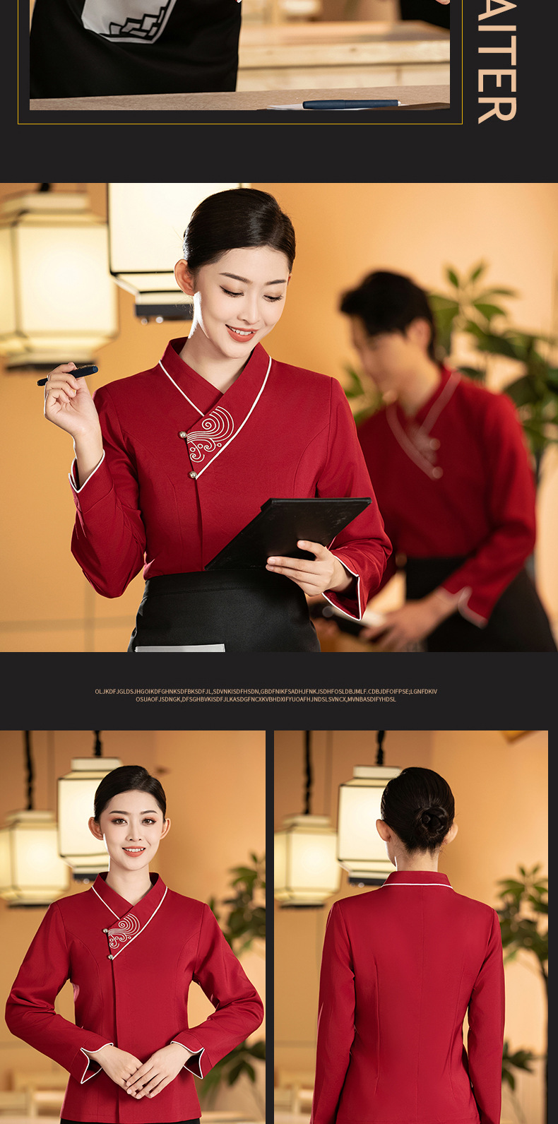 고급 웨이터 작업 옷 여성 가을 겨울 긴 소매 호텔 케이터링 중국 레스토랑 핫 팟 레스토랑 호텔 프론트 오피스 세트