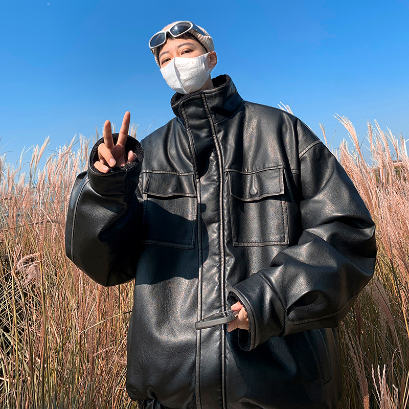 모피 원피스 코튼 패딩 재킷 남자 폭격기 재킷 겨울 미국 빈티지 양가죽 두꺼운 기모 오토바이 코튼 패딩 재킷