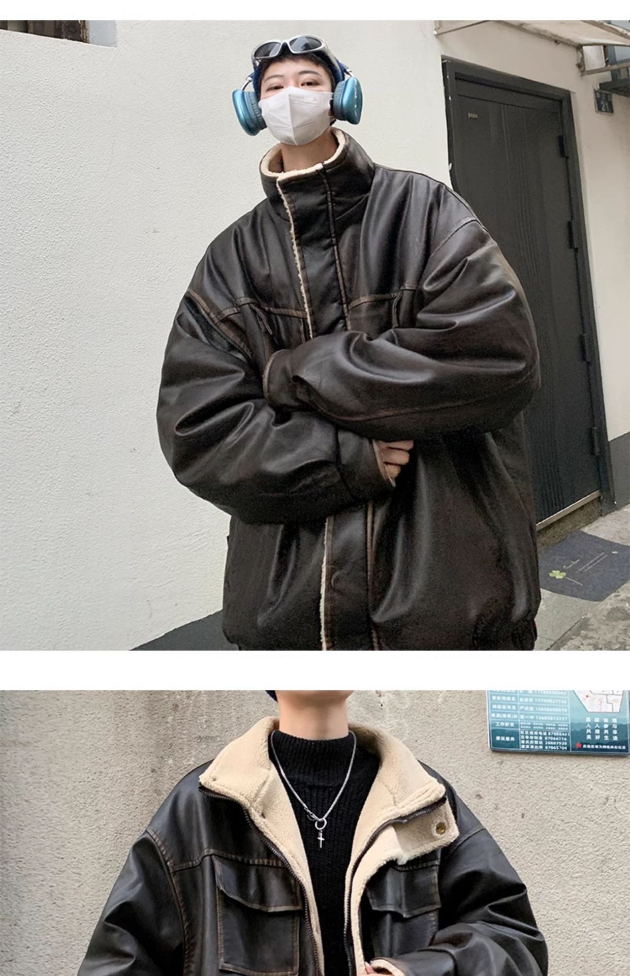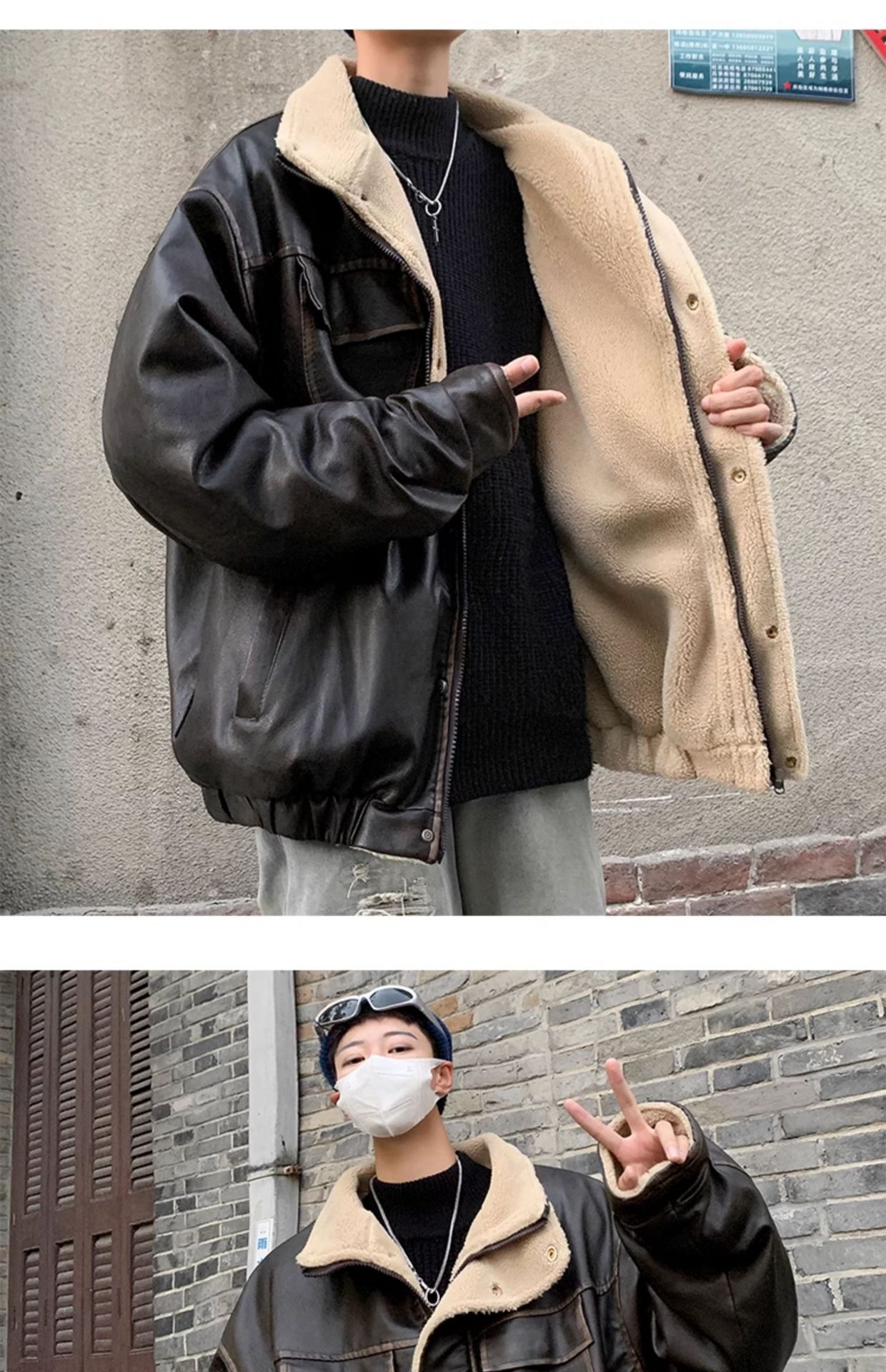 모피 원피스 코튼 패딩 재킷 남자 폭격기 재킷 겨울 미국 빈티지 양가죽 두꺼운 기모 오토바이 코튼 패딩 재킷스토어 가기