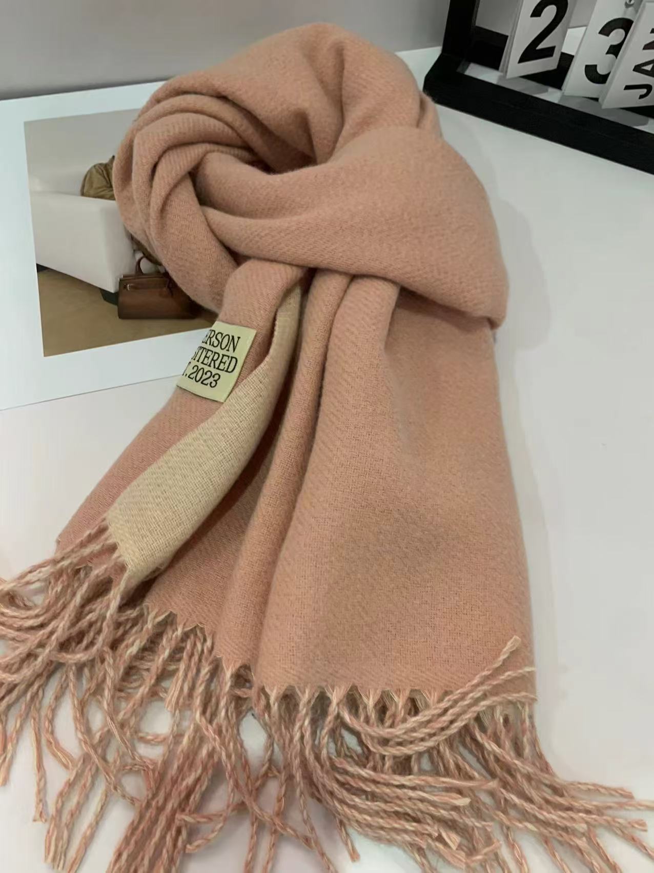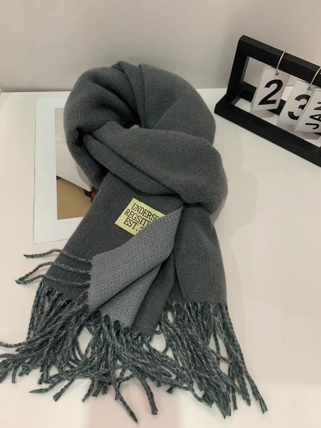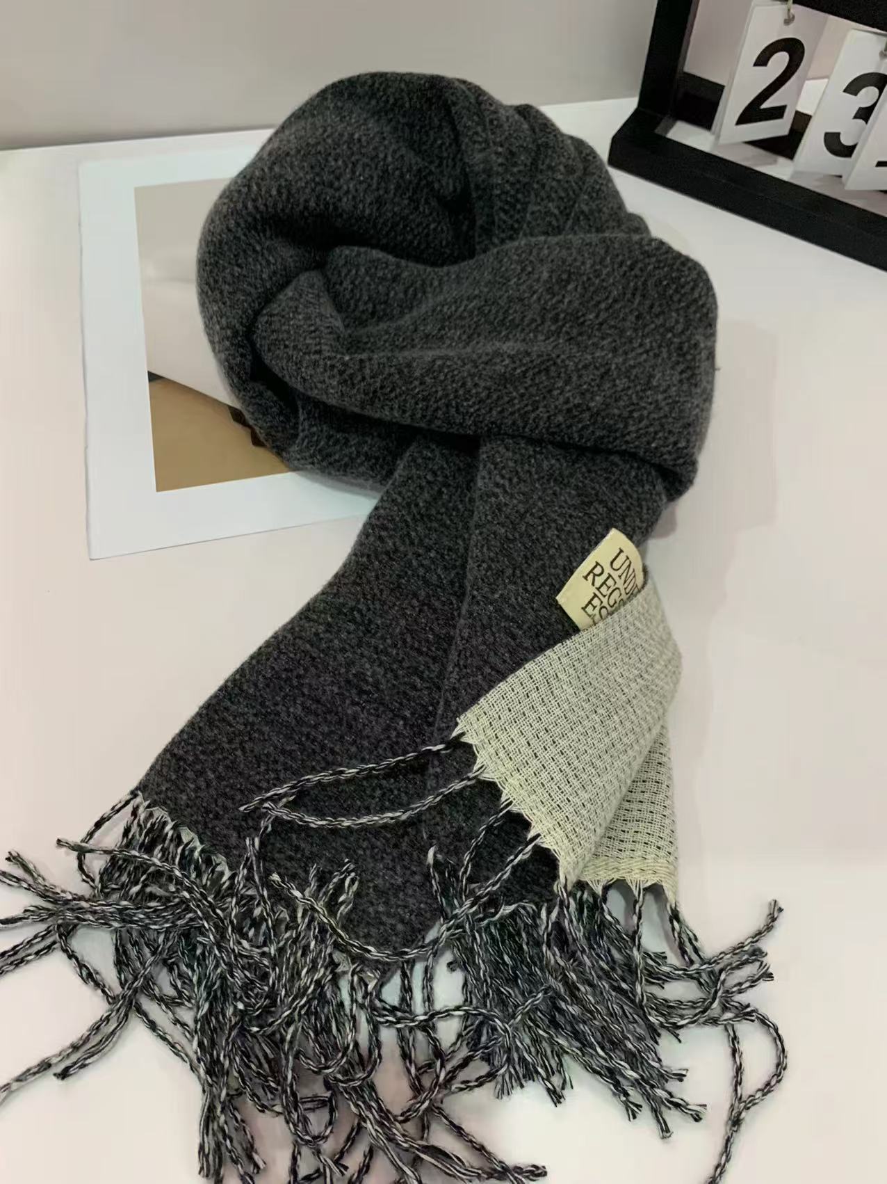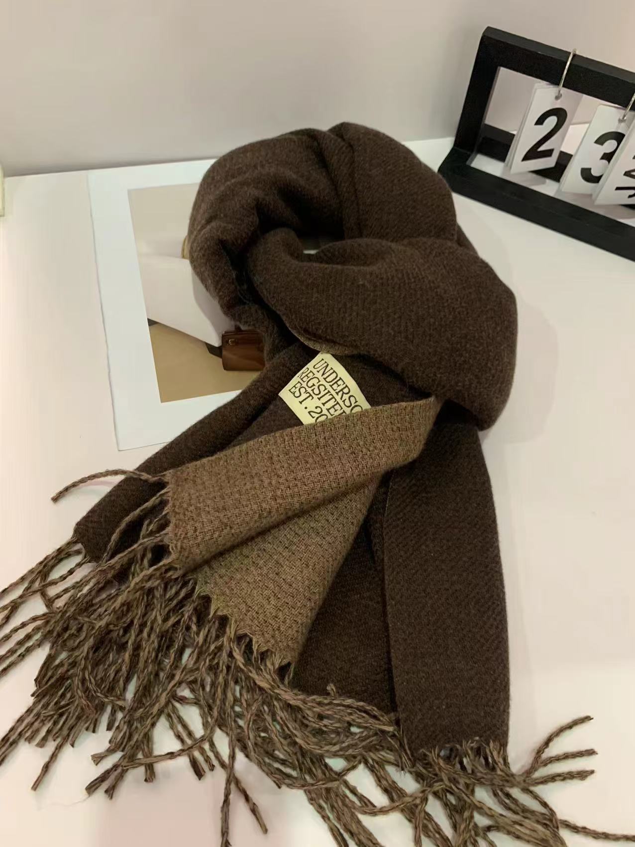 2024 새로운 양면 단색 캐시미어 스카프 여성의 가을과 겨울 두꺼운 따뜻한 고급 스카프 숄 도매 재고스토어 가기
