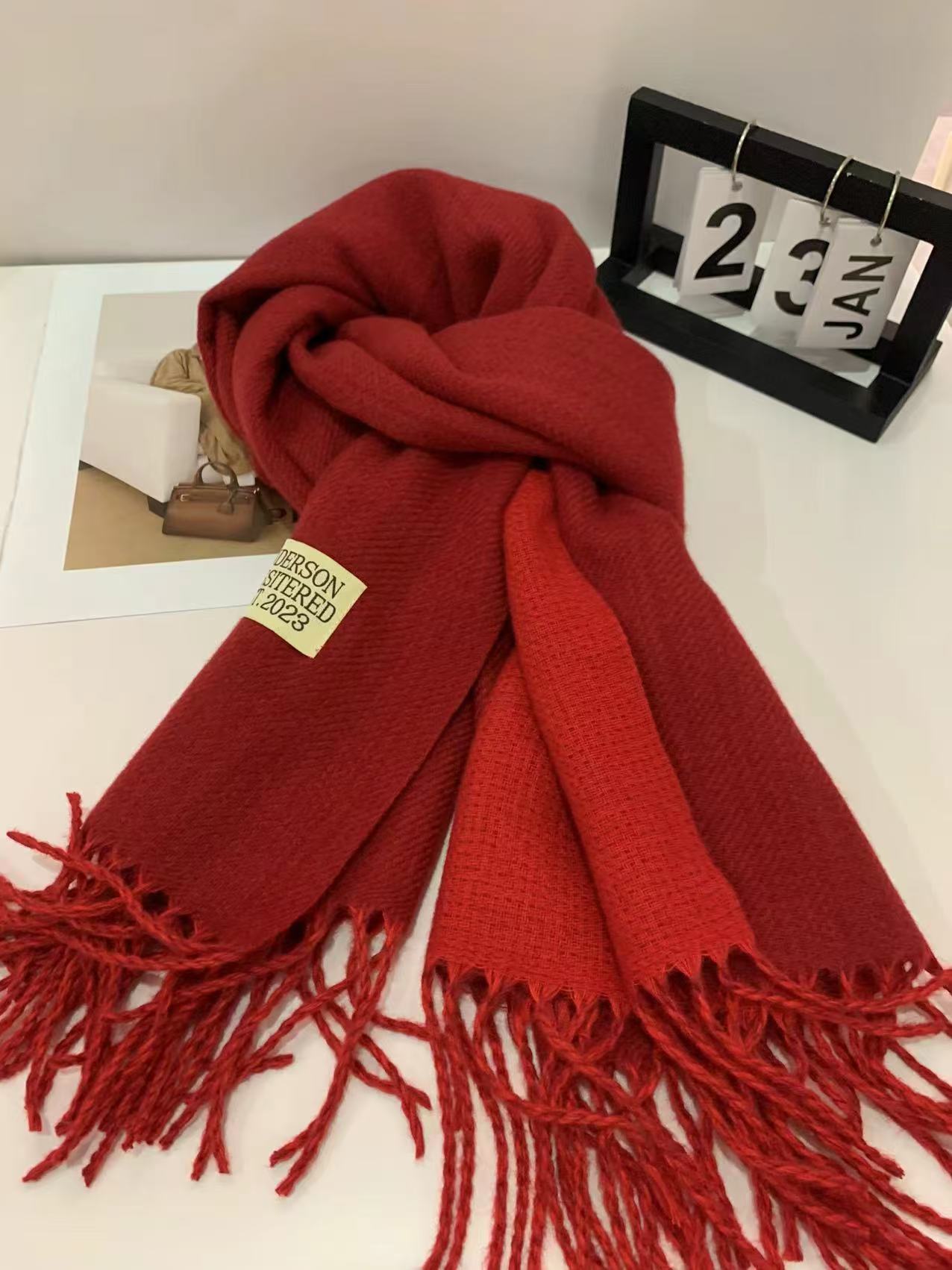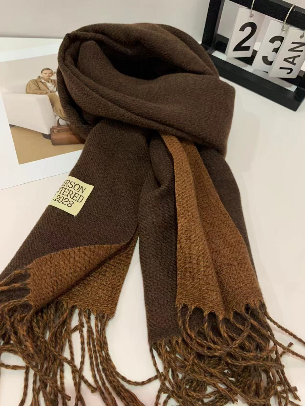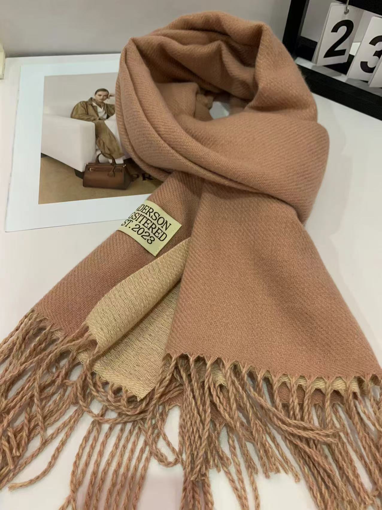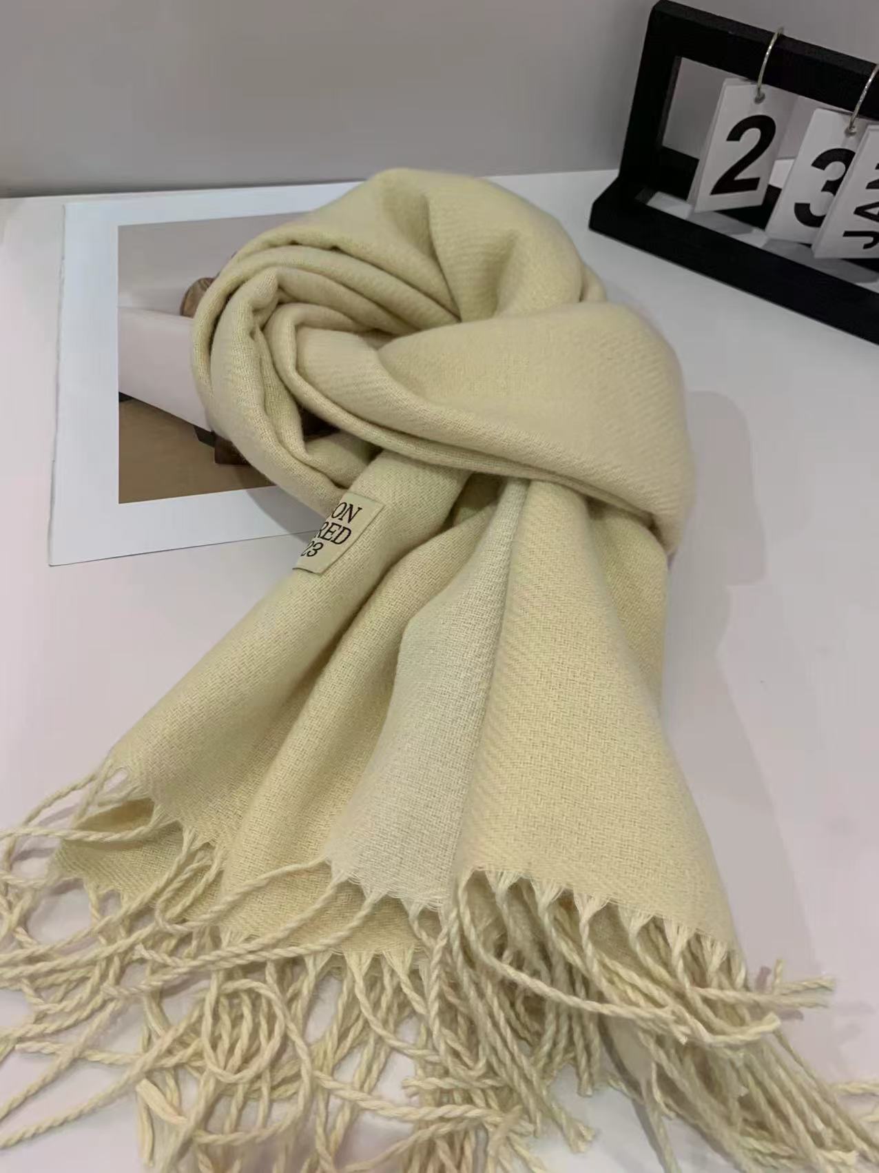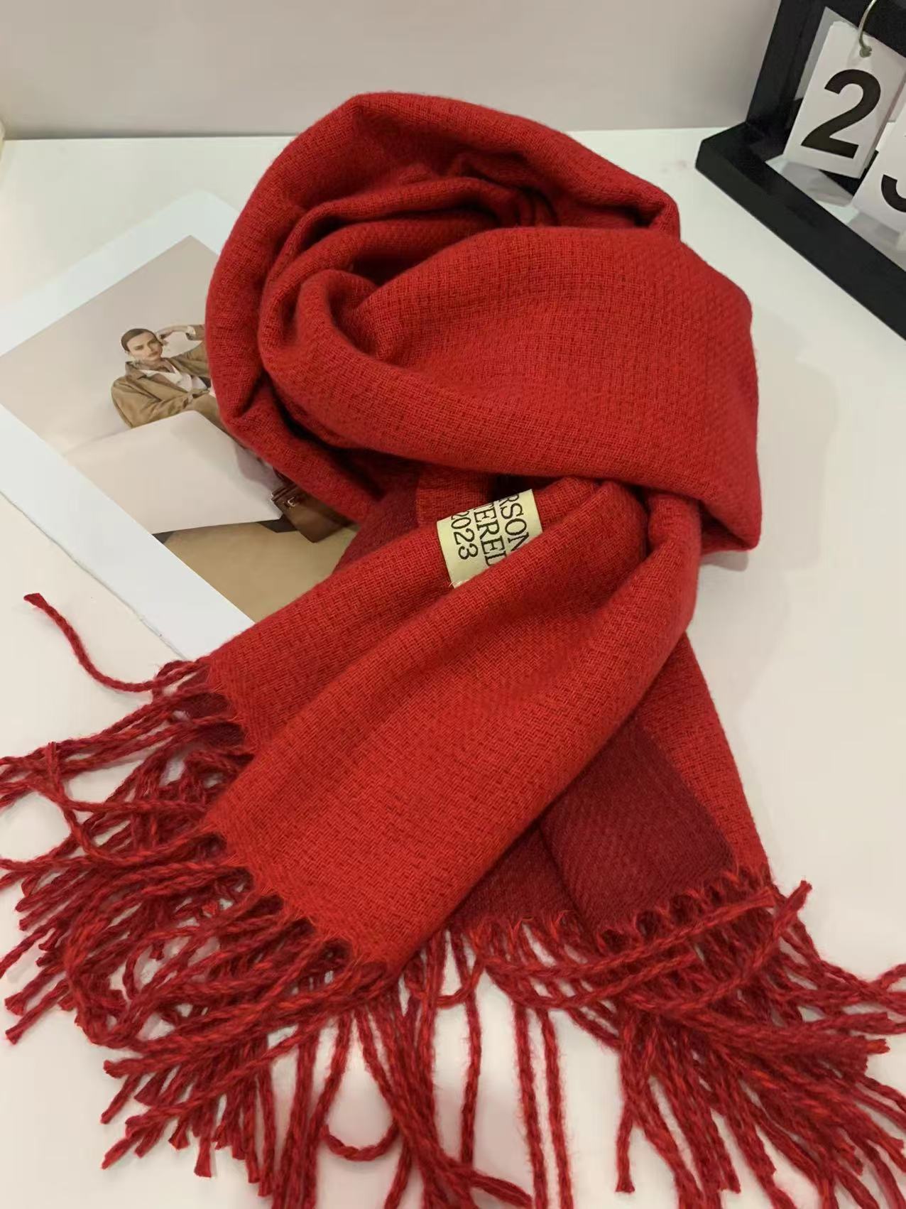 2024 새로운 양면 단색 캐시미어 스카프 여성의 가을과 겨울 두꺼운 따뜻한 고급 스카프 숄 도매 재고스토어 가기