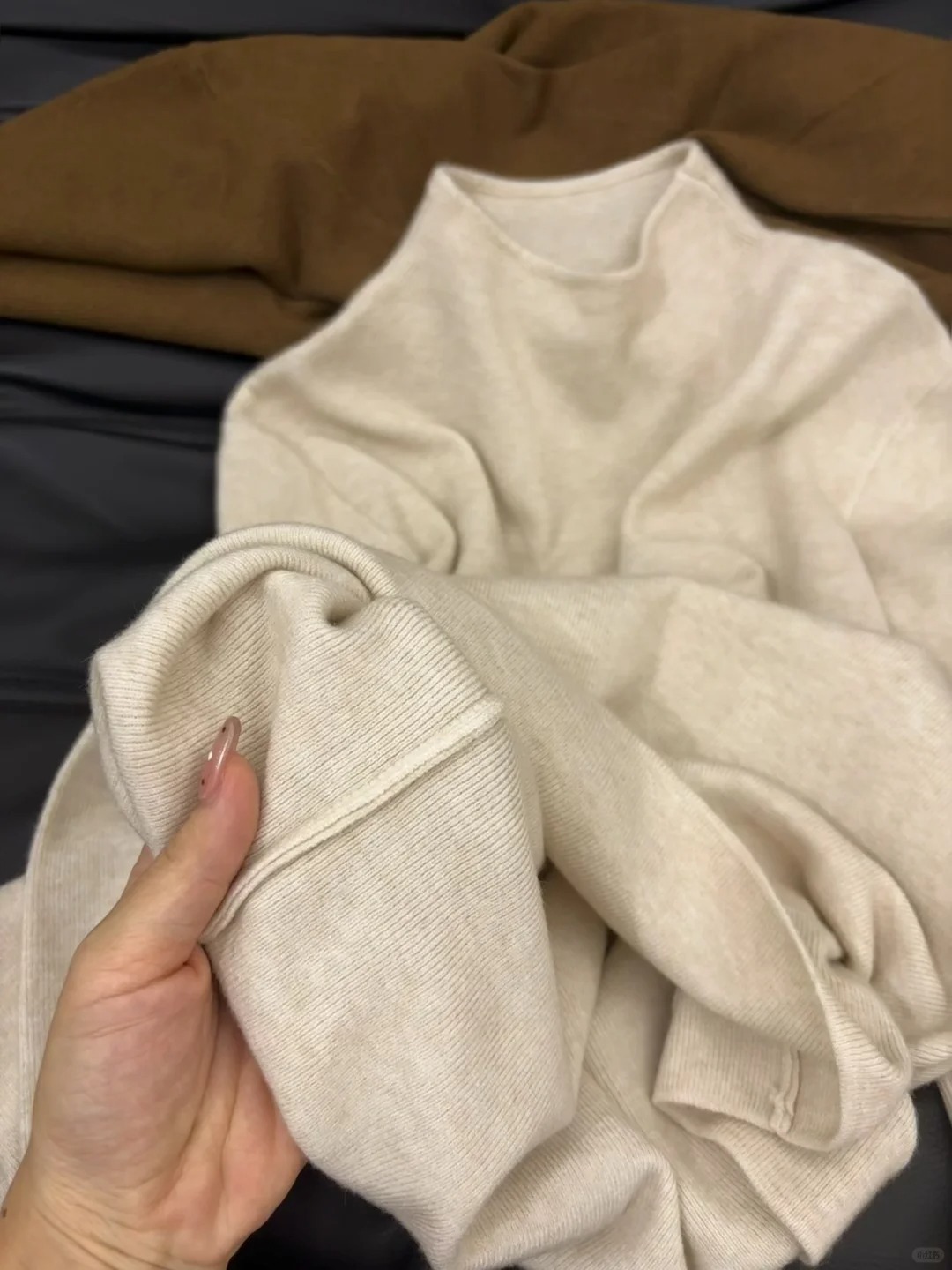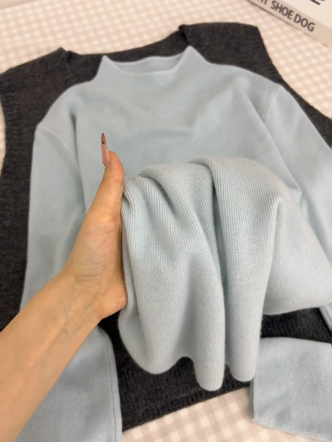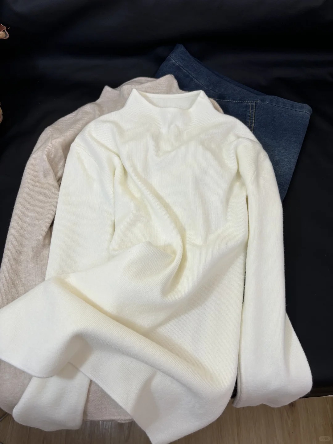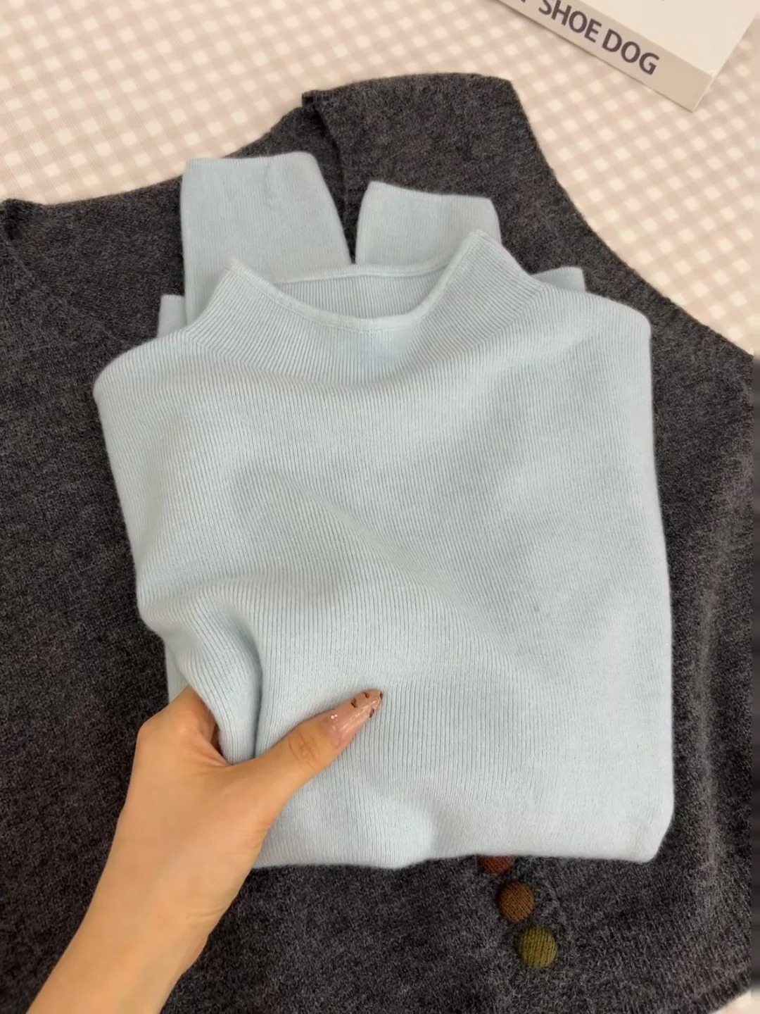 봄 2025 부드러운 밀랍 한국식 작은 스탠드 칼라 내부 니트 바닥 셔츠 여성용 단순 긴팔 탑 편안한 스웨터스토어 가기