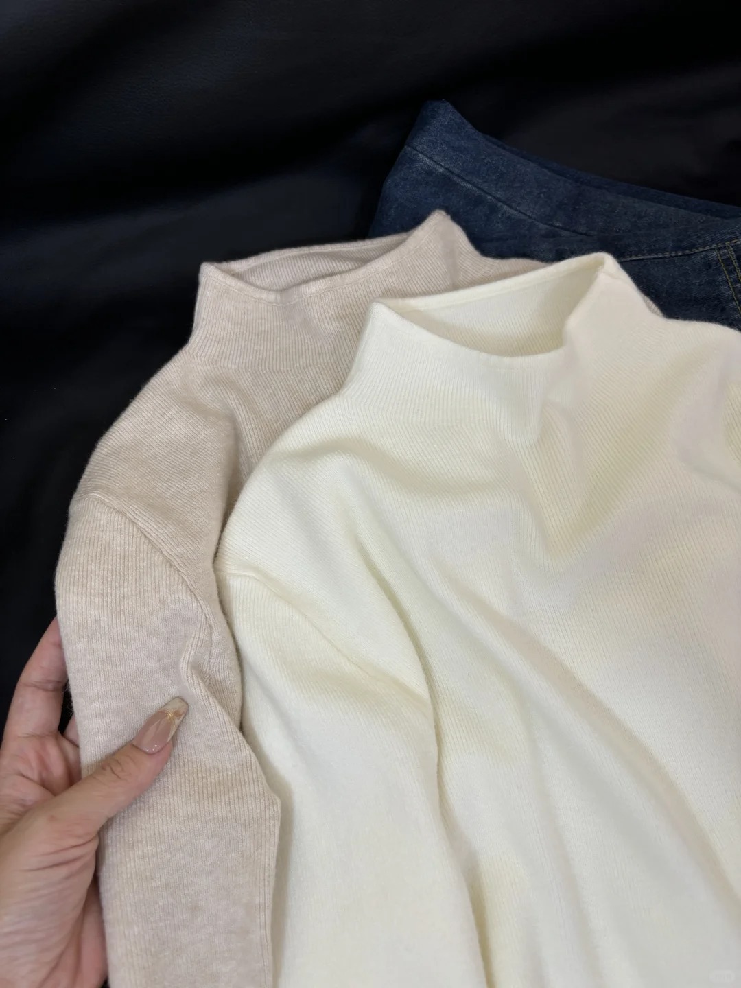봄 2025 부드러운 밀랍 한국식 작은 스탠드 칼라 내부 니트 바닥 셔츠 여성용 단순 긴팔 탑 편안한 스웨터