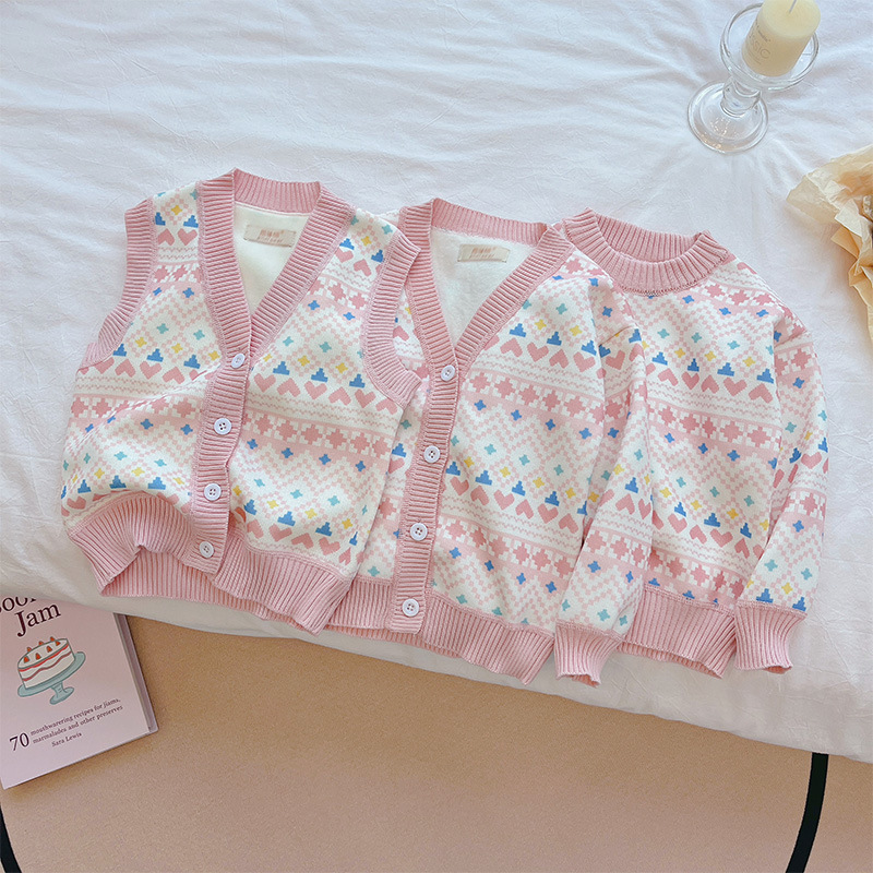 소녀 니트 카디건 가을과 겨울 새로운 벨벳 재킷 어린이 니트 스웨터 큰 어린이 탑 소녀 아기스토어 가기