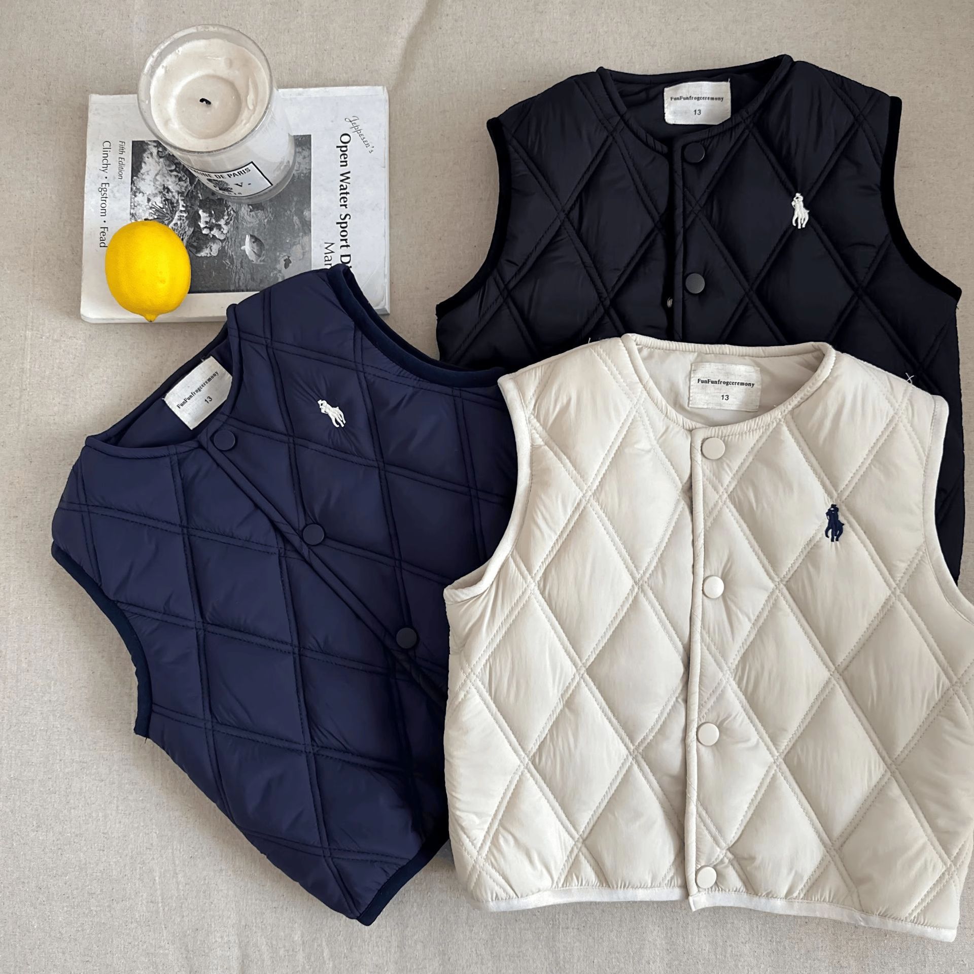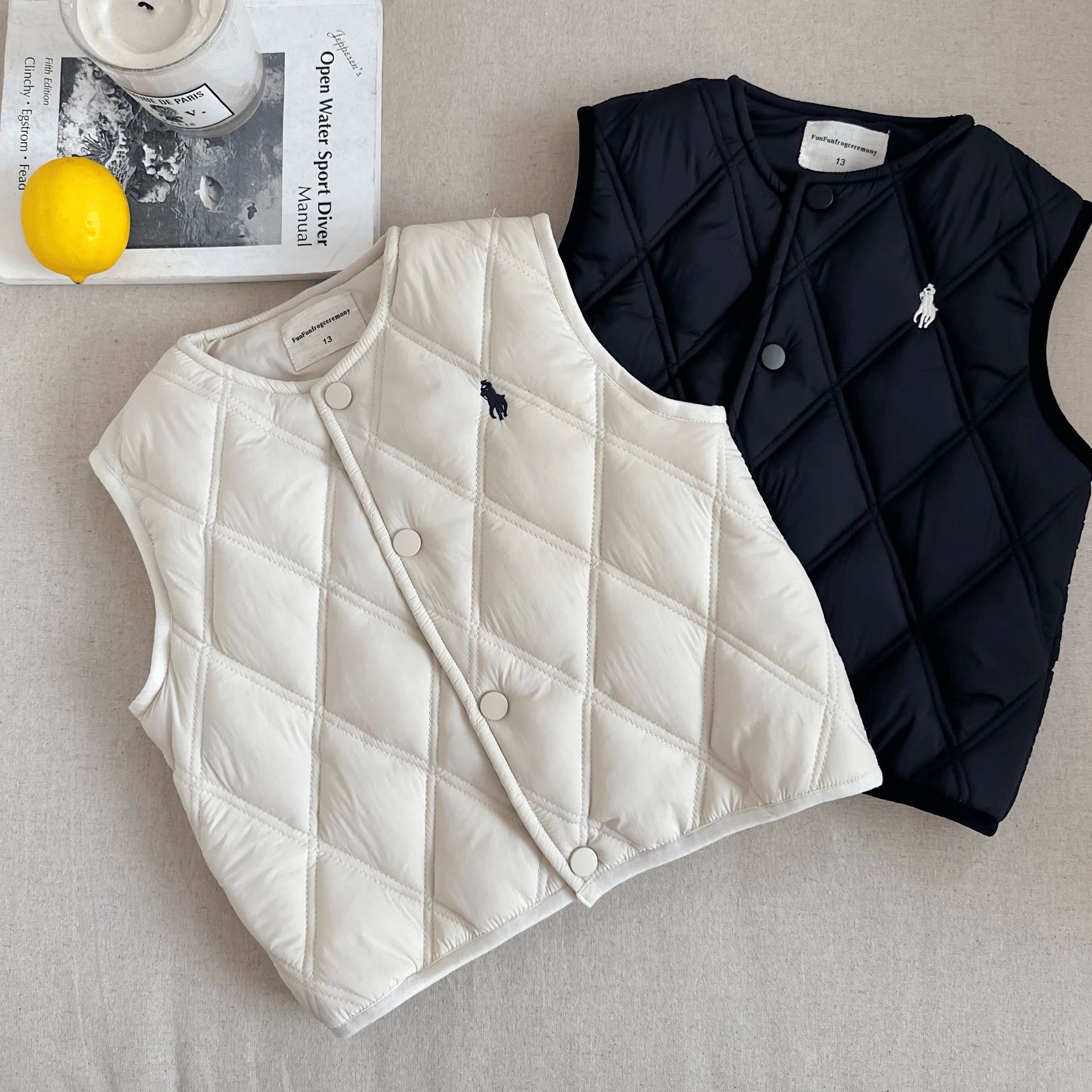 Little Bear Bear 어린이 더블 라인 조끼 25 가을, 겨울 소년과 소녀 수 놓은 유행 브랜드 다운 코튼 조끼 아기 조끼 재킷