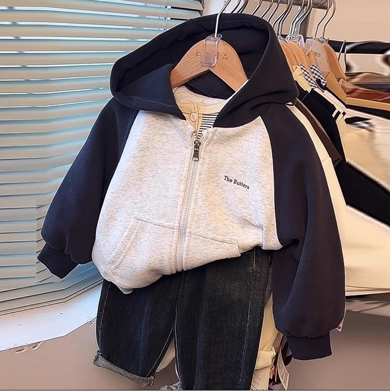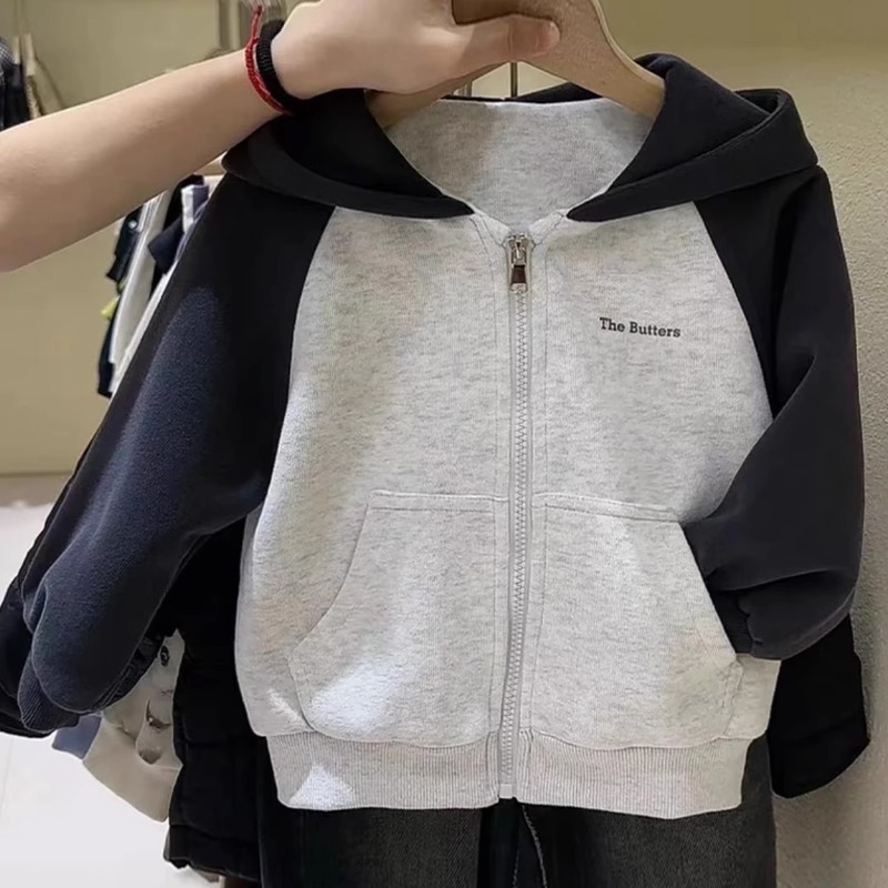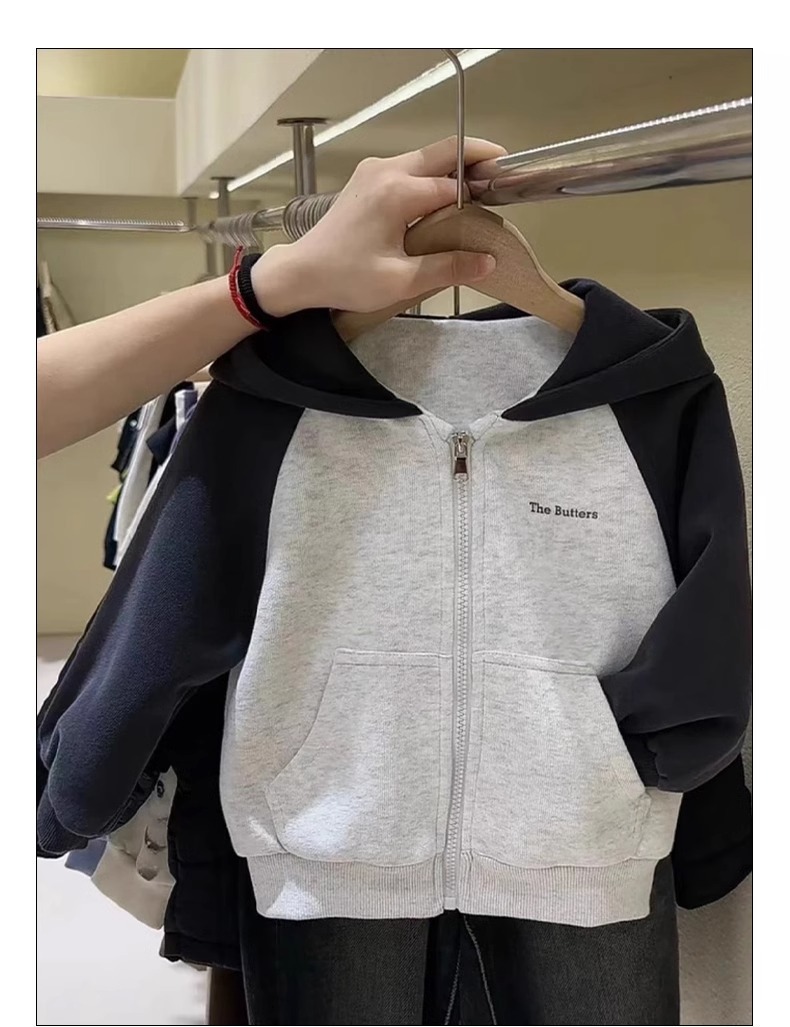 소년 대비 색 스플 라이스 후드 자켓 2025 가을 새로운 한국 스타일 느슨한 야구 유니폼 아동 캐주얼 스타일 탑스토어 가기