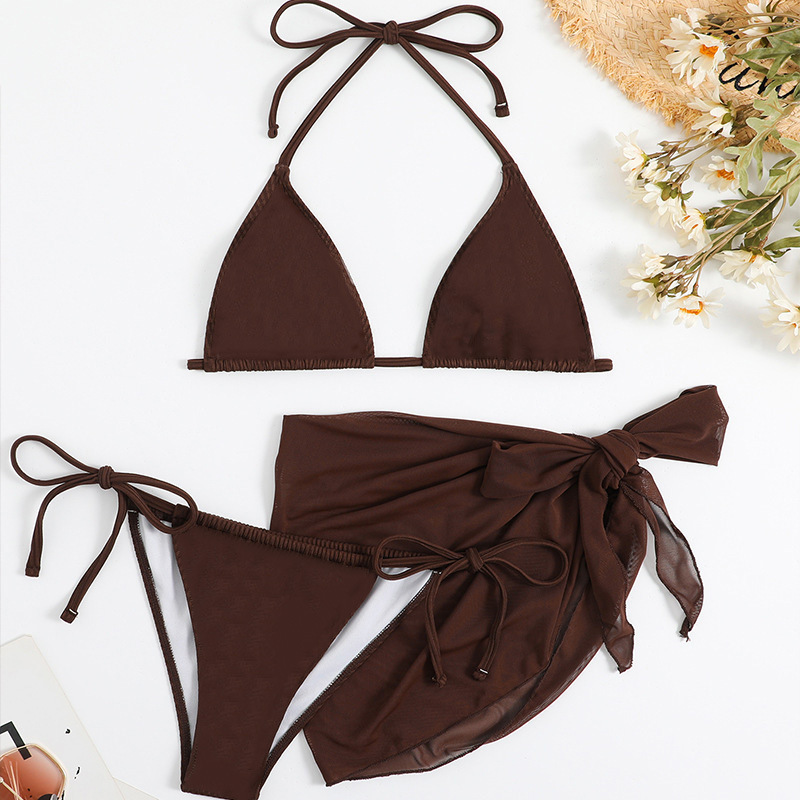 유럽과 미국은 국경을 넘나 드는 새로운 단색 목 레이스 업 비키니 하이 허리 메쉬 스플릿 섹시한 3 피스 수영복 여성