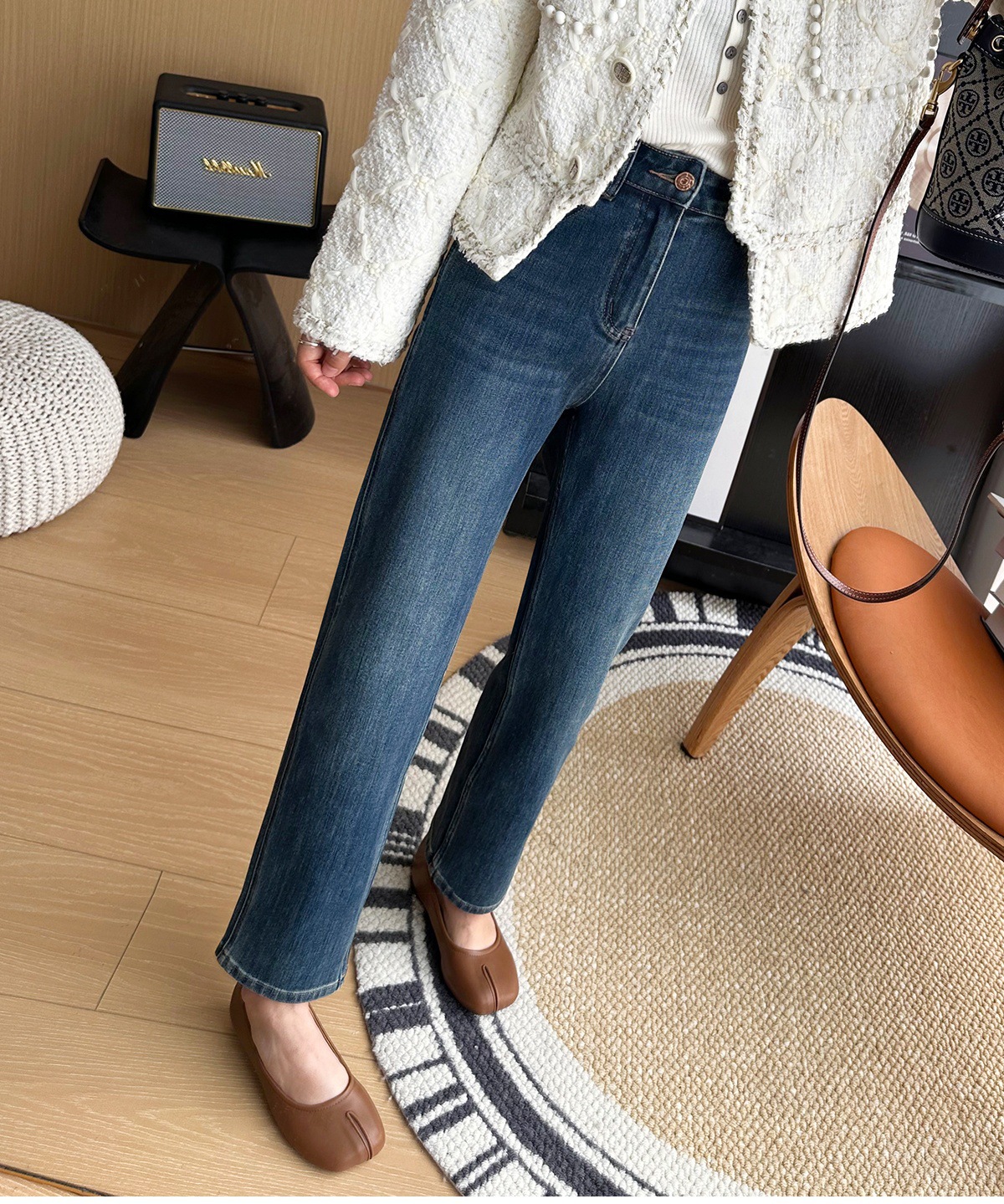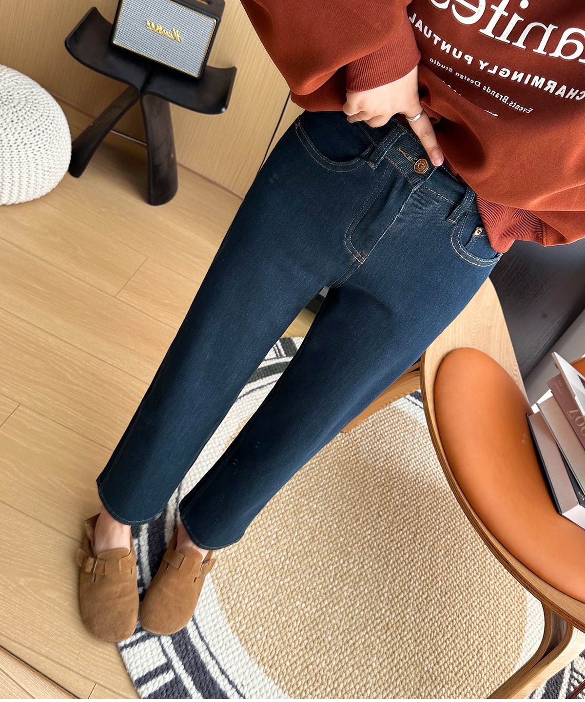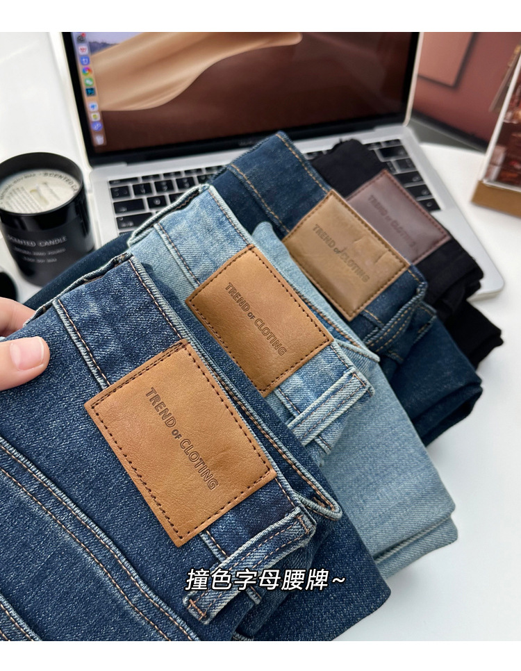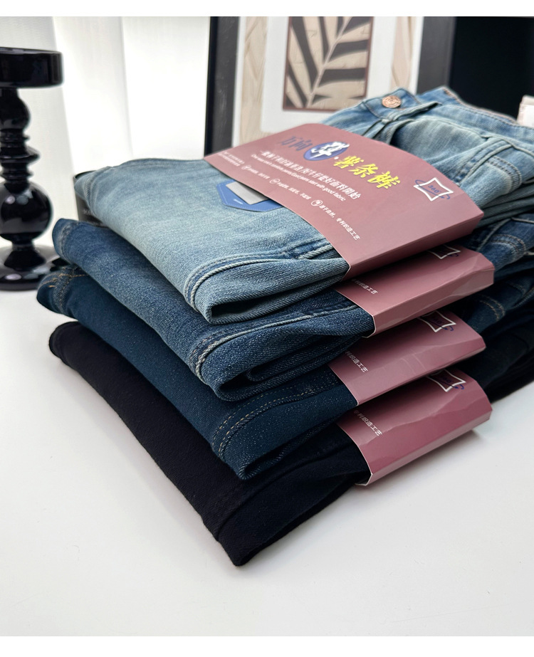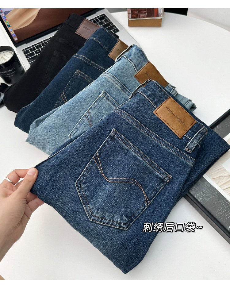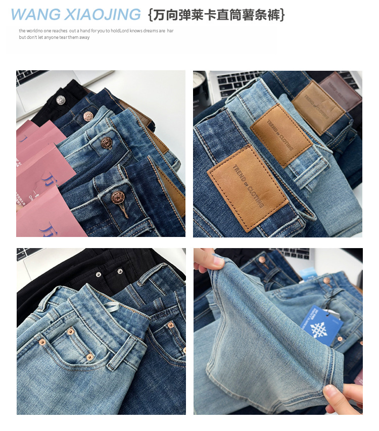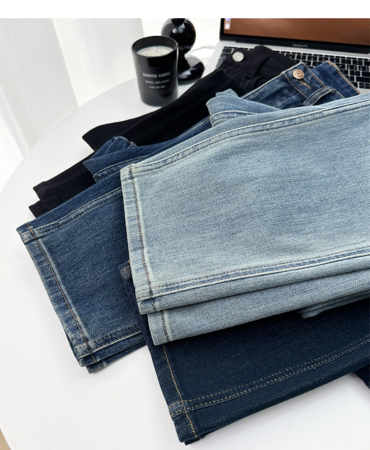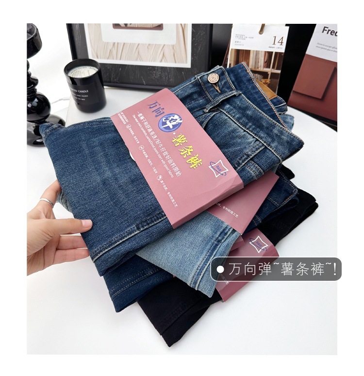 마른 다리 감자 튀김 바지! 4 면 라이카 바게트 바지 여성용 슬림 다리 모양의 직선 9 점 연기 튜브 스트레이트 청바지스토어 가기