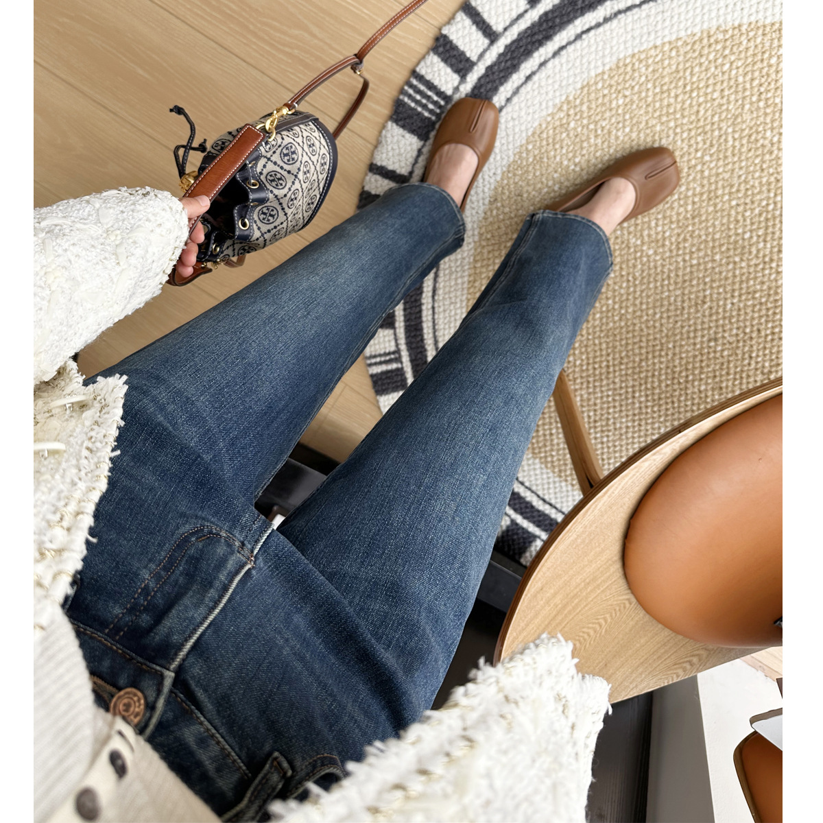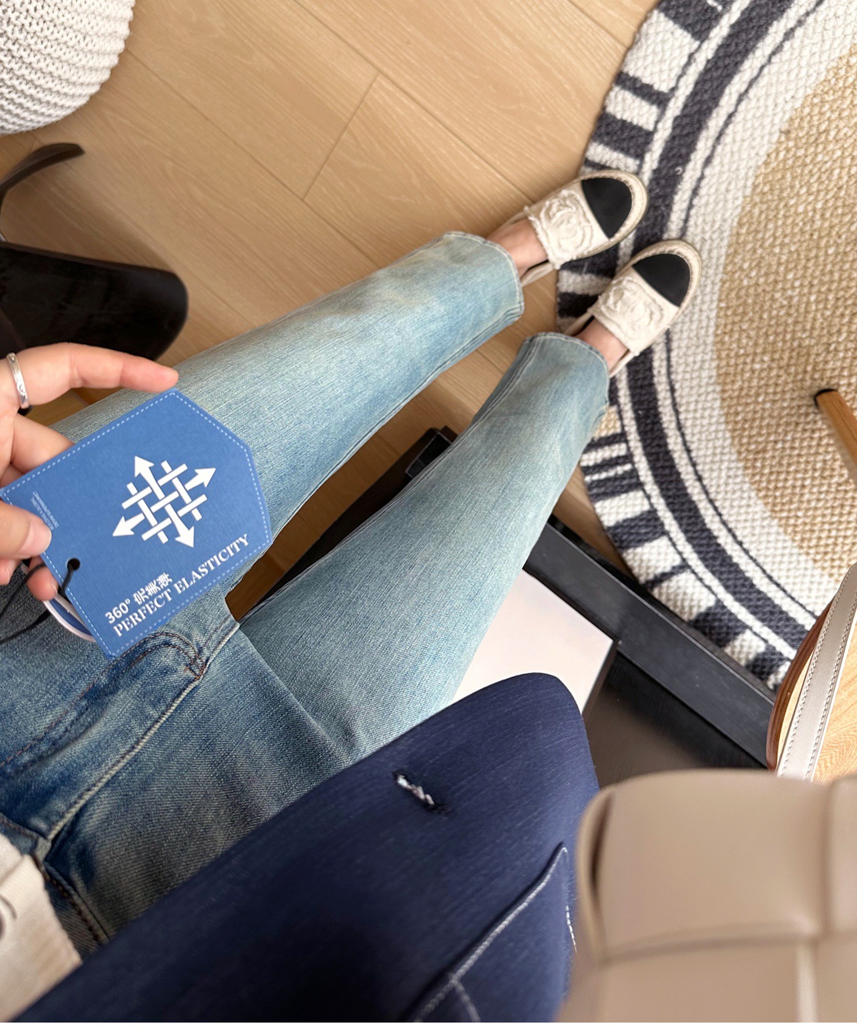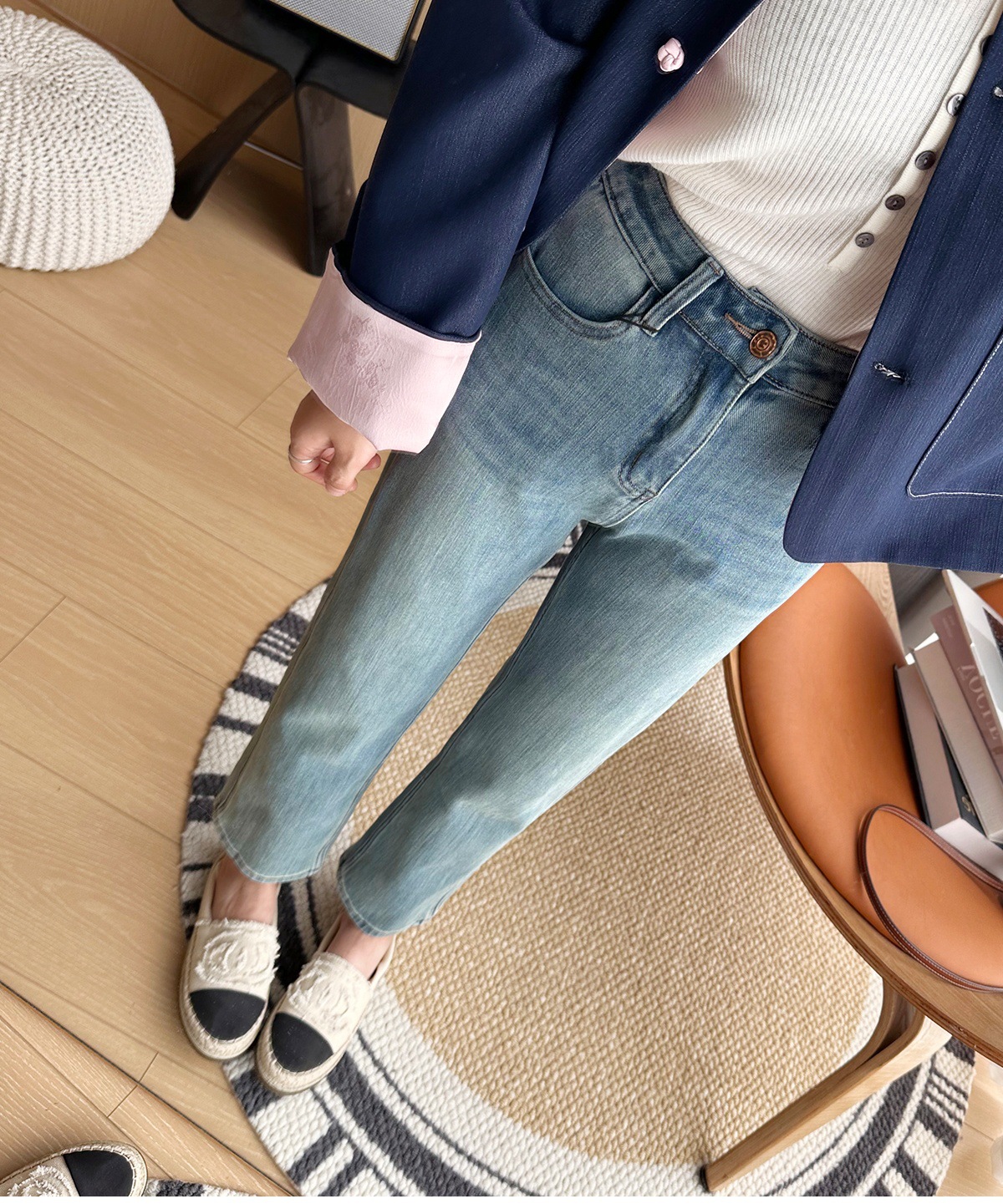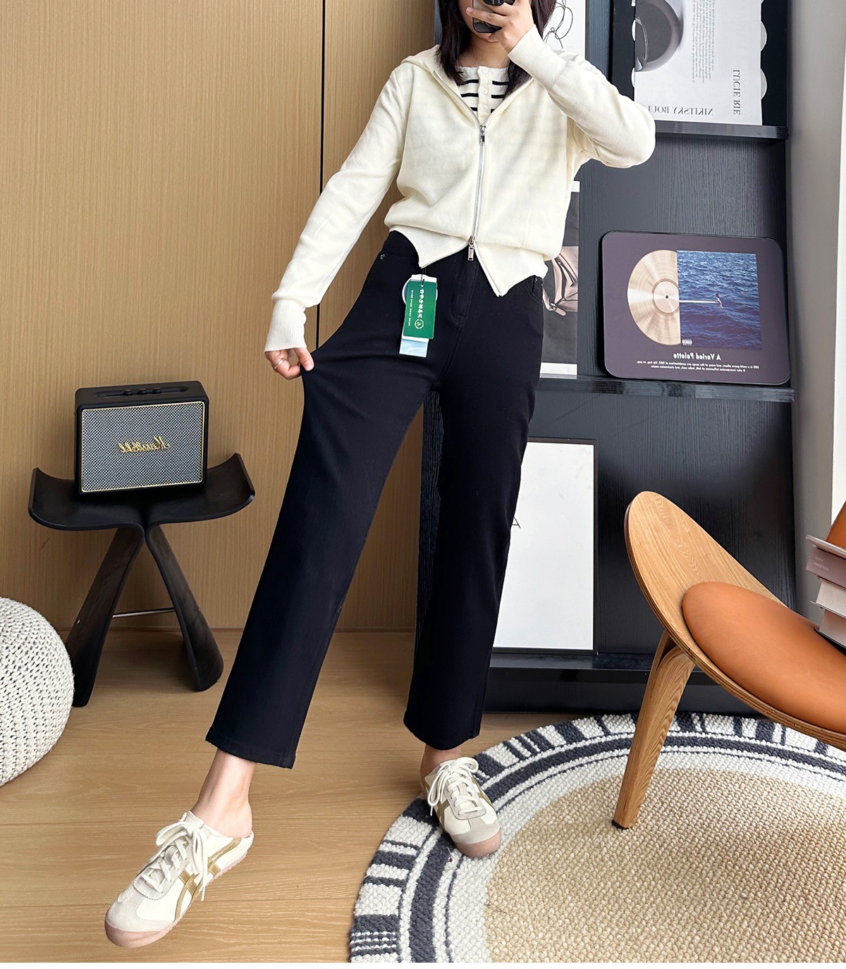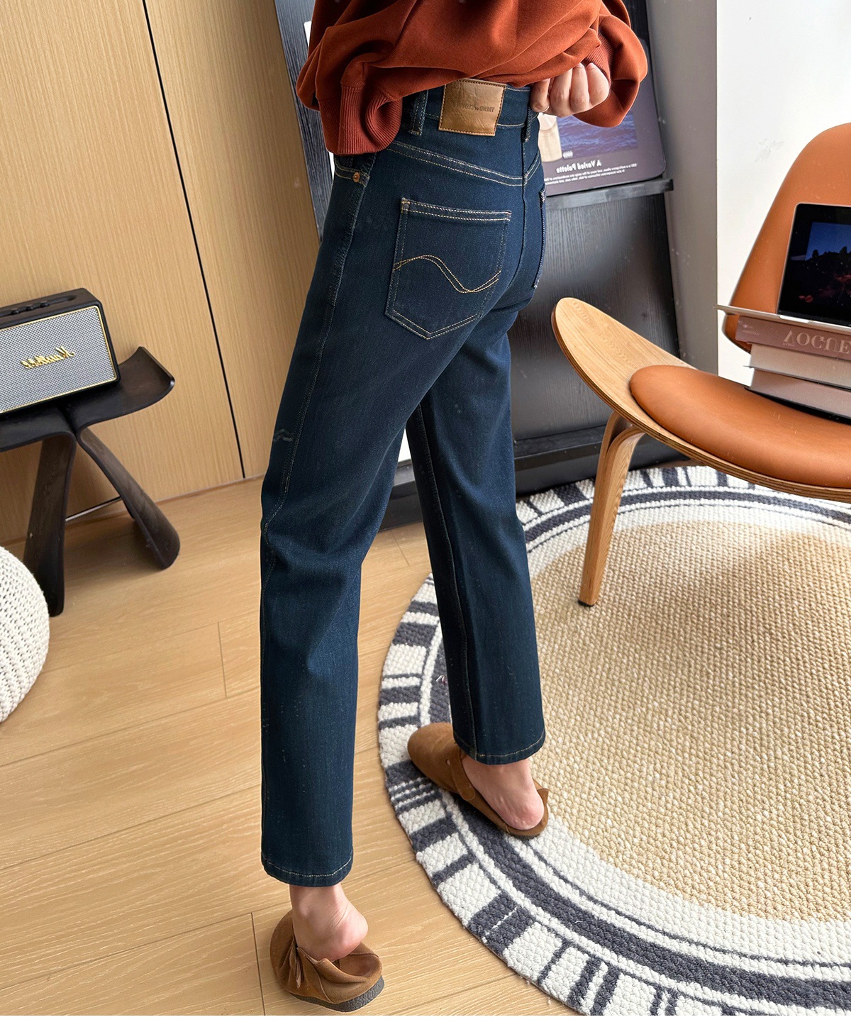 마른 다리 감자 튀김 바지! 4 면 라이카 바게트 바지 여성용 슬림 다리 모양의 직선 9 점 연기 튜브 스트레이트 청바지스토어 가기