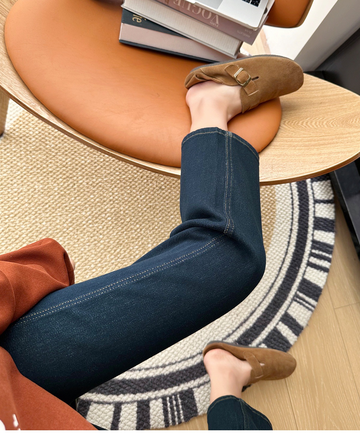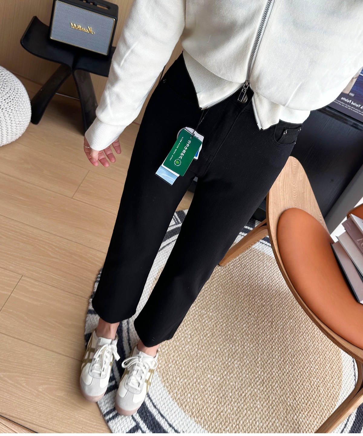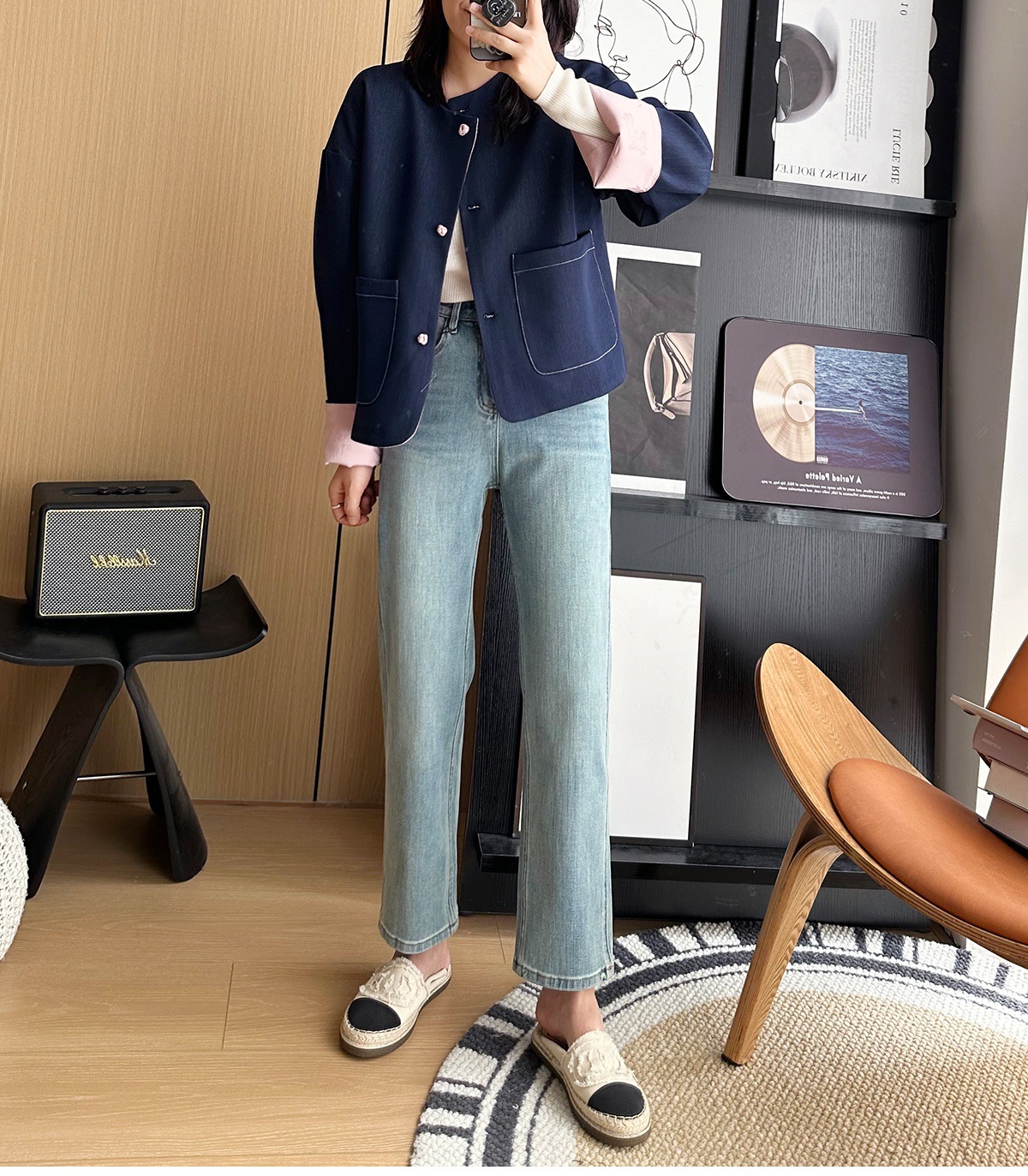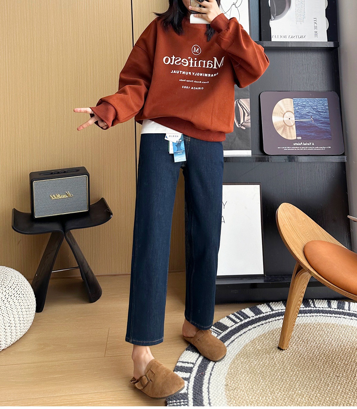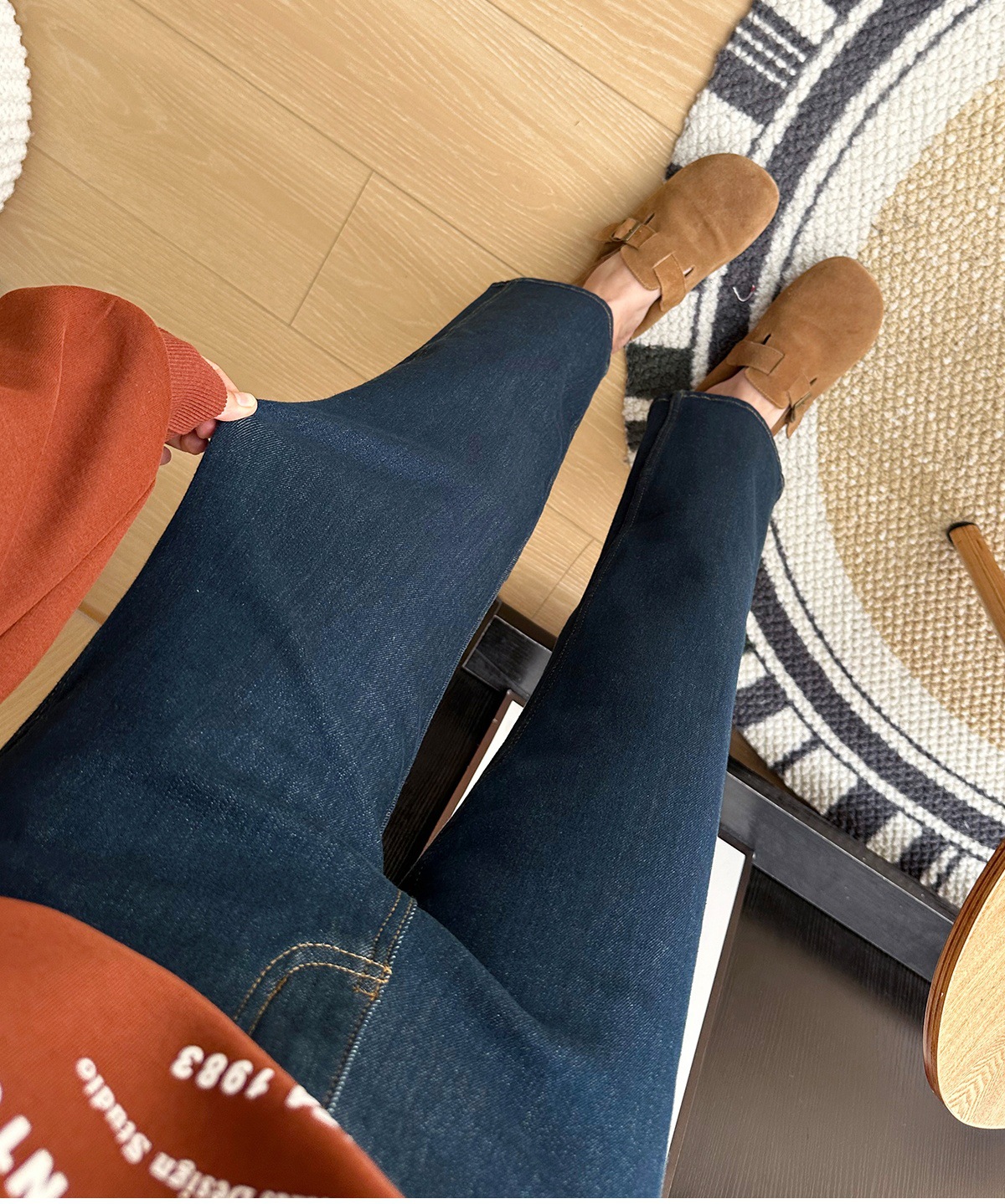 마른 다리 감자 튀김 바지! 4 면 라이카 바게트 바지 여성용 슬림 다리 모양의 직선 9 점 연기 튜브 스트레이트 청바지스토어 가기