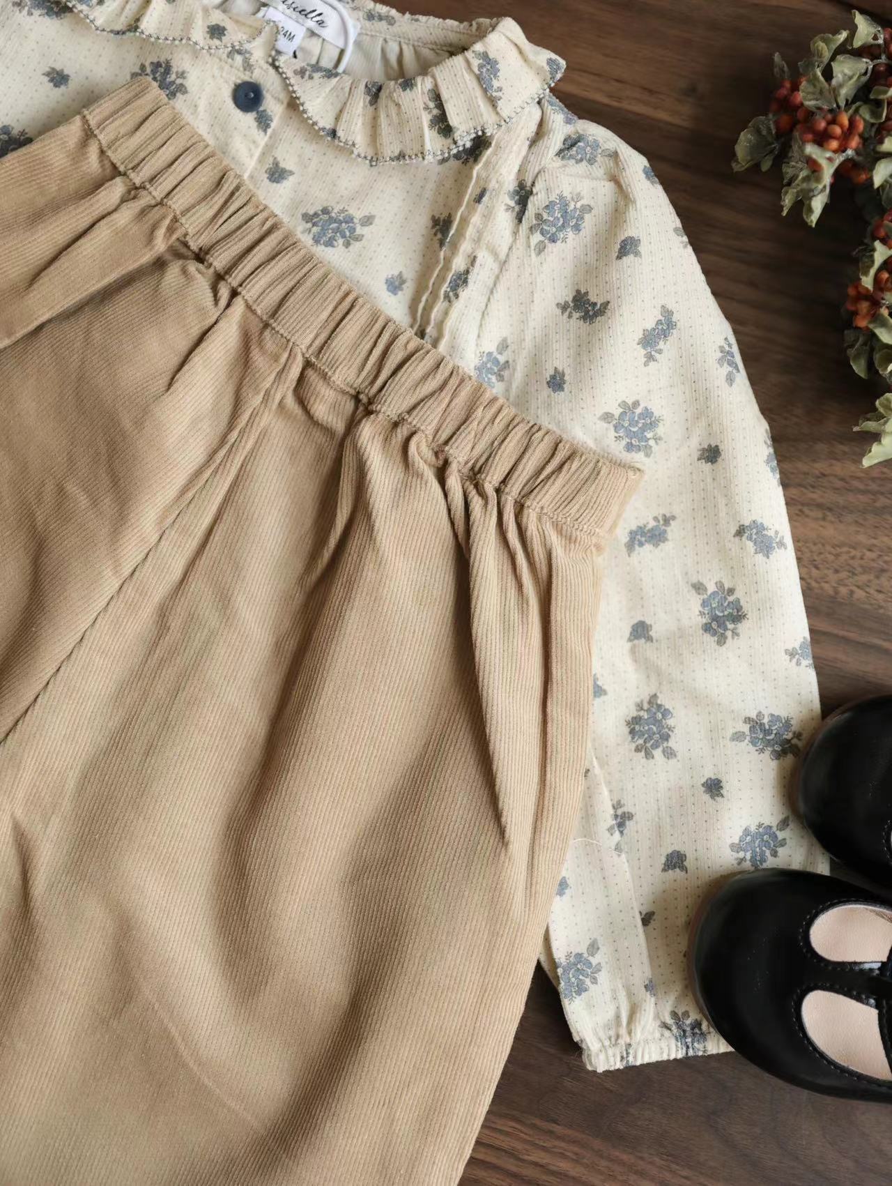 여아 가을 의류 LOU 신상 면 꽃무늬 스커트 여아 코듀로이 와이드 팬츠 따뜻한 면 스커트
