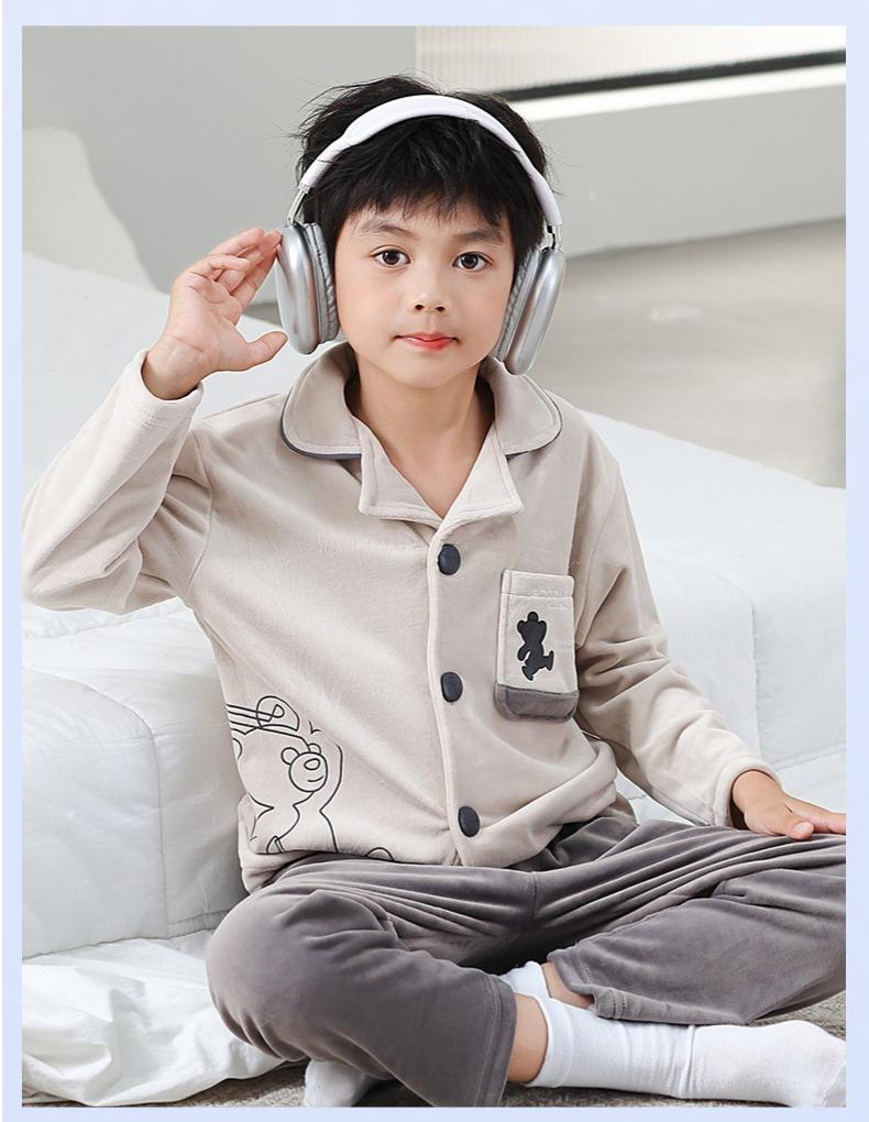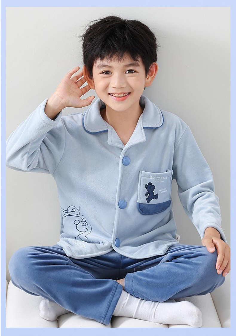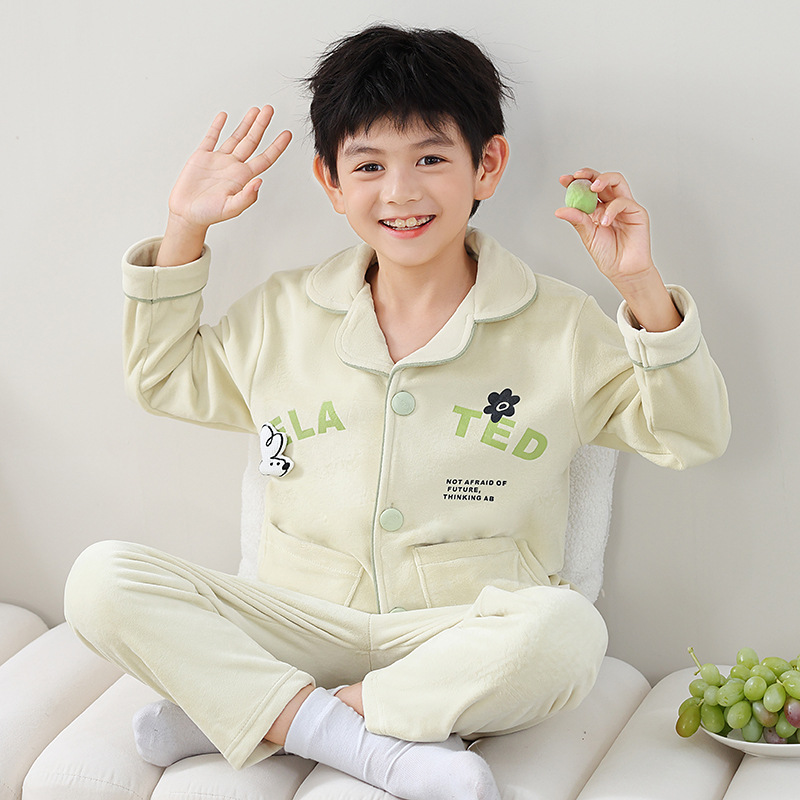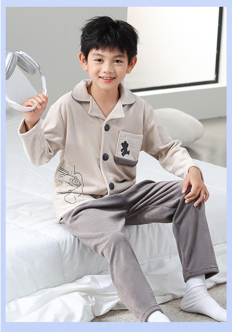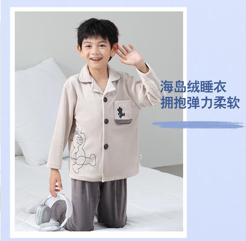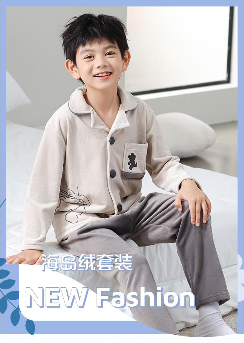 소년 섬 벨벳 파자마 2024 가을 및 겨울 새로운 대형 어린이 벨벳 홈 옷 어린이 플란넬 투피스 세트스토어 가기