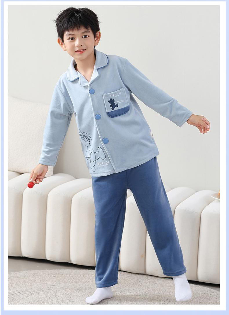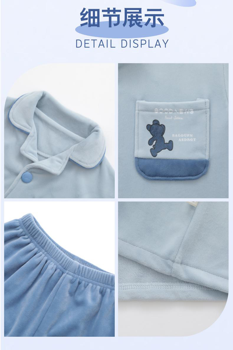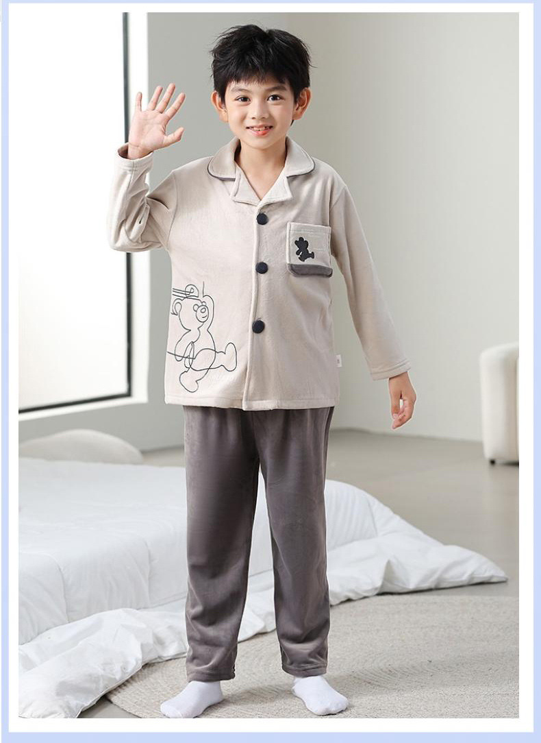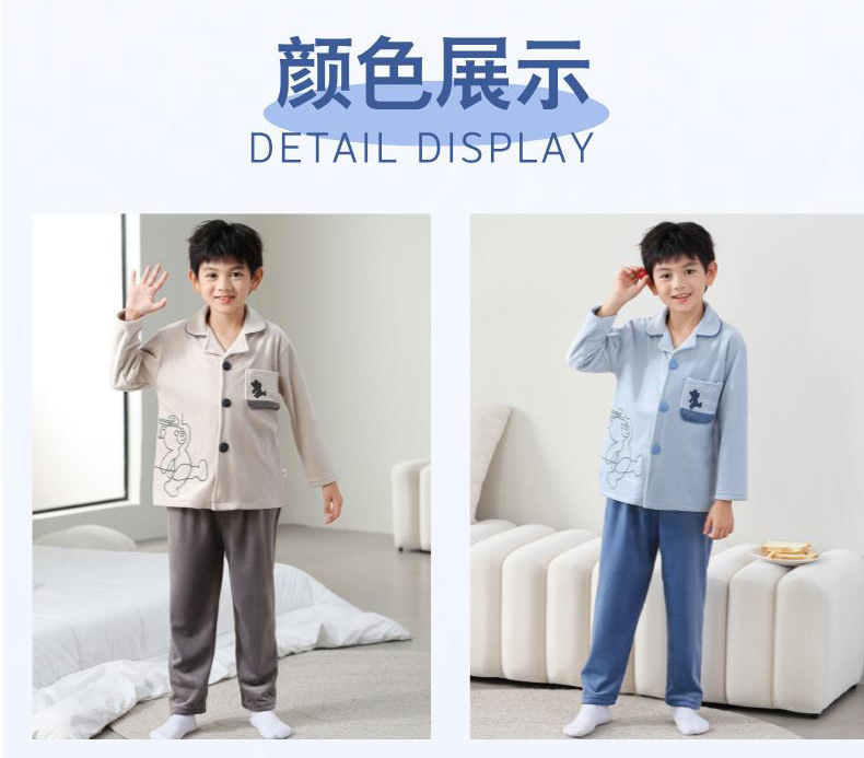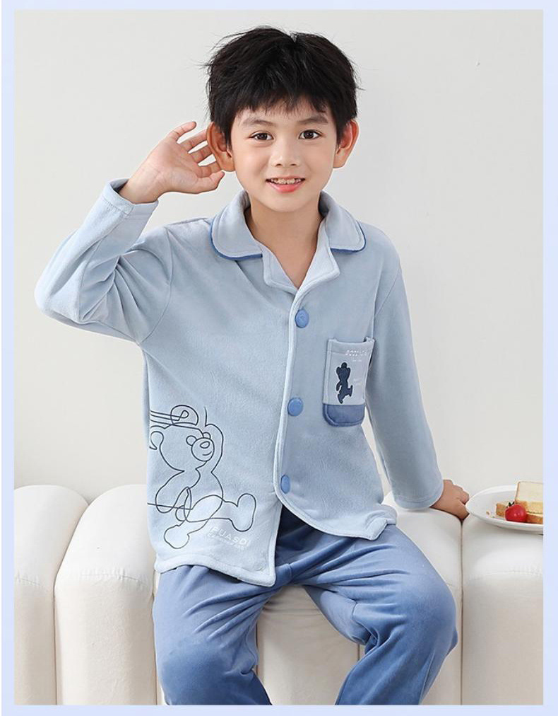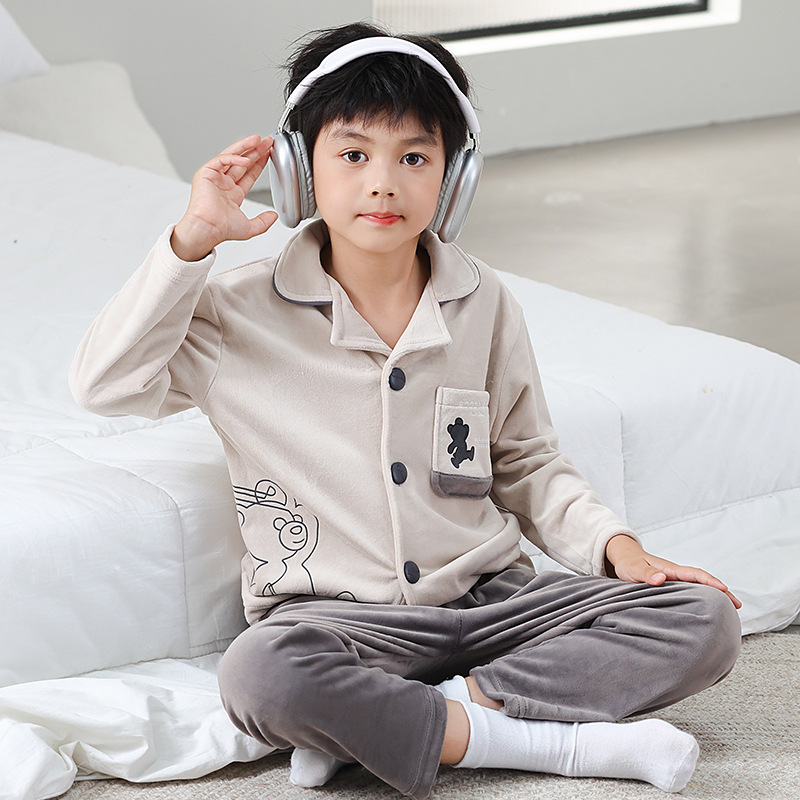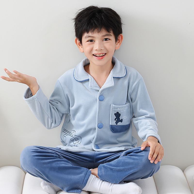 소년 섬 벨벳 파자마 2024 가을 및 겨울 새로운 대형 어린이 벨벳 홈 옷 어린이 플란넬 투피스 세트스토어 가기