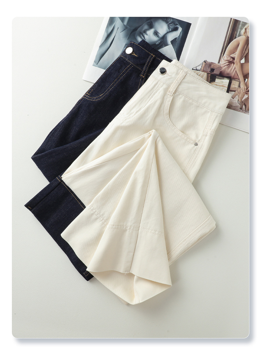 데님 오리지널 컬러 와이드 레그 청바지 여성용 2025 봄 가을 신상 루즈핏 슬림핏 다용도 9부 스트레이트 팬츠