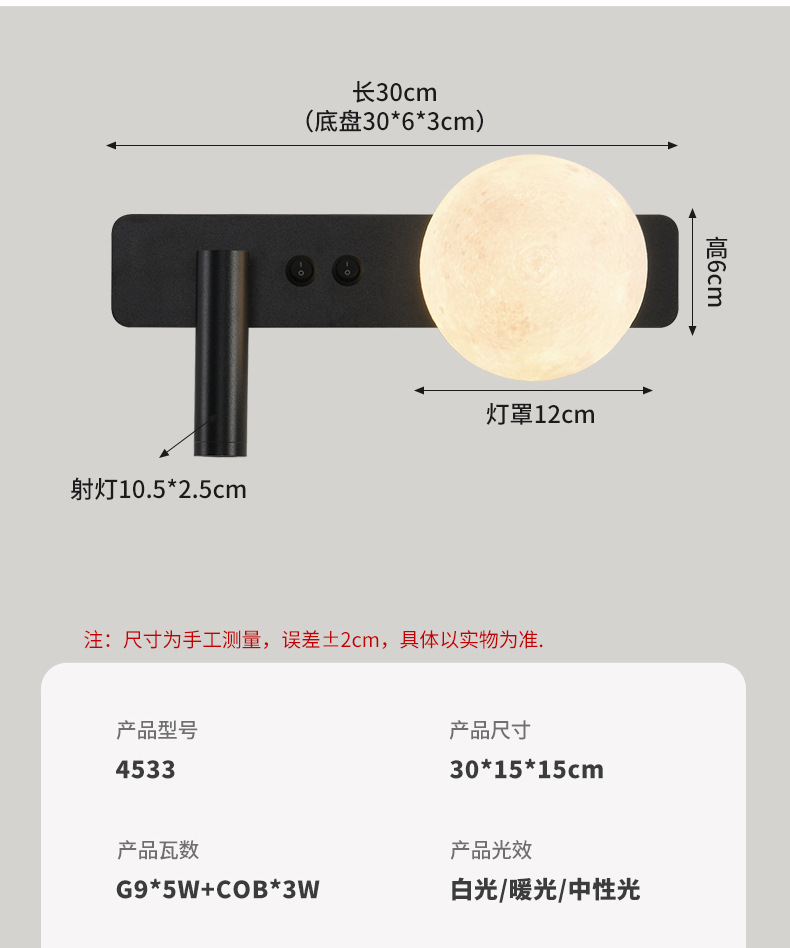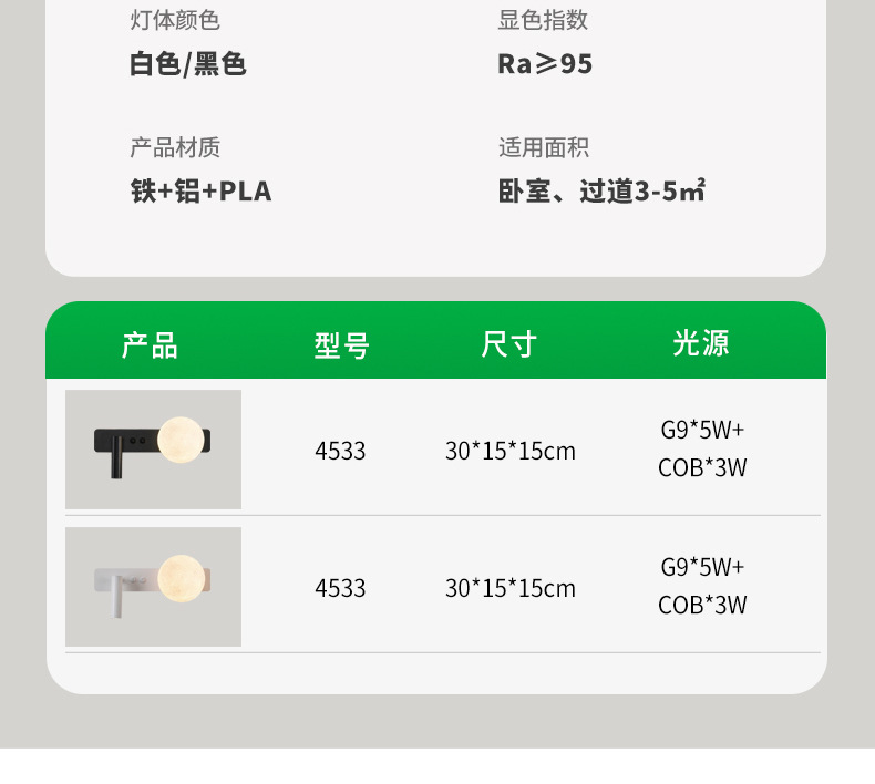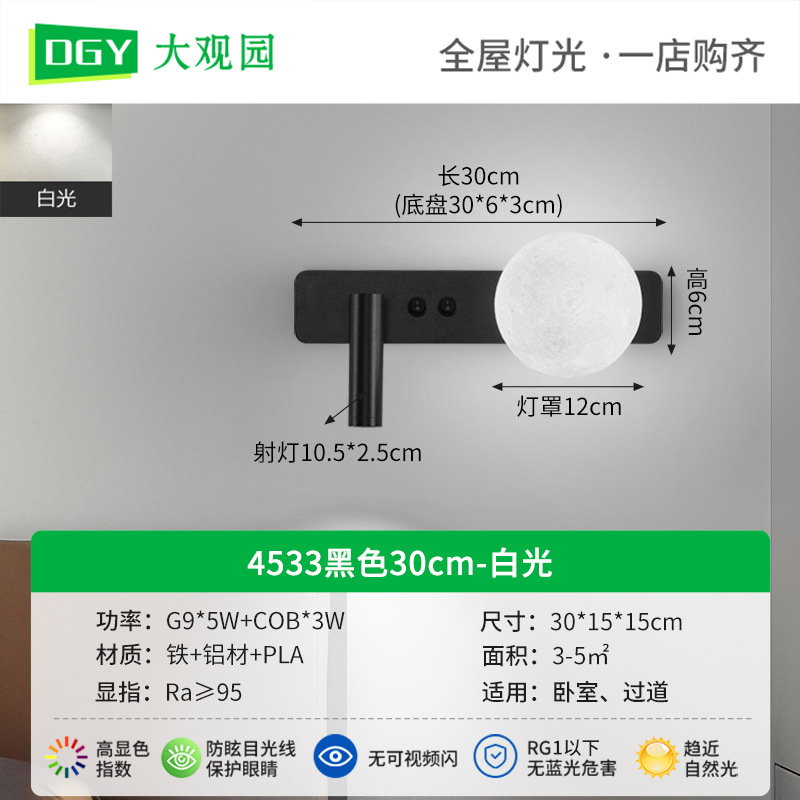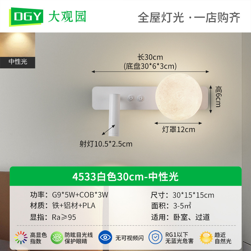 대관원 침실 침대 옆 독서 벽등 현대적이고 심플한 달 모양 서재 벽등 스포트라이트 분위기 조명 486L
