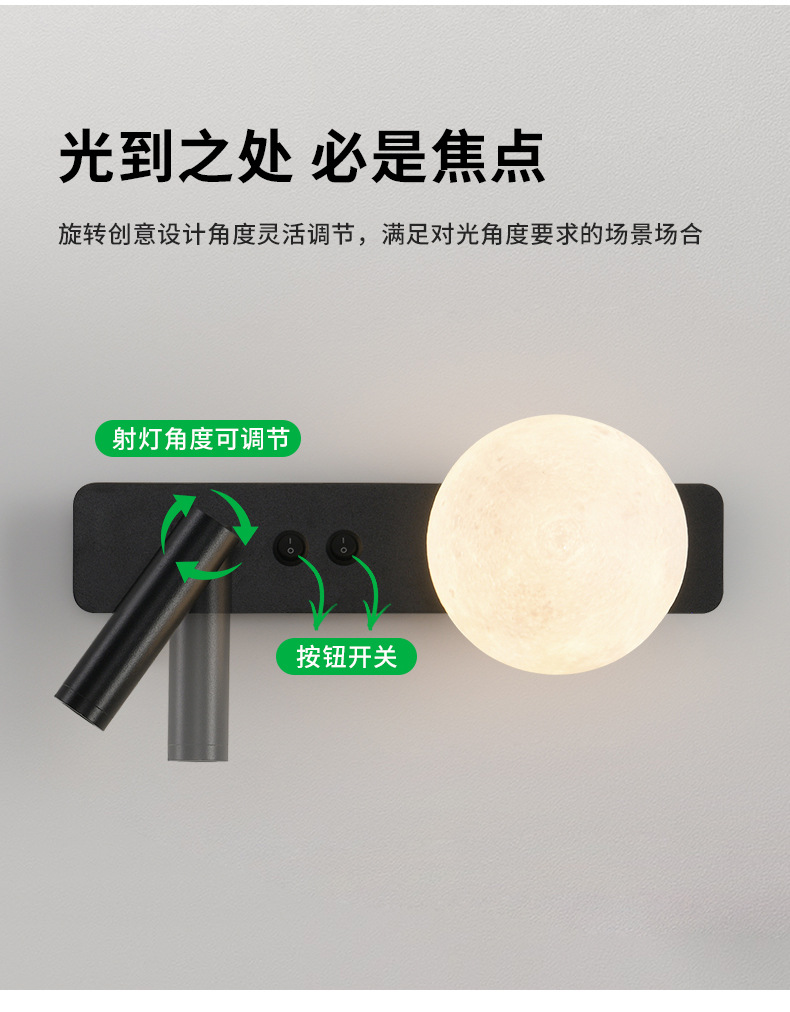 대관원 침실 침대 옆 독서 벽등 현대적이고 심플한 달 모양 서재 벽등 스포트라이트 분위기 조명 486L스토어 가기