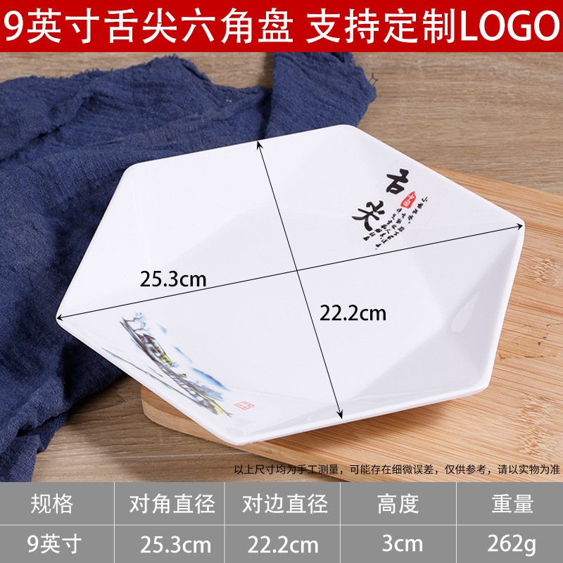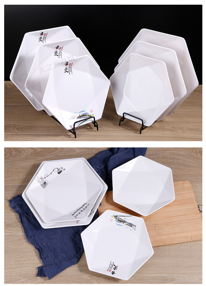 멜라민 모방 도자기 식기 육각형 접시 상업 볶음 요리 레스토랑 반찬 차가운 요리 호텔 플래터스토어 가기