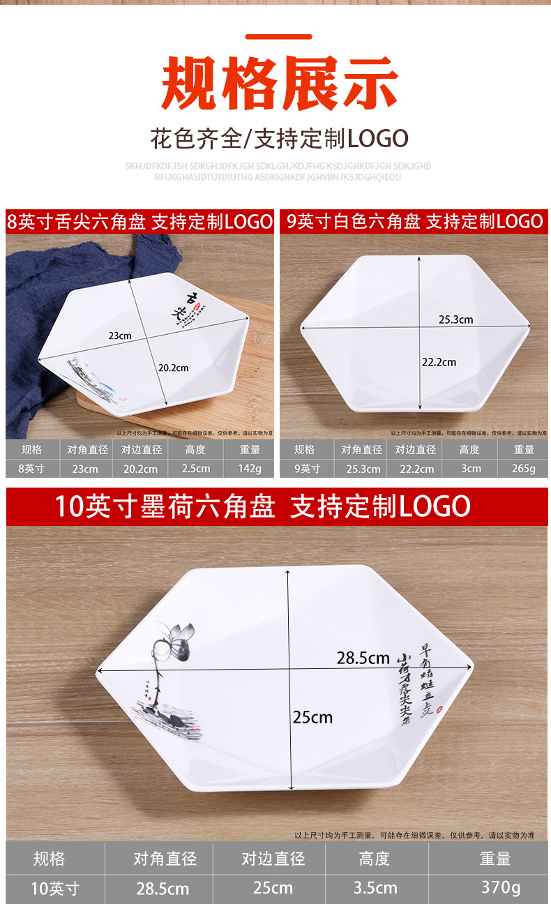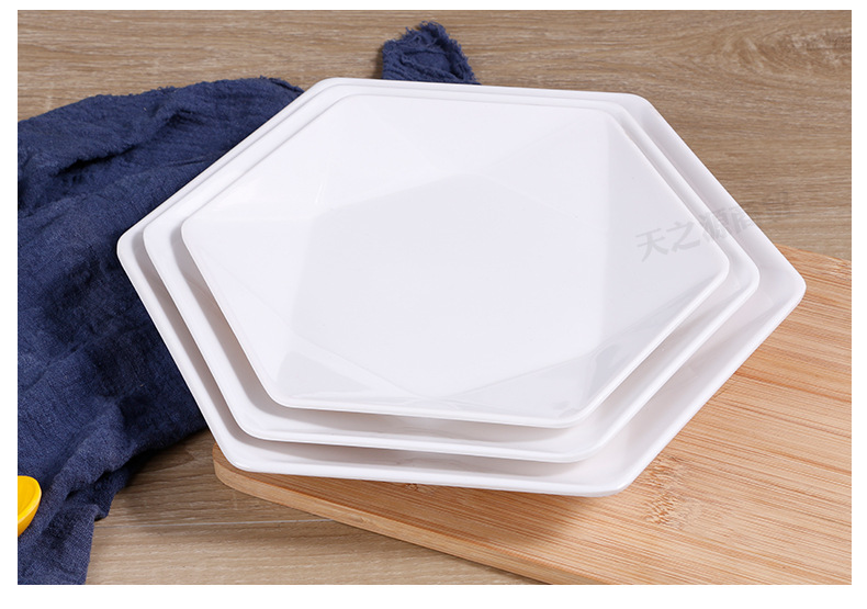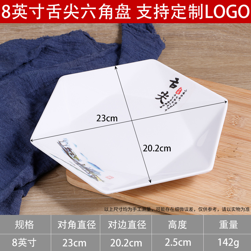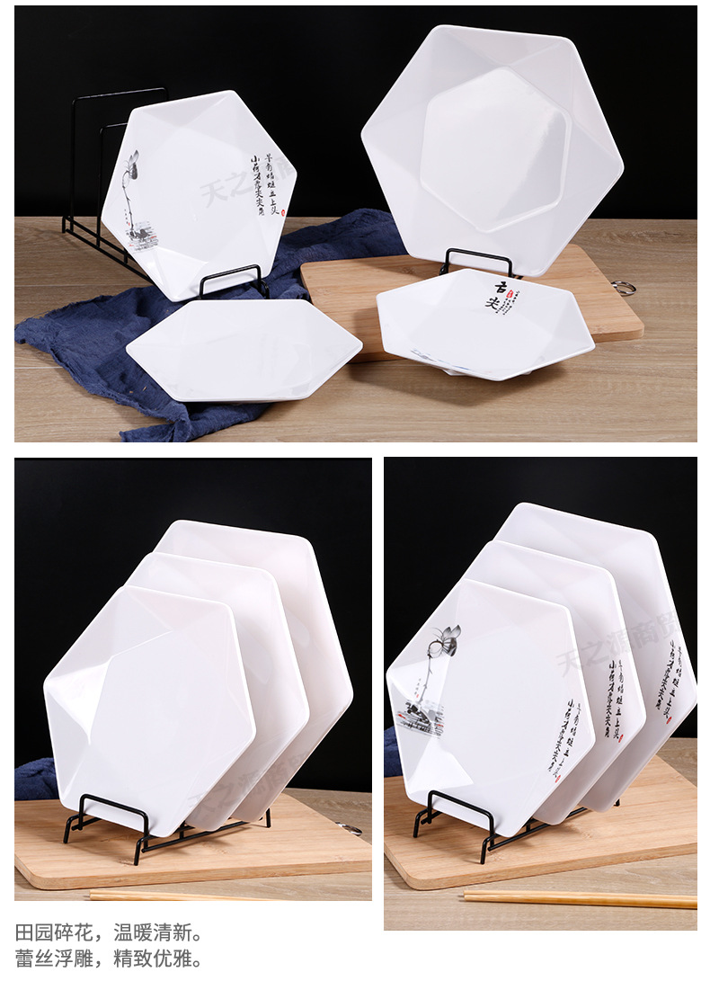 멜라민 모방 도자기 식기 육각형 접시 상업 볶음 요리 레스토랑 반찬 차가운 요리 호텔 플래터
