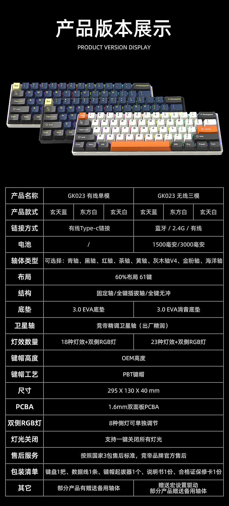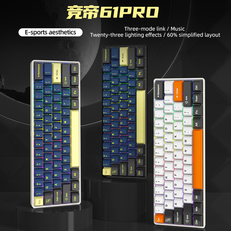 재고 공급 Jingdi 61pro 기계 키보드 RGB 블루투스 3 형 맞춤형 핫 플러그 그린 블랙 티 샤프트스토어 가기