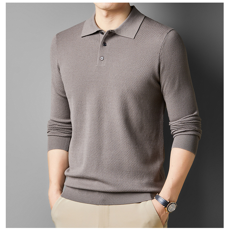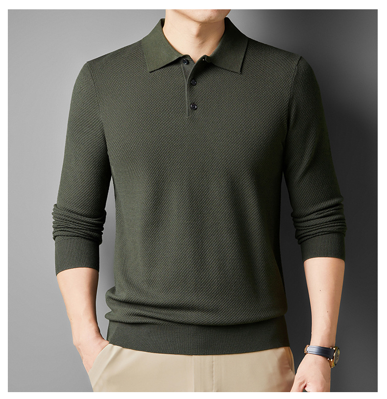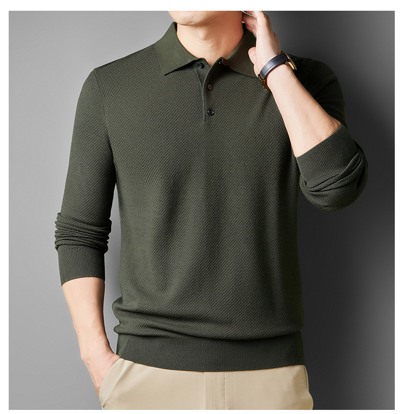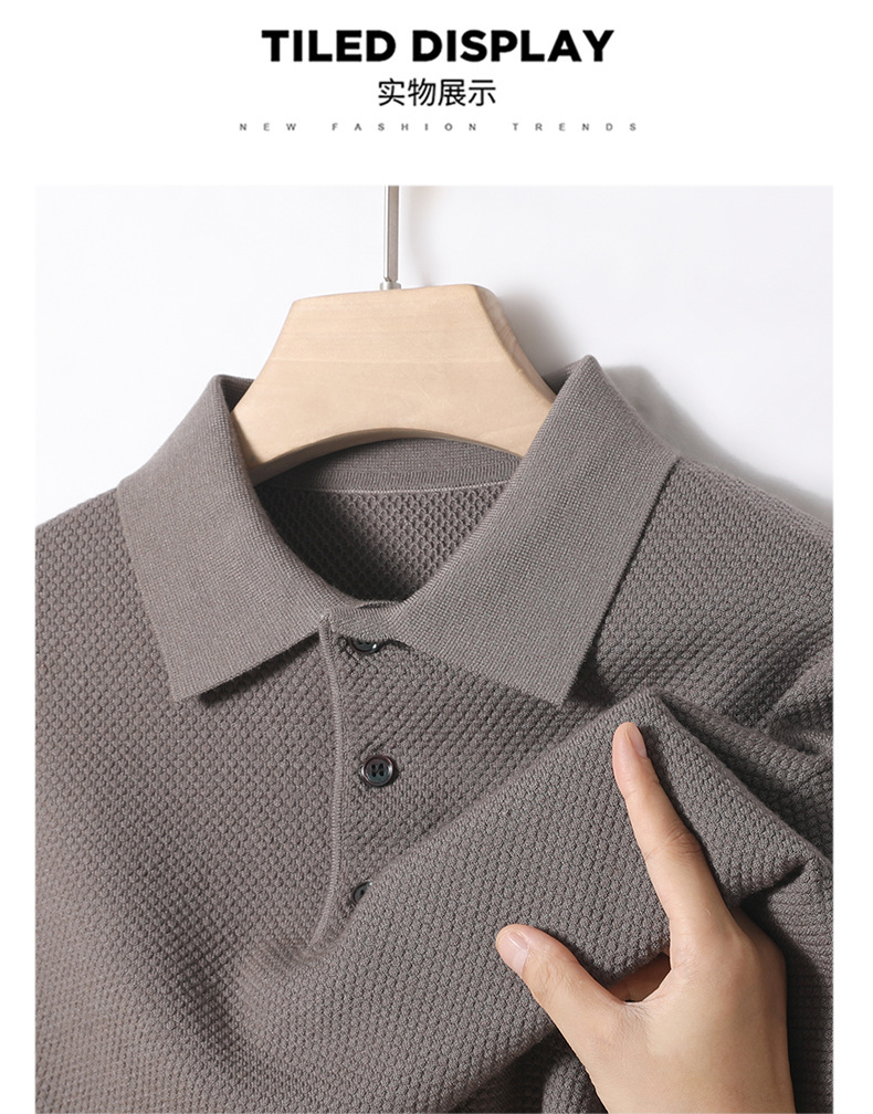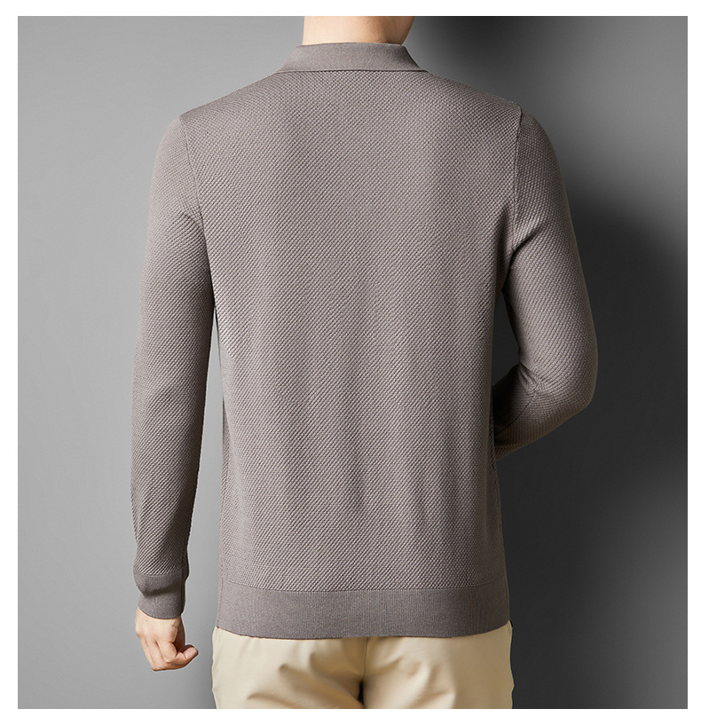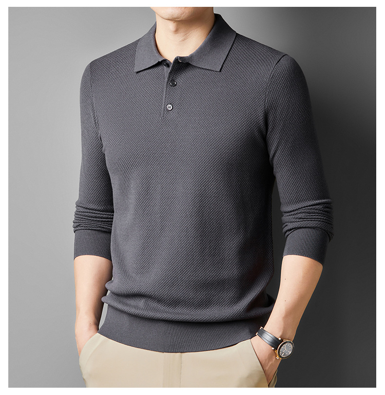 남자의 새로운 긴팔 POLO 칼라 니트 파인애플 자카드 중년 우아한 간단한 고급 아빠베이스 스웨터