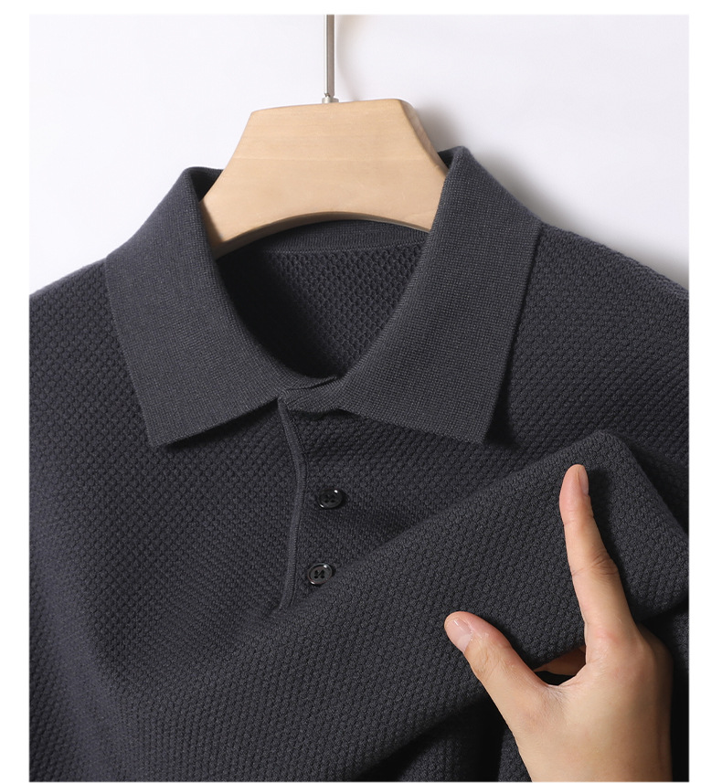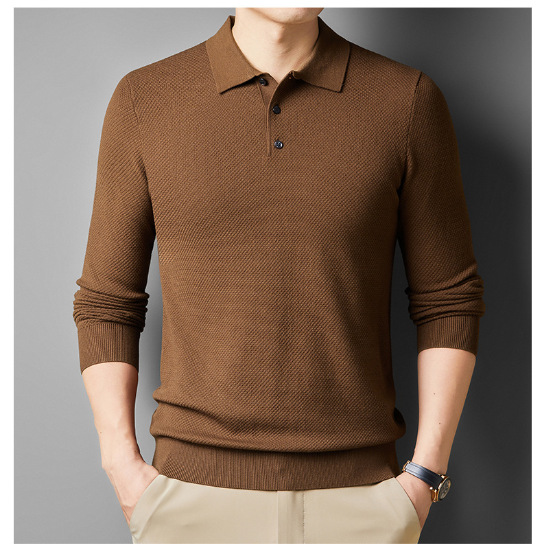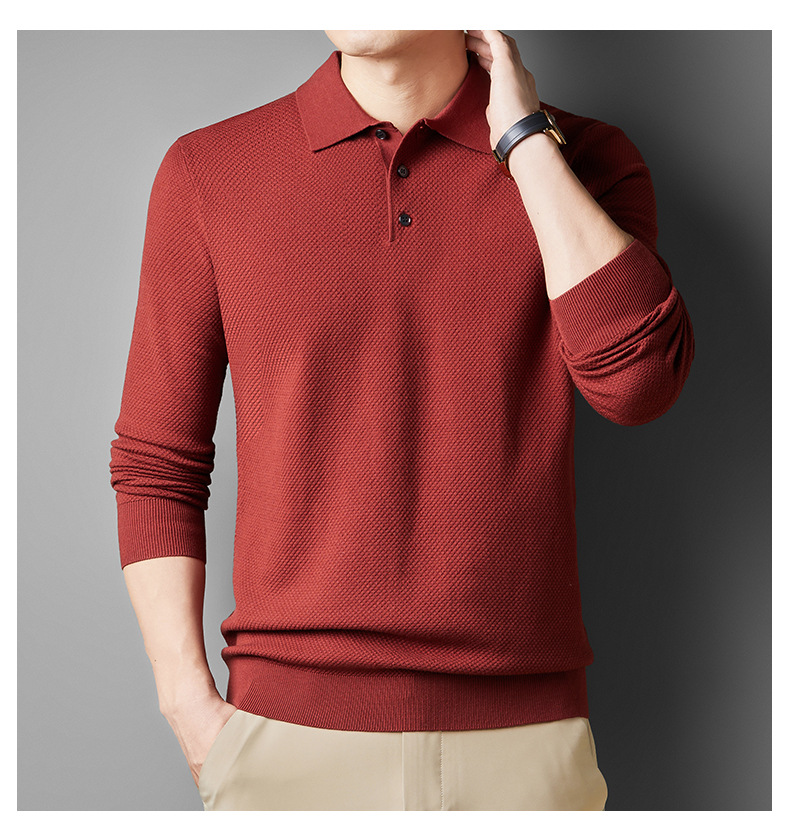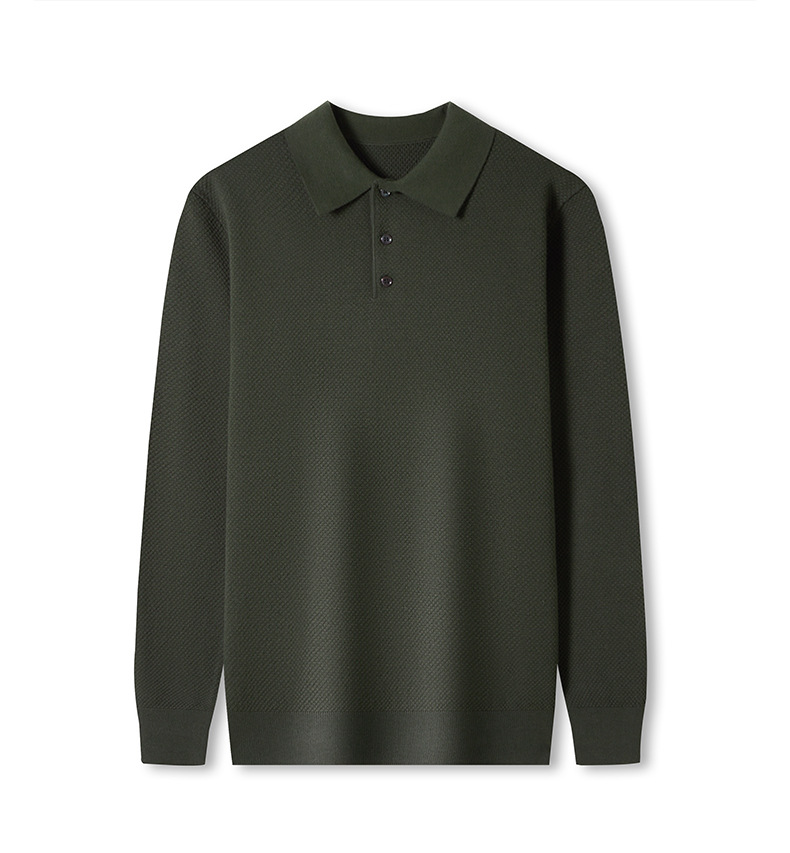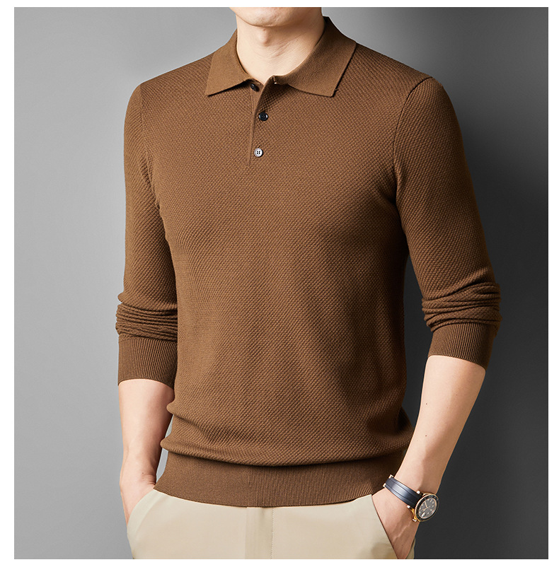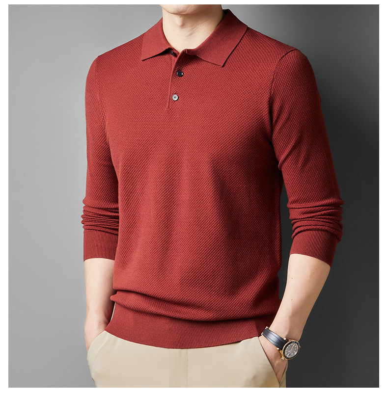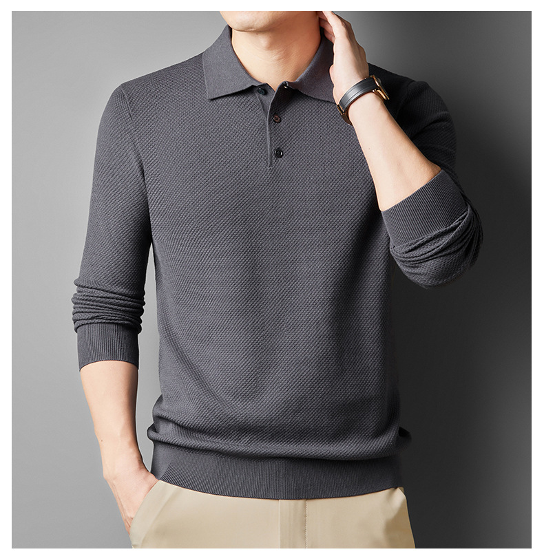 남자의 새로운 긴팔 POLO 칼라 니트 파인애플 자카드 중년 우아한 간단한 고급 아빠베이스 스웨터