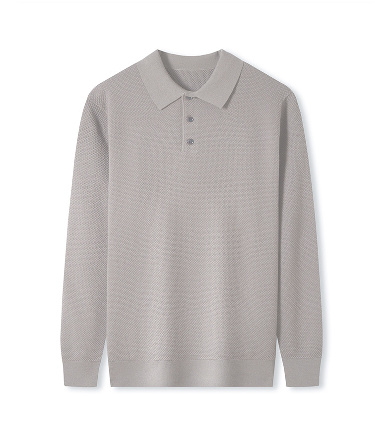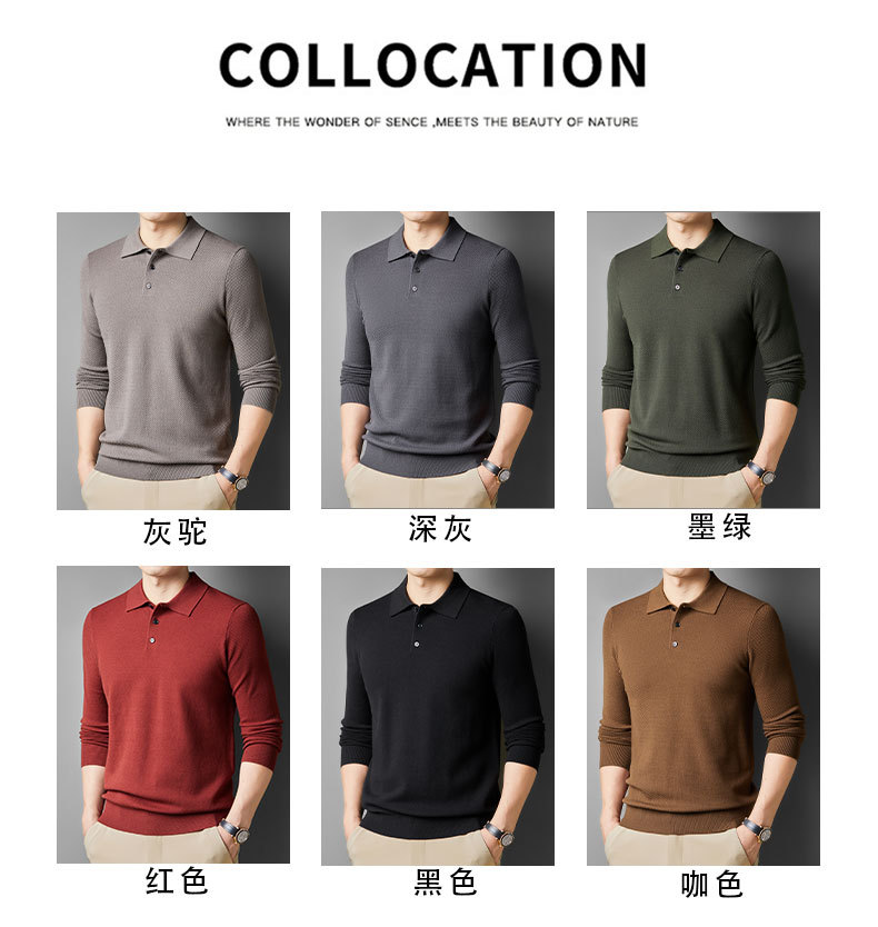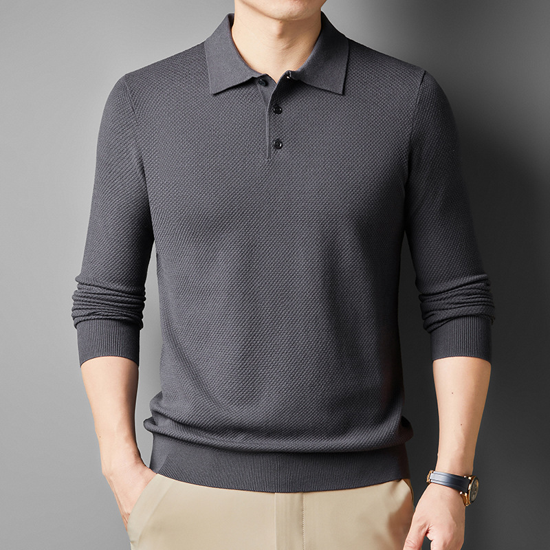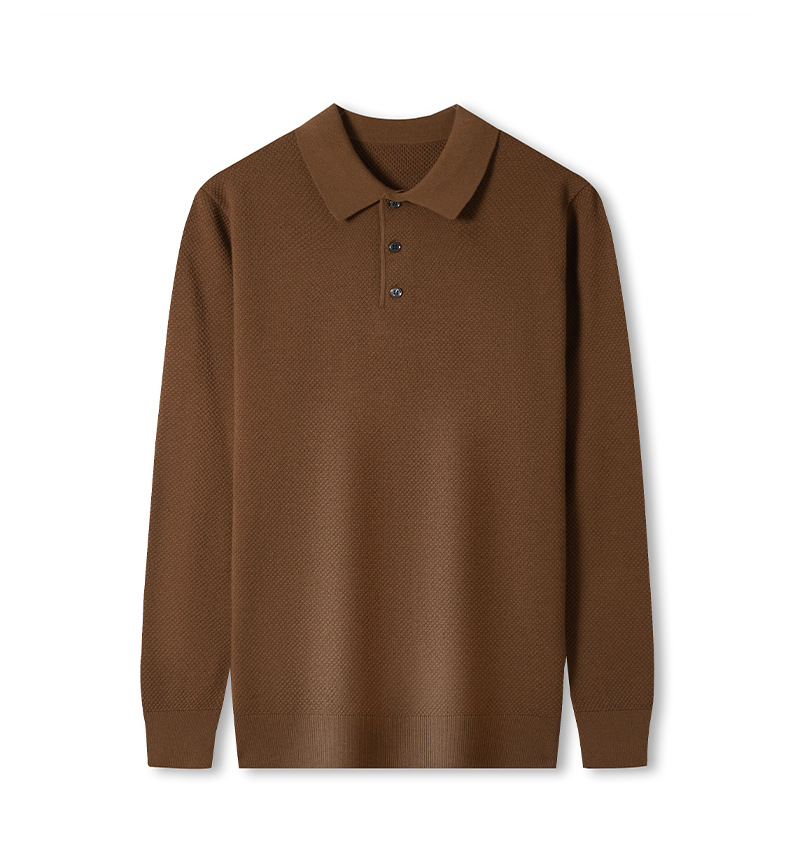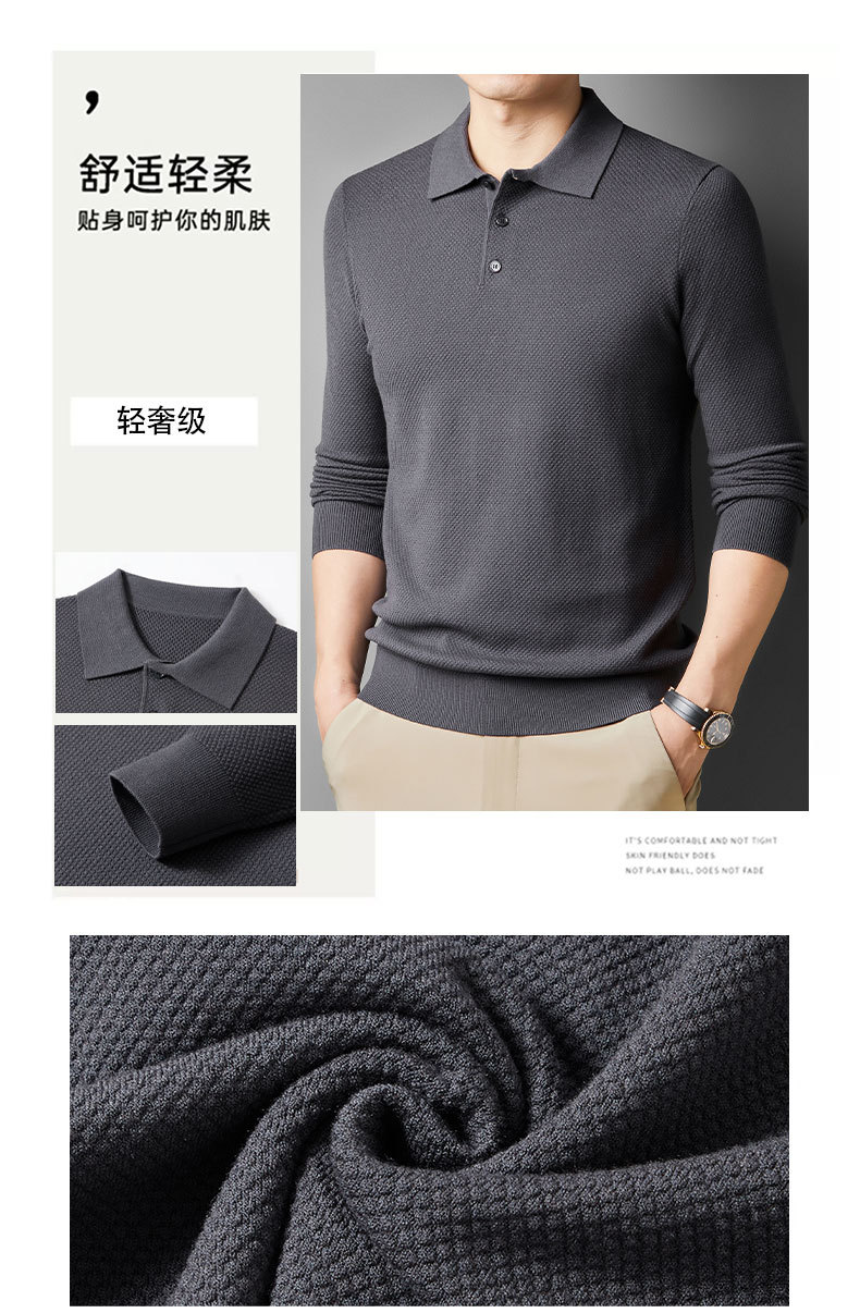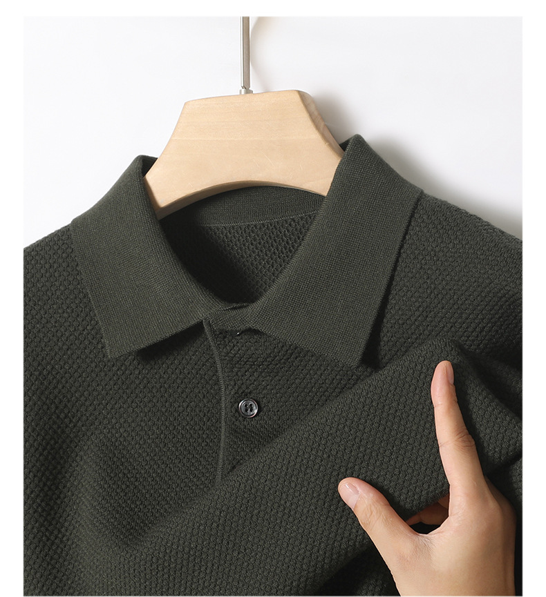 남자의 새로운 긴팔 POLO 칼라 니트 파인애플 자카드 중년 우아한 간단한 고급 아빠베이스 스웨터