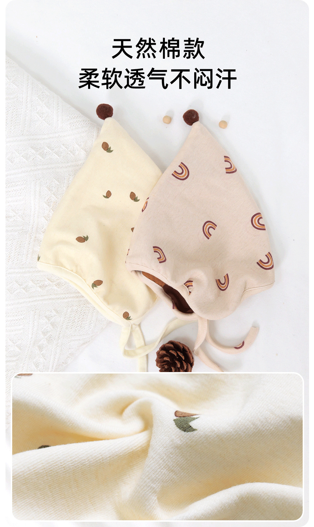 신생아 모자 귀여운 슈퍼 귀여운 아기 소년과 소녀 봄과 가을 모자 아기 귀 보호 캡 레이스 모자