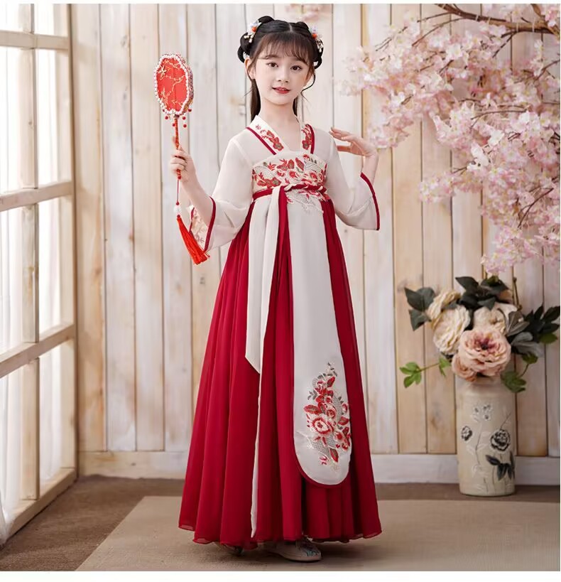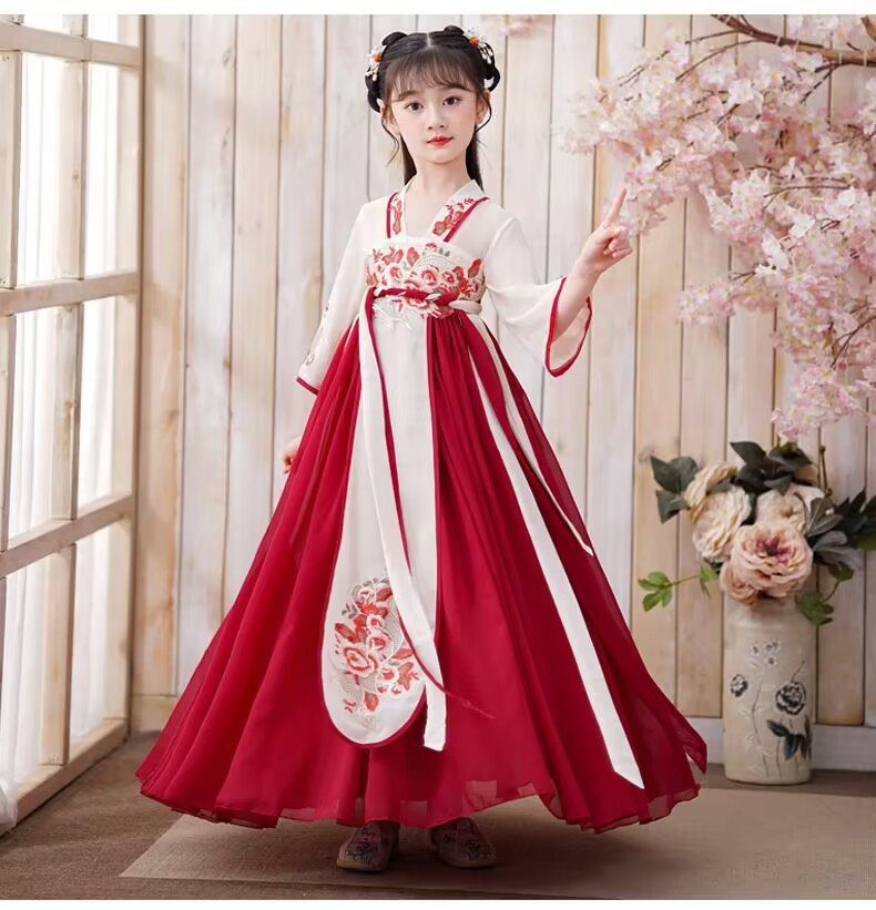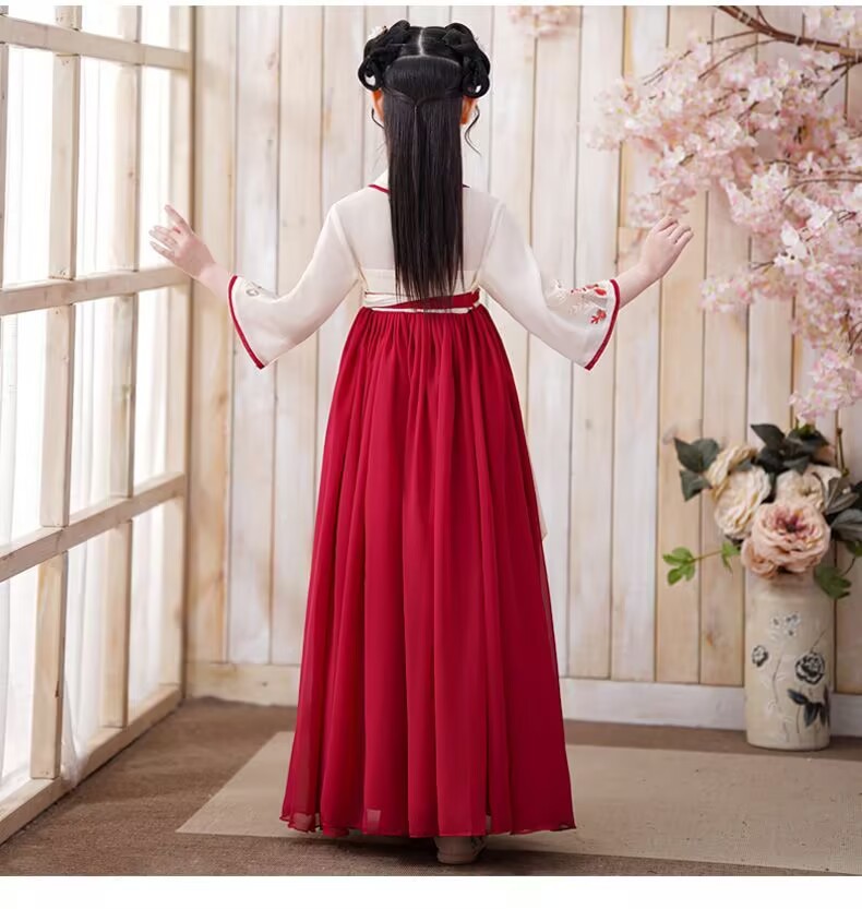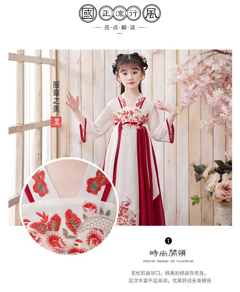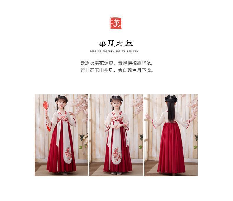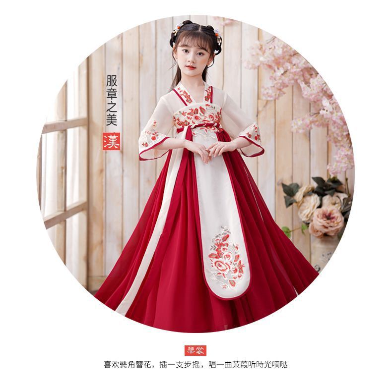 고대 의상 소녀 당나라 정장 Hanfu 어린이 새로운 여름 중국 어린 소녀 고대 스타일 슈퍼 요정 우아한 드레스