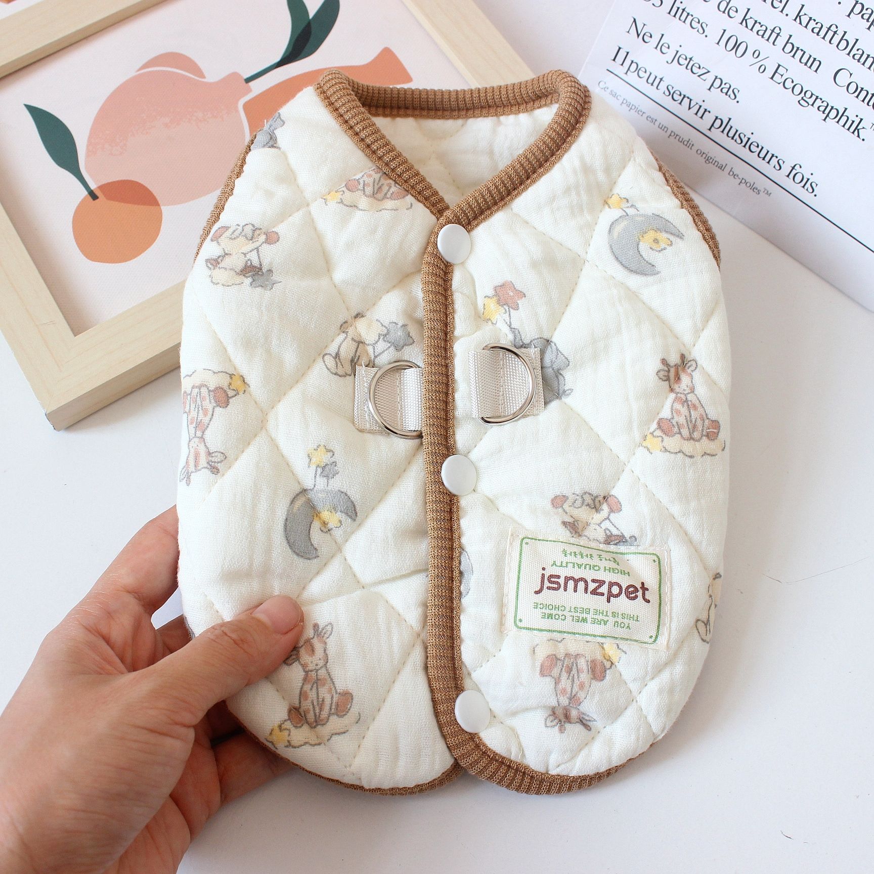 • BM 면 거즈 백 버클 조끼 - 전원 당근 토끼