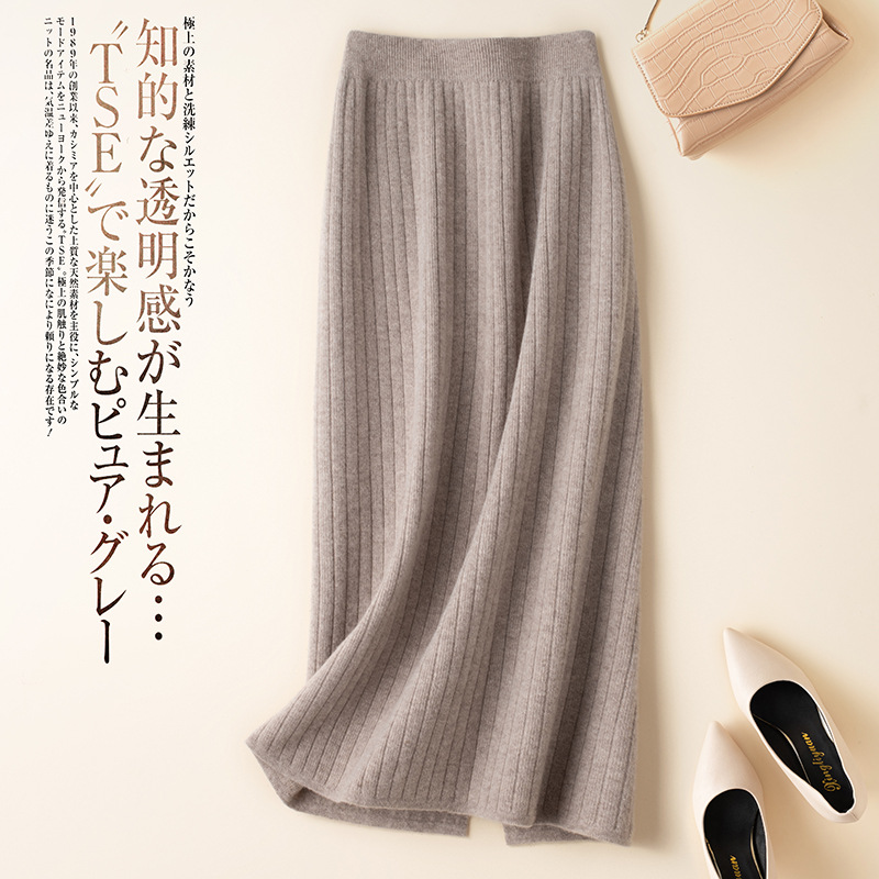 새로운 순수 양모 스커트 여성의 가을과 겨울 중간 길이의 높은 허리 분할 니트 캐시미어베이스 힙합 스커트스토어 가기