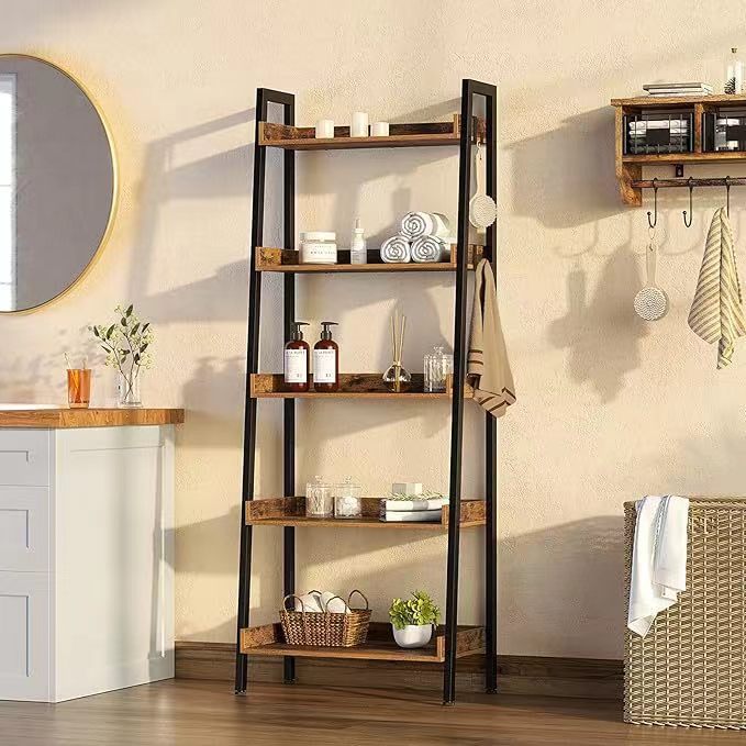 간단한 철 디스플레이 스토리지 사다리꼴 선반 스토리지 랙 바닥 책장 거실 침실 스토리지 5 레이어