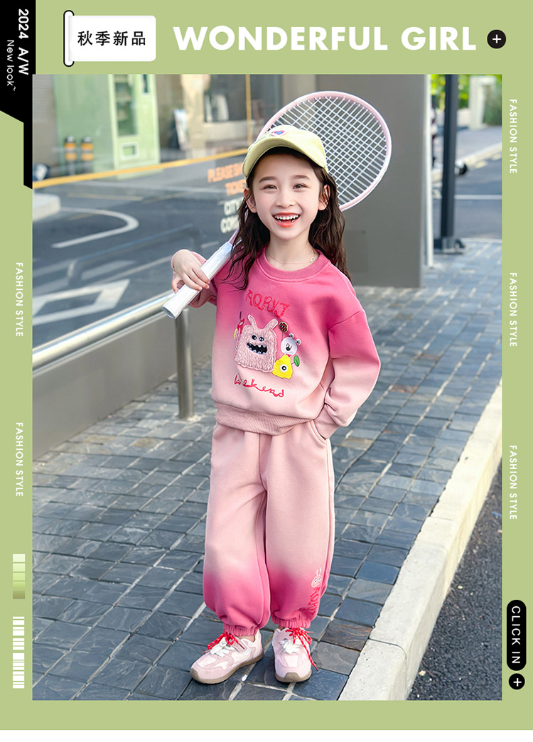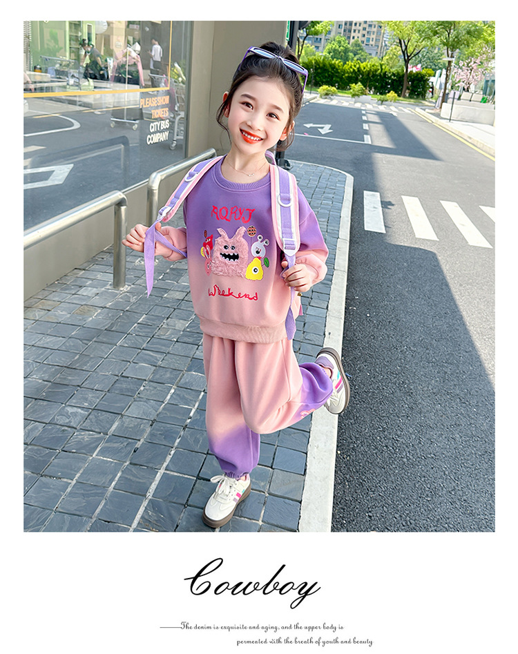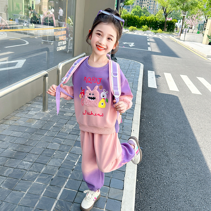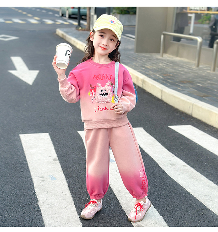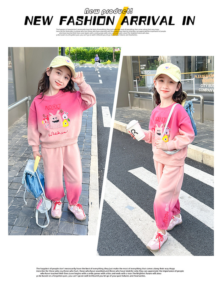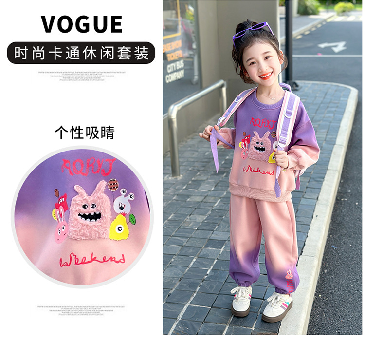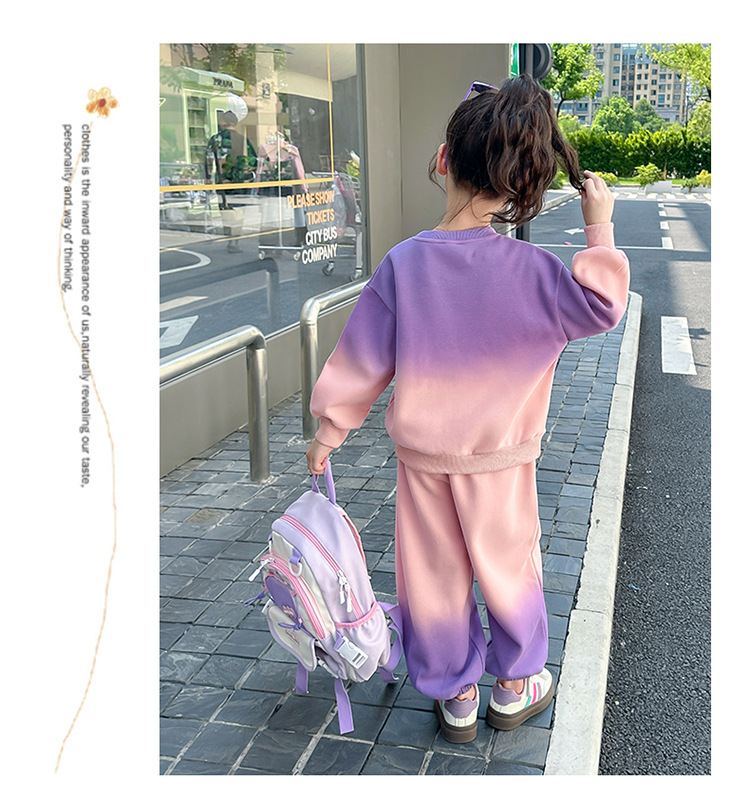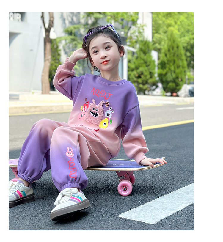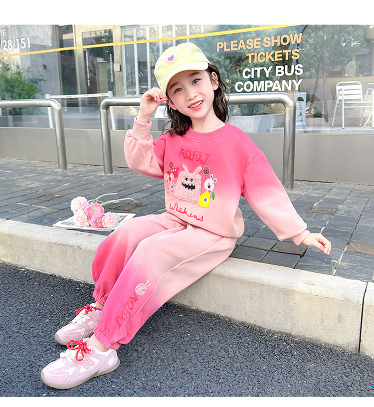 아기 소녀의 가을 원피스 만화 그라디언트 스웨트 세트 서양식 새로운 어린이 스타일 느슨한 긴 소매 캐주얼 투피스 세트스토어 가기
