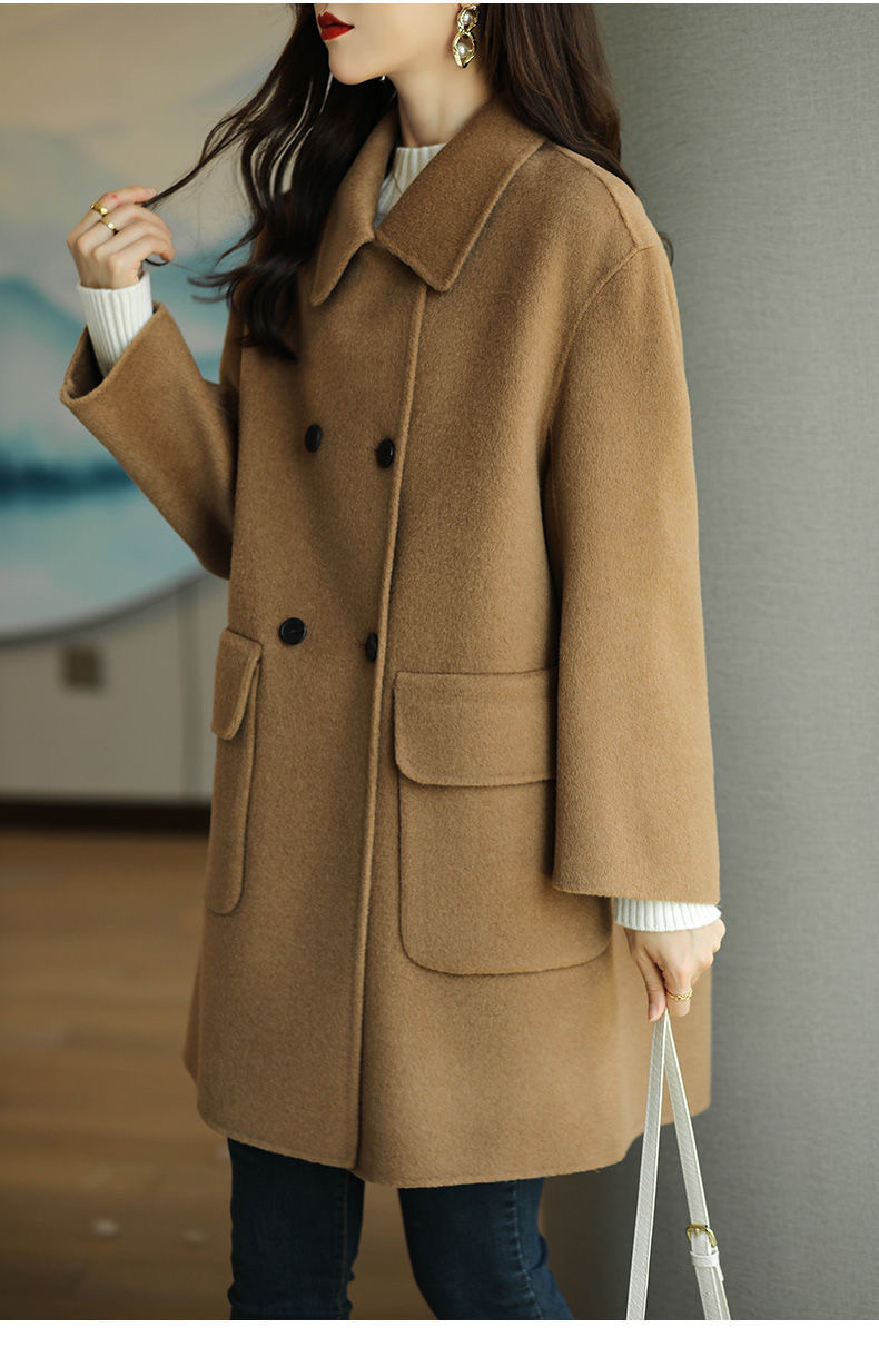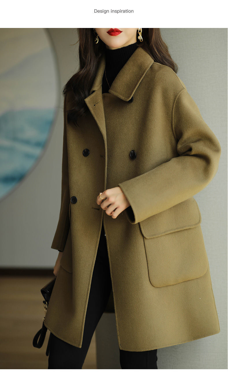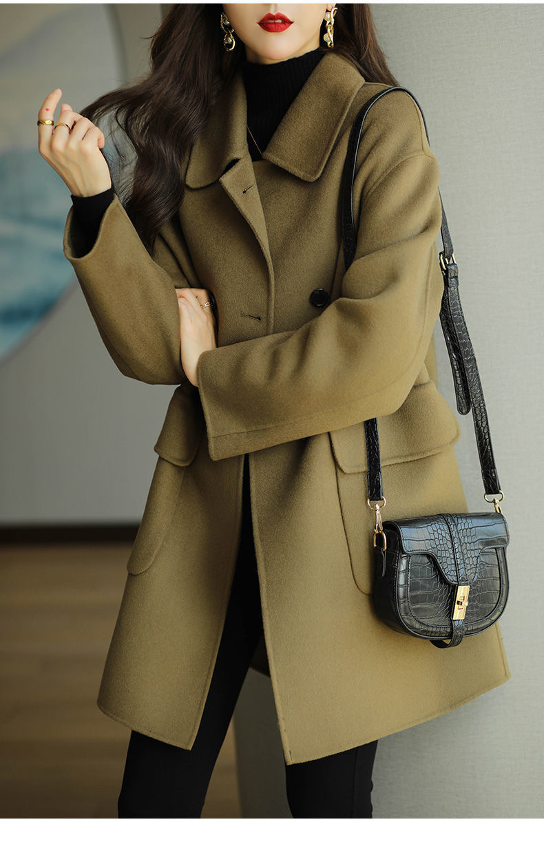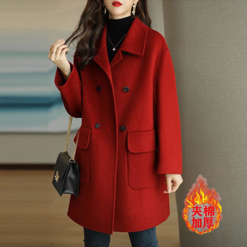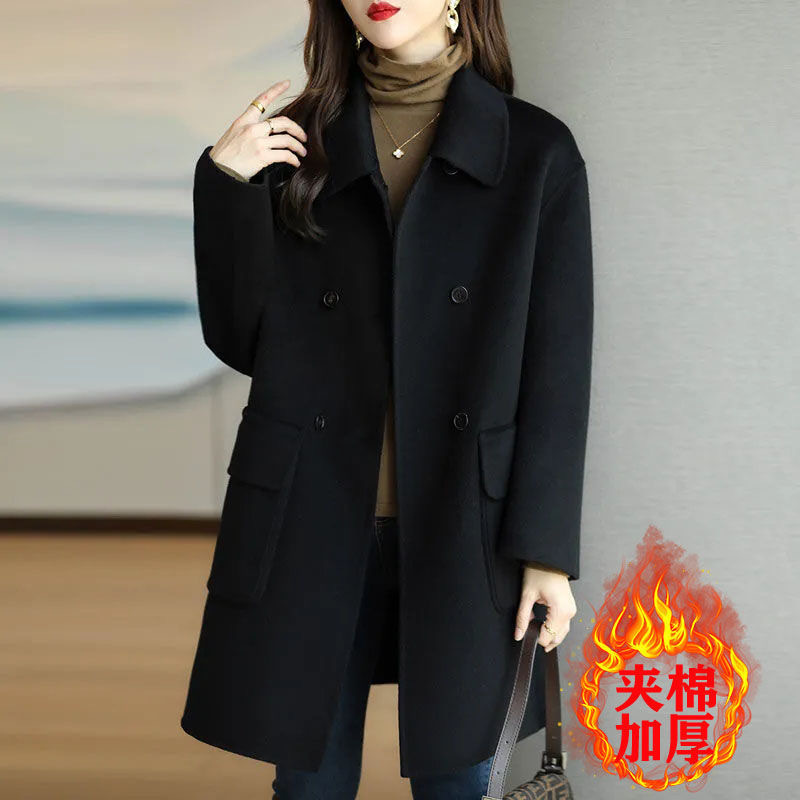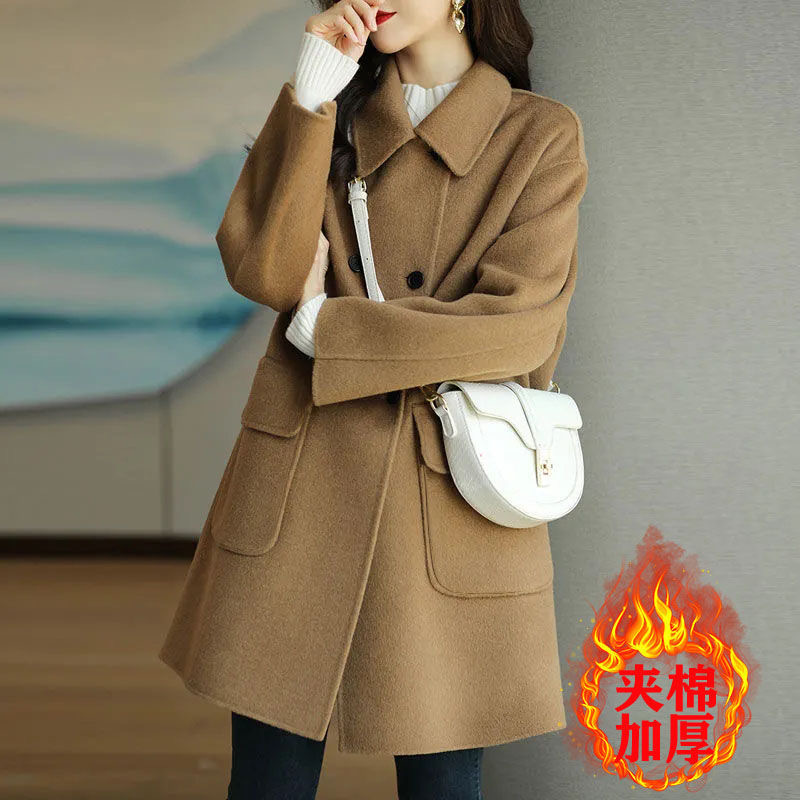 코튼 모직 코트 추가 여성 2025 가을과 겨울 새로운 두꺼운 한국 스타일 슬림핏 슬리밍 중간 길이의 모직 코트스토어 가기
