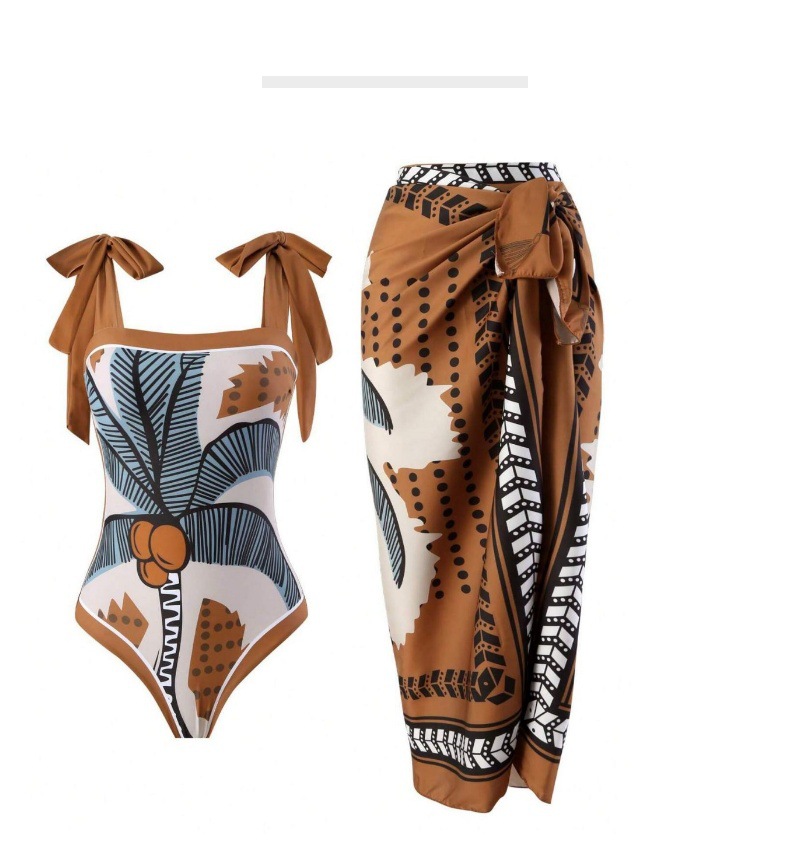 2024 새로운 유럽과 미국의 프랑스 복고풍 인쇄 수영복 여성용 온천 홀리데이 비치 원피스 배꼽 비치 세트