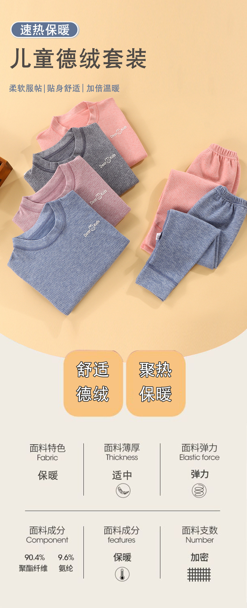 어린이용 독일산 보온 내의, 겨울용 기모 및 두꺼운 무봉제 남녀 아동용 베이스 레이어 잠옷, 가정복 세트, 정전기 방지스토어 가기