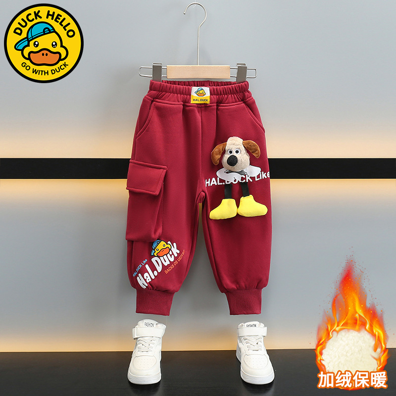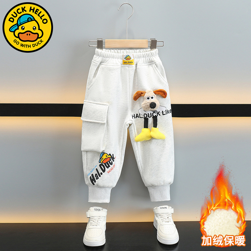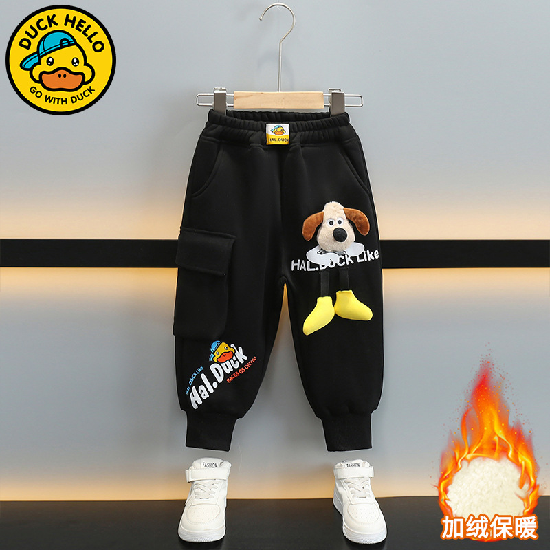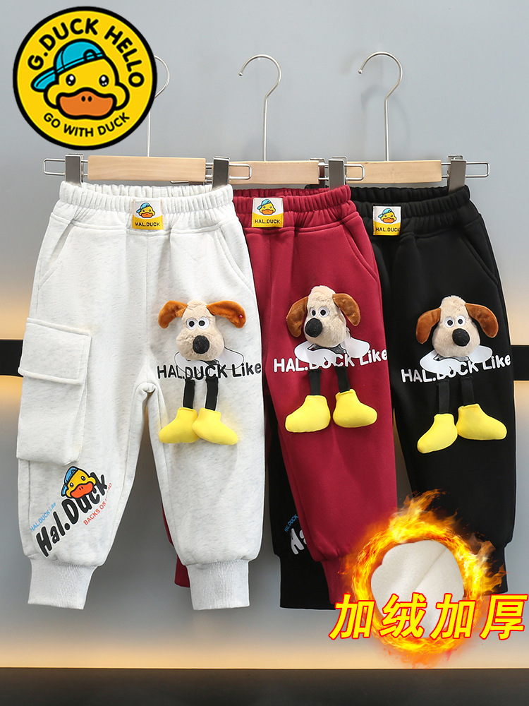 작은 노란 오리 소년 벨벳 바지 어린이 2024 새로운 가을과 겨울 소녀 캐주얼 두꺼운 원피스 벨벳 스포츠 바지스토어 가기